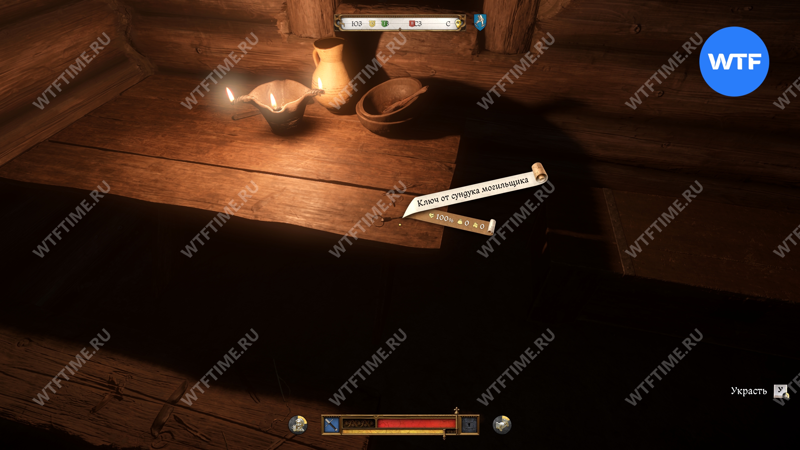 Вскройте две двери с очень легкими замками, а затем идите в комнату, где спит могильщик, и заберите со стола Ключ от сундука могильщика. Если с механикой взлома замков вы не знакомы, то рекомендуем сначала пройти дополнительное задание «Materia Prima» на Мельнице в Нижнем Семине.