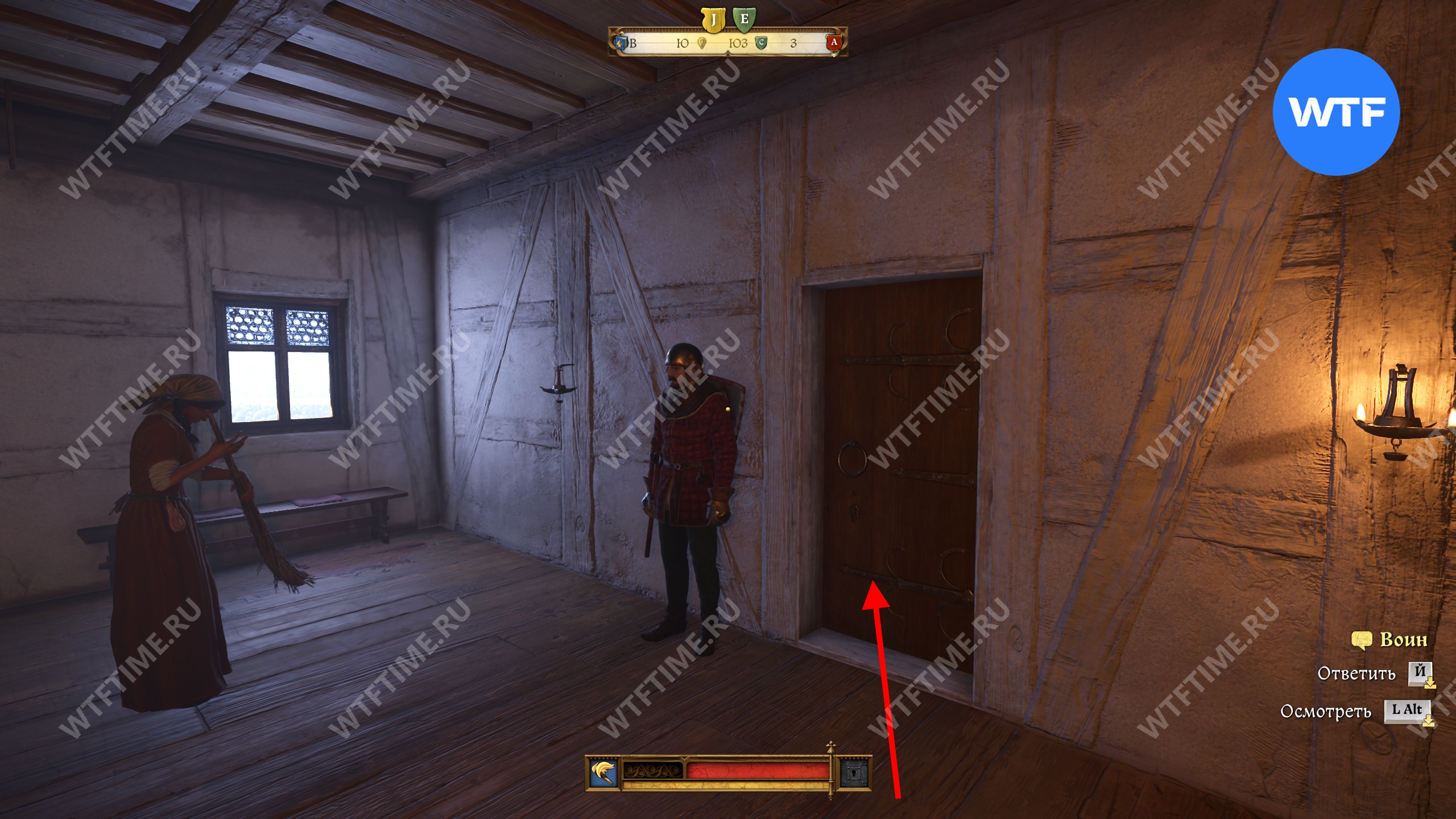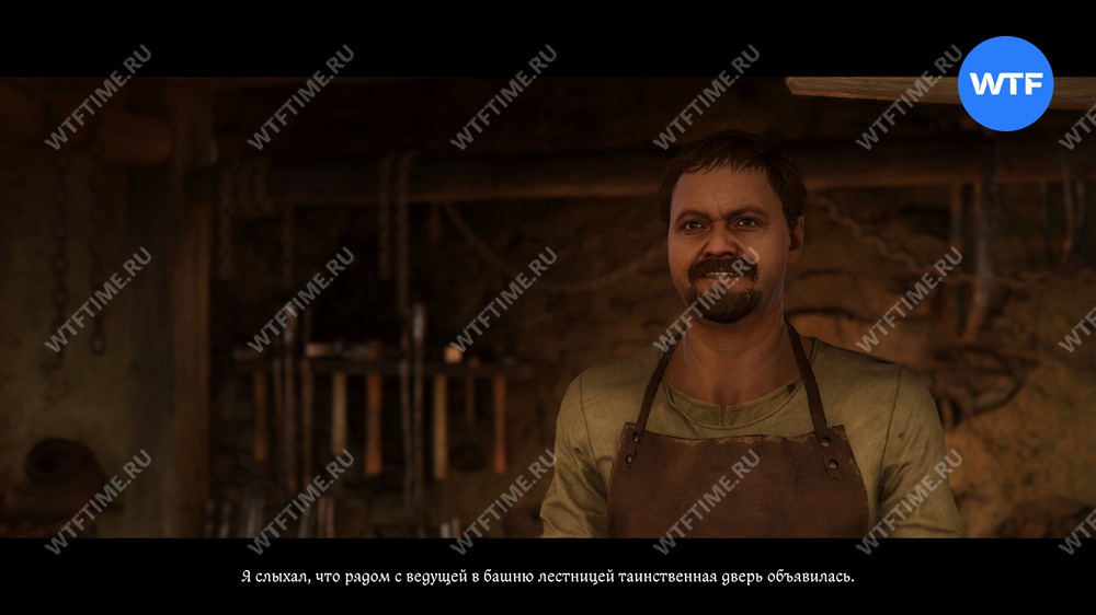Под таинственной дверью кузнец снова имеет в виду туалет, только на этот раз в стене башни. Чтобы до него добраться, поднимитесь наверх по лестнице из кухни в башне «Девицы».