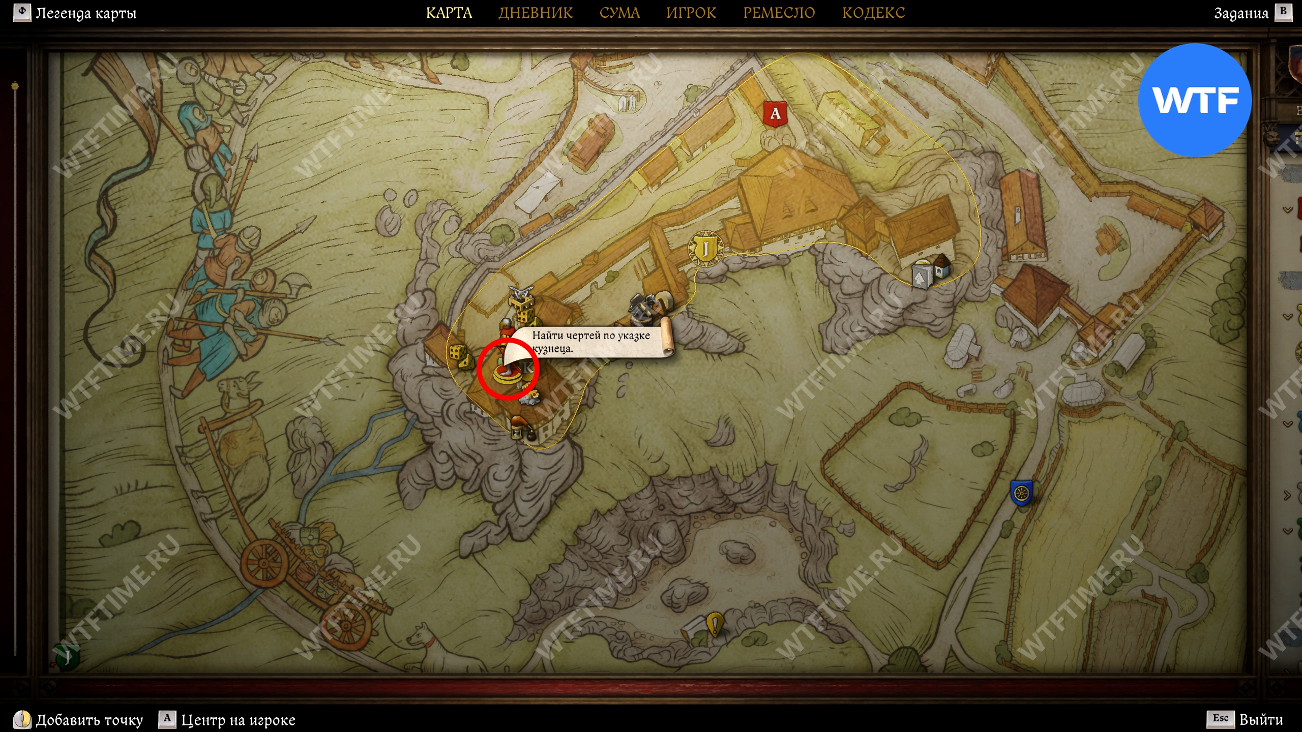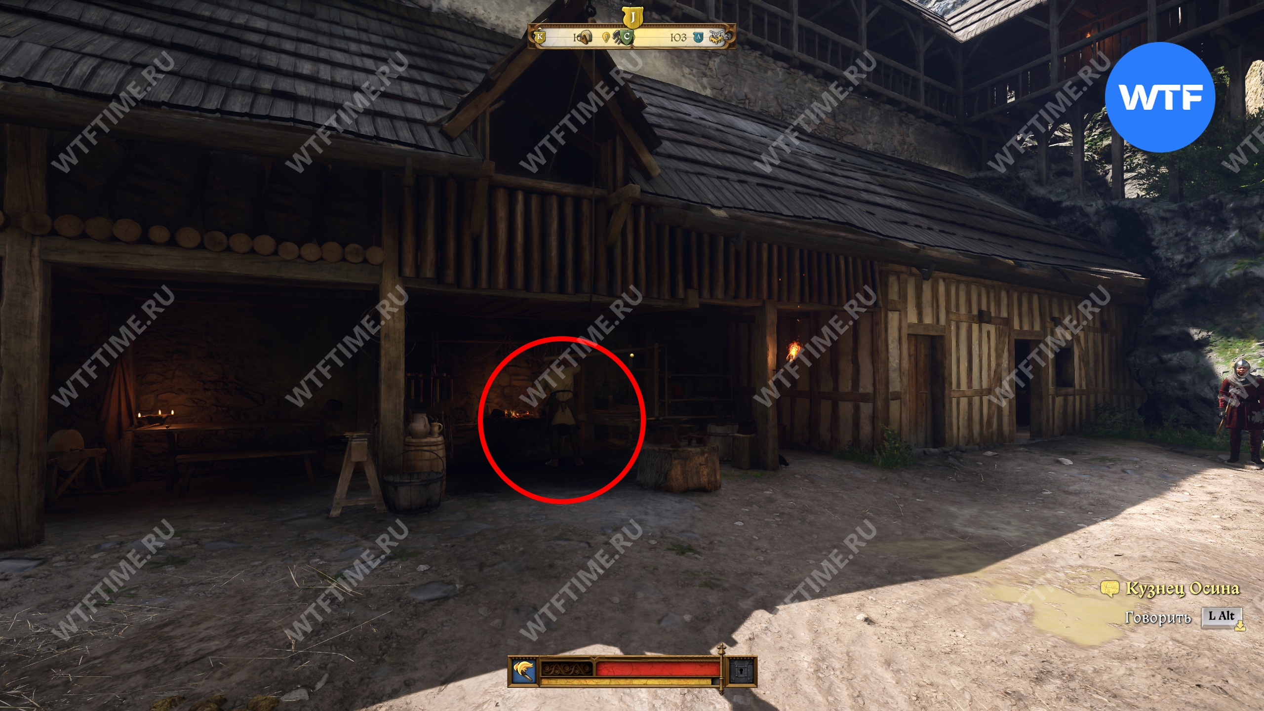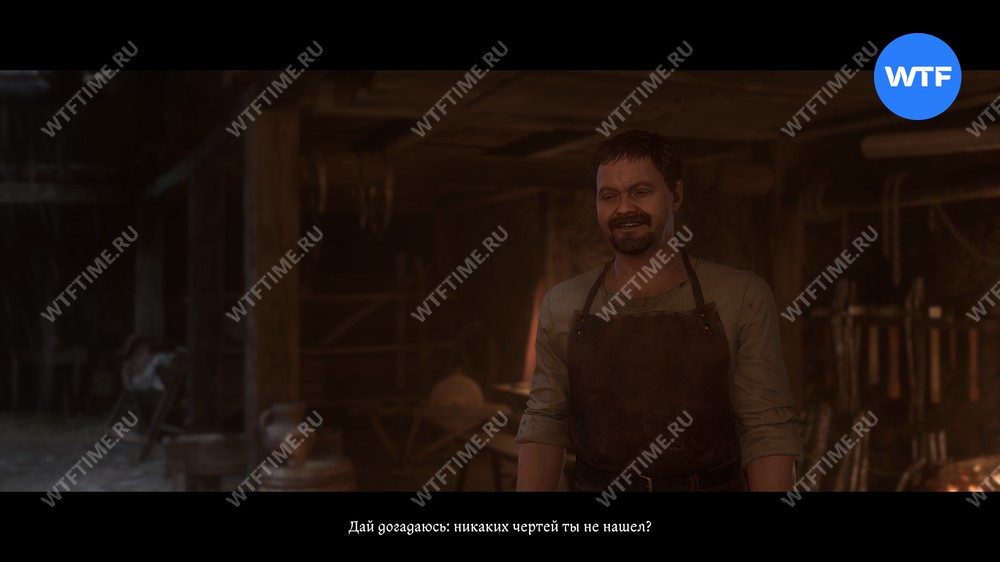 Теперь вернитесь во двор и загляните в местную кузницу. Расспросите кузнеца Осину про чертей и отнеситесь к его переживаниям со всей серьезностью. После этого он попросит вас проверить нужник для стражи во внешнем дворе.