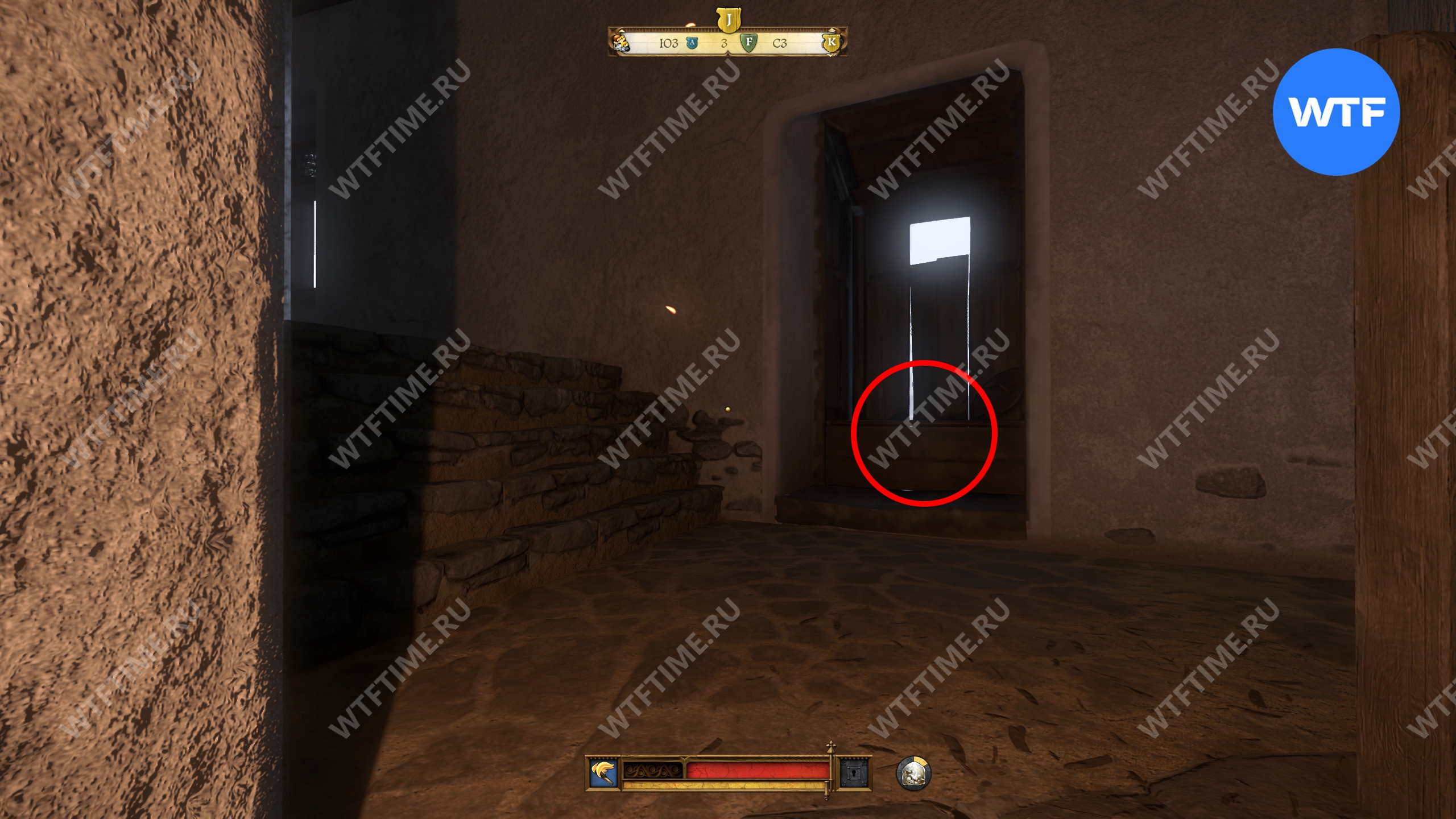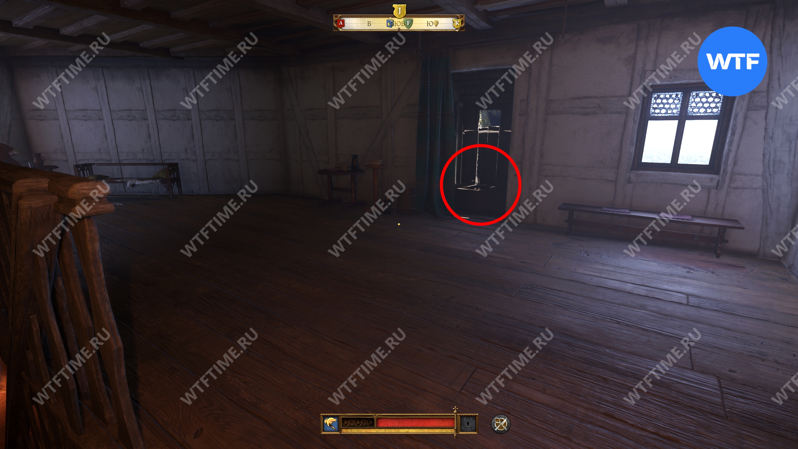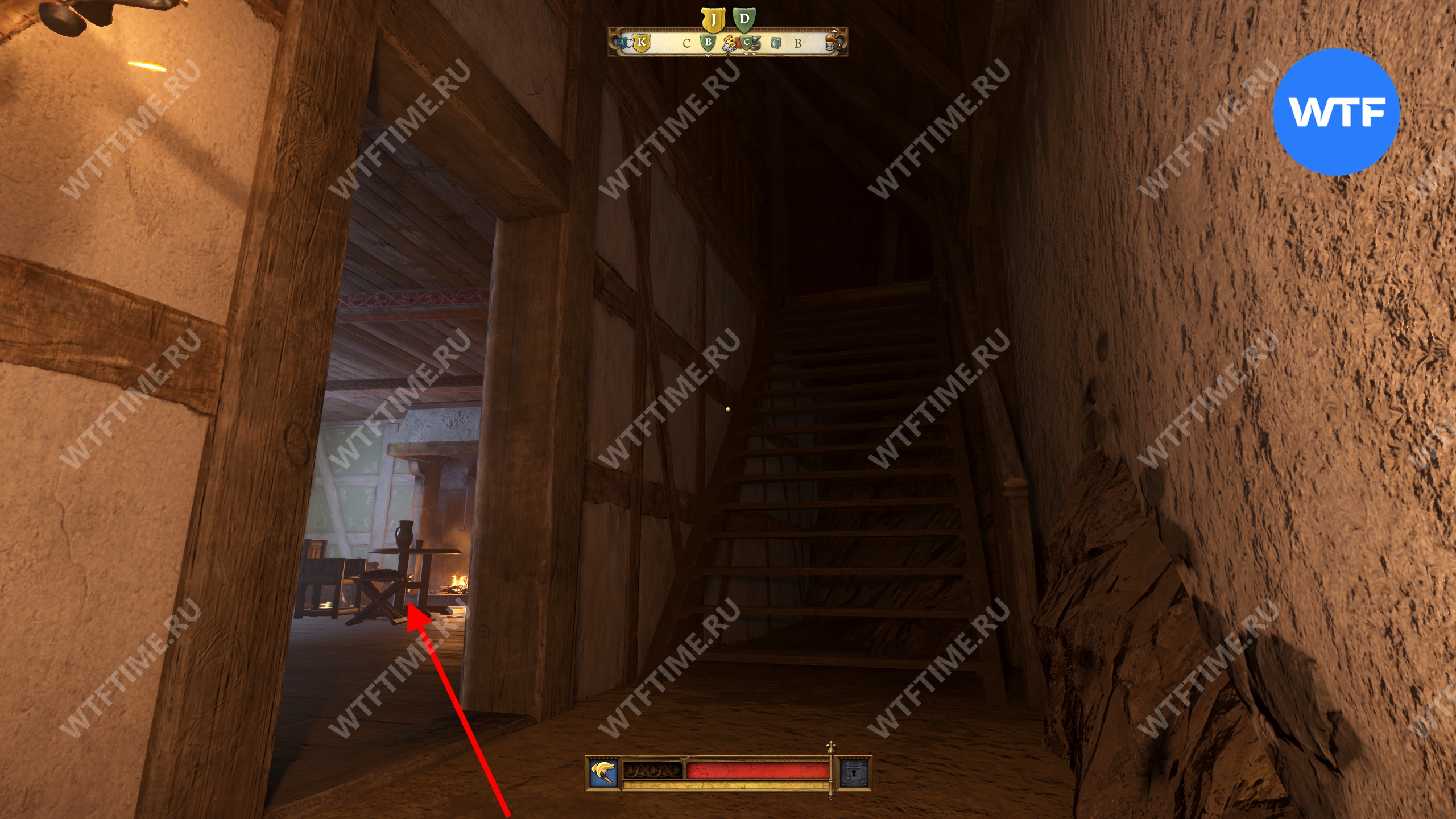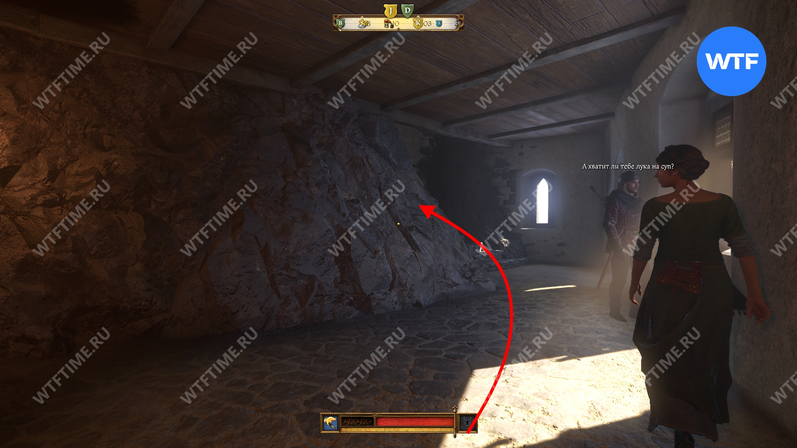 Вернитесь во двор, где находится кузница, и оттуда поднимитесь вверх по лестнице над местной баней. Это приведет вас на кухню, где у правой стены есть два очага для готовки. Воду нужно вылить на тот, что по центру.