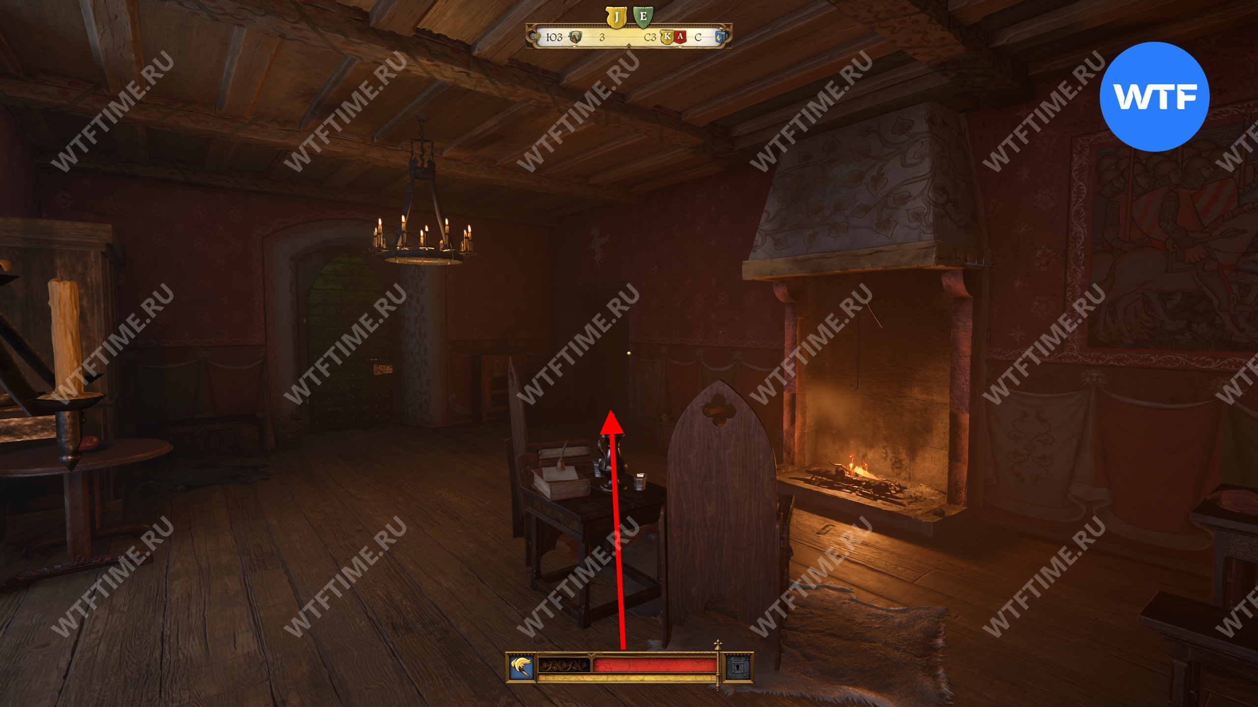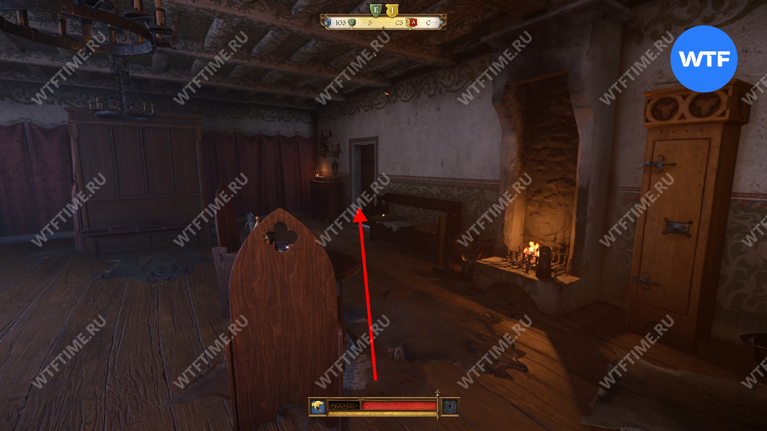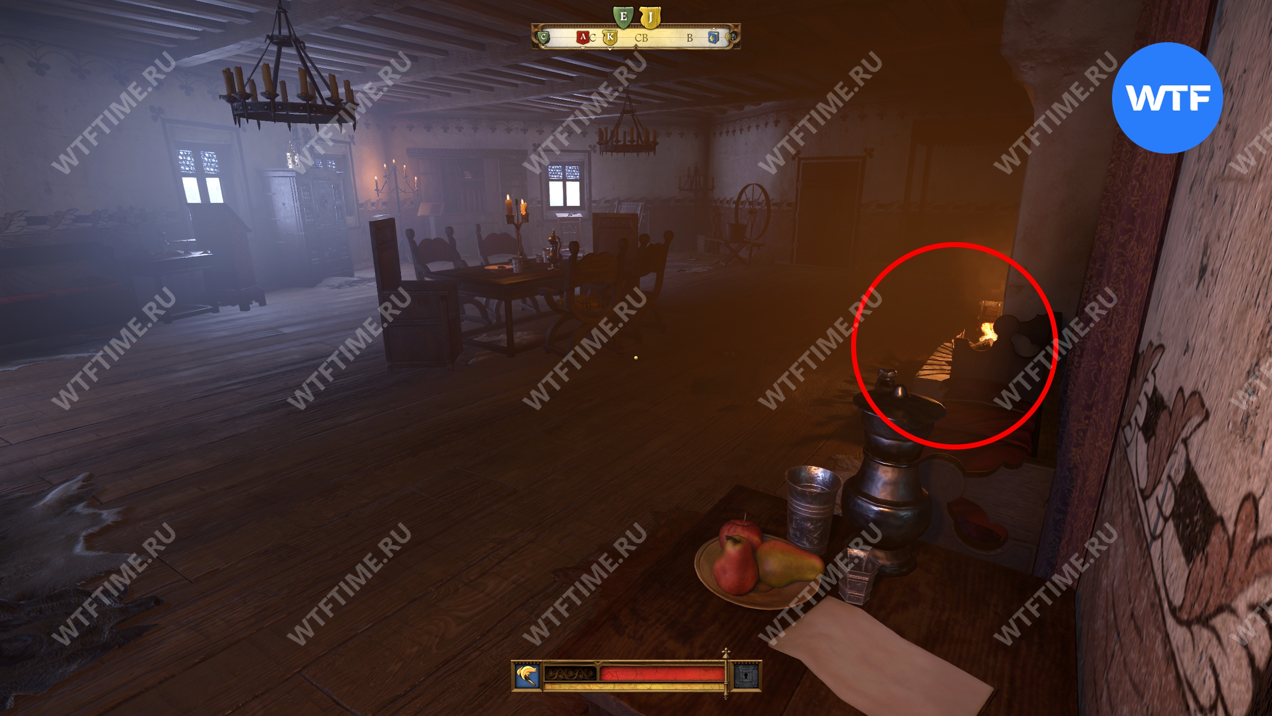 После этого поднимитесь по лестнице в кухне и зайдите в кладовую с припасами. Затем поднимитесь на два лестничных пролета по лестнице в дальнем конце кладовой. Так вы окажетесь в небольшой комнате с красными стенами. Пройдите через единственную дверь и окропите водой камин справа.