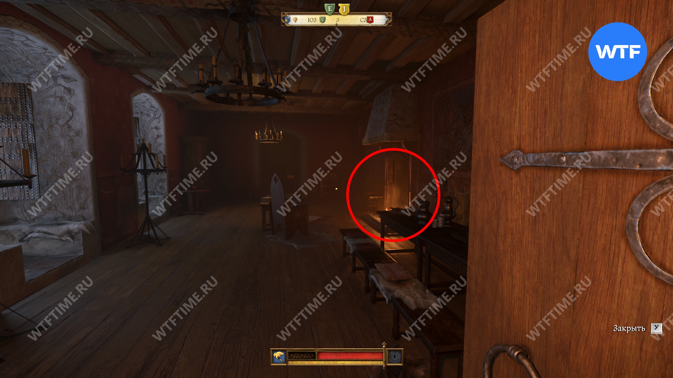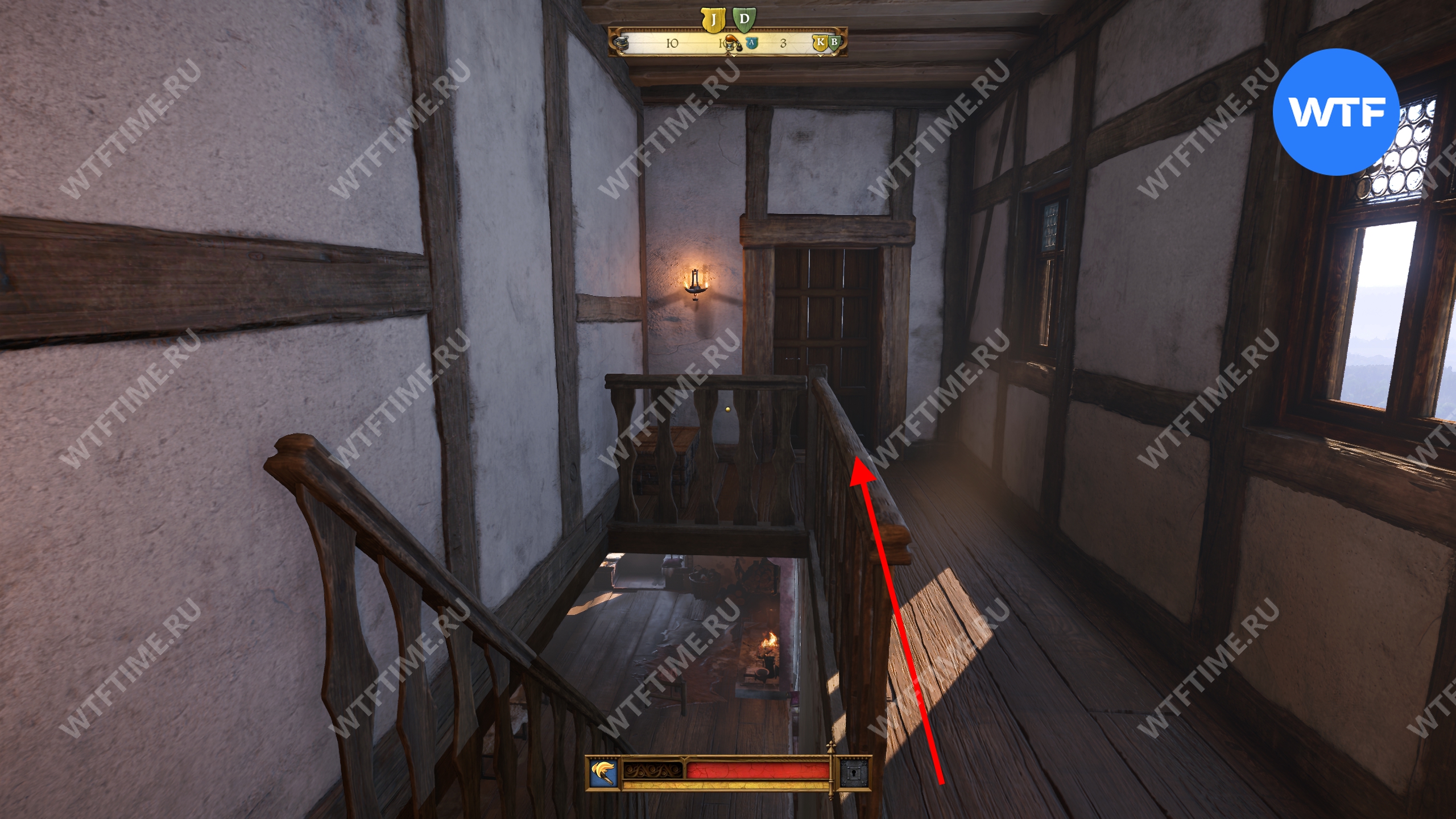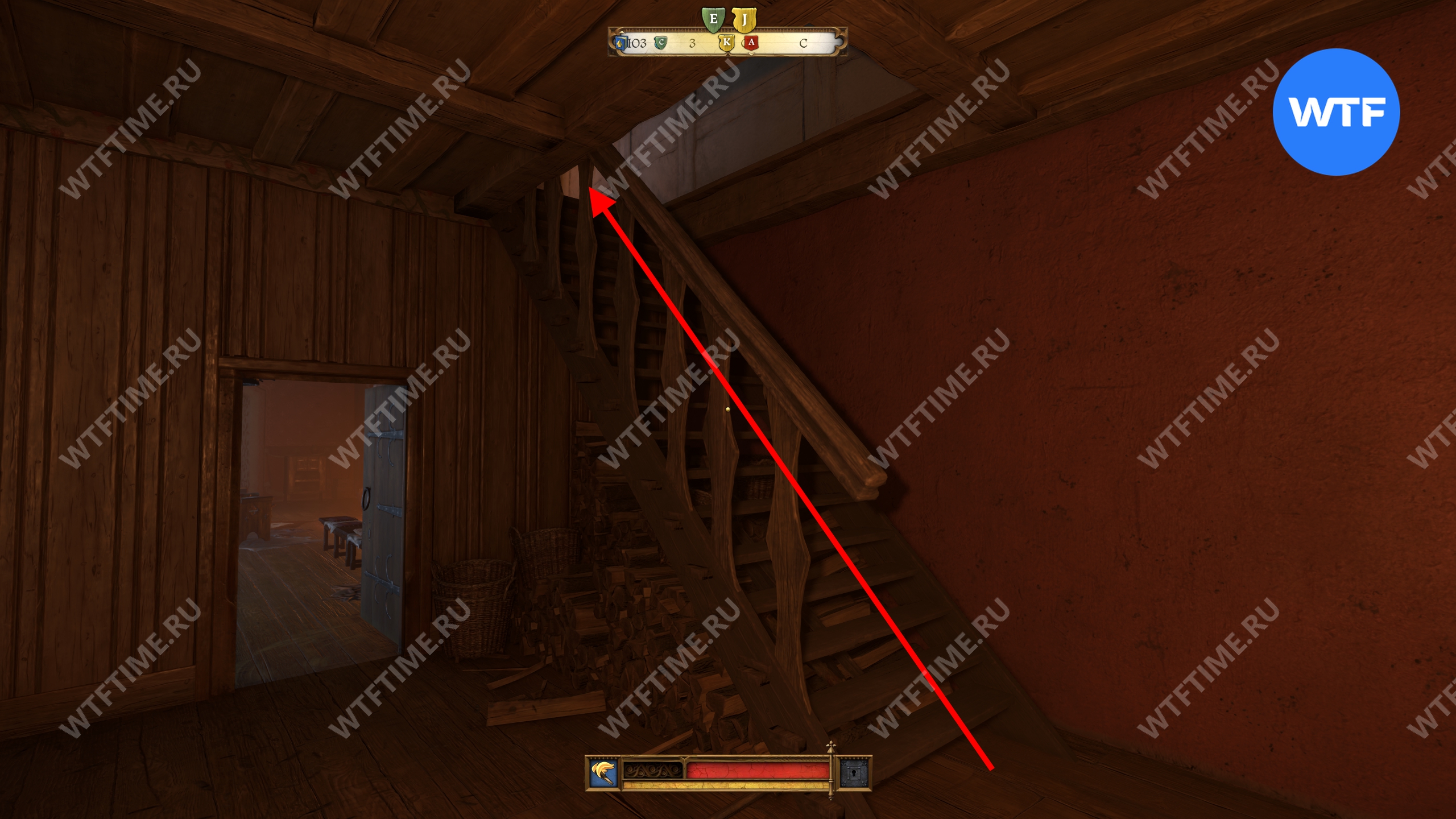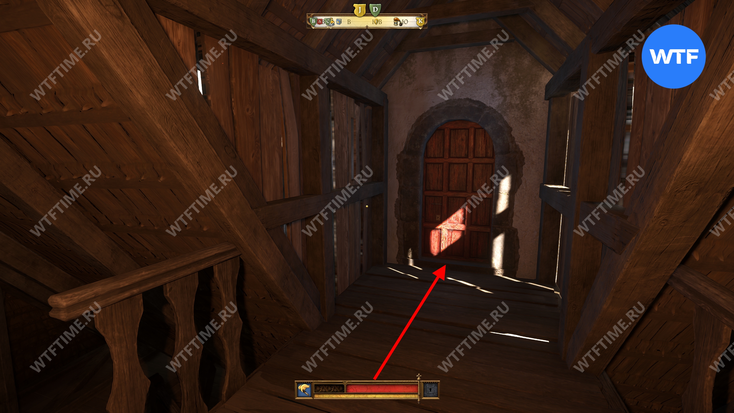 После этого поднимитесь по лестнице в кухне и зайдите в кладовую с припасами. Затем поднимитесь на два лестничных пролета по лестнице в дальнем конце кладовой. Так вы окажетесь в небольшой комнате с красными стенами. Пройдите через единственную дверь и окропите водой камин справа.