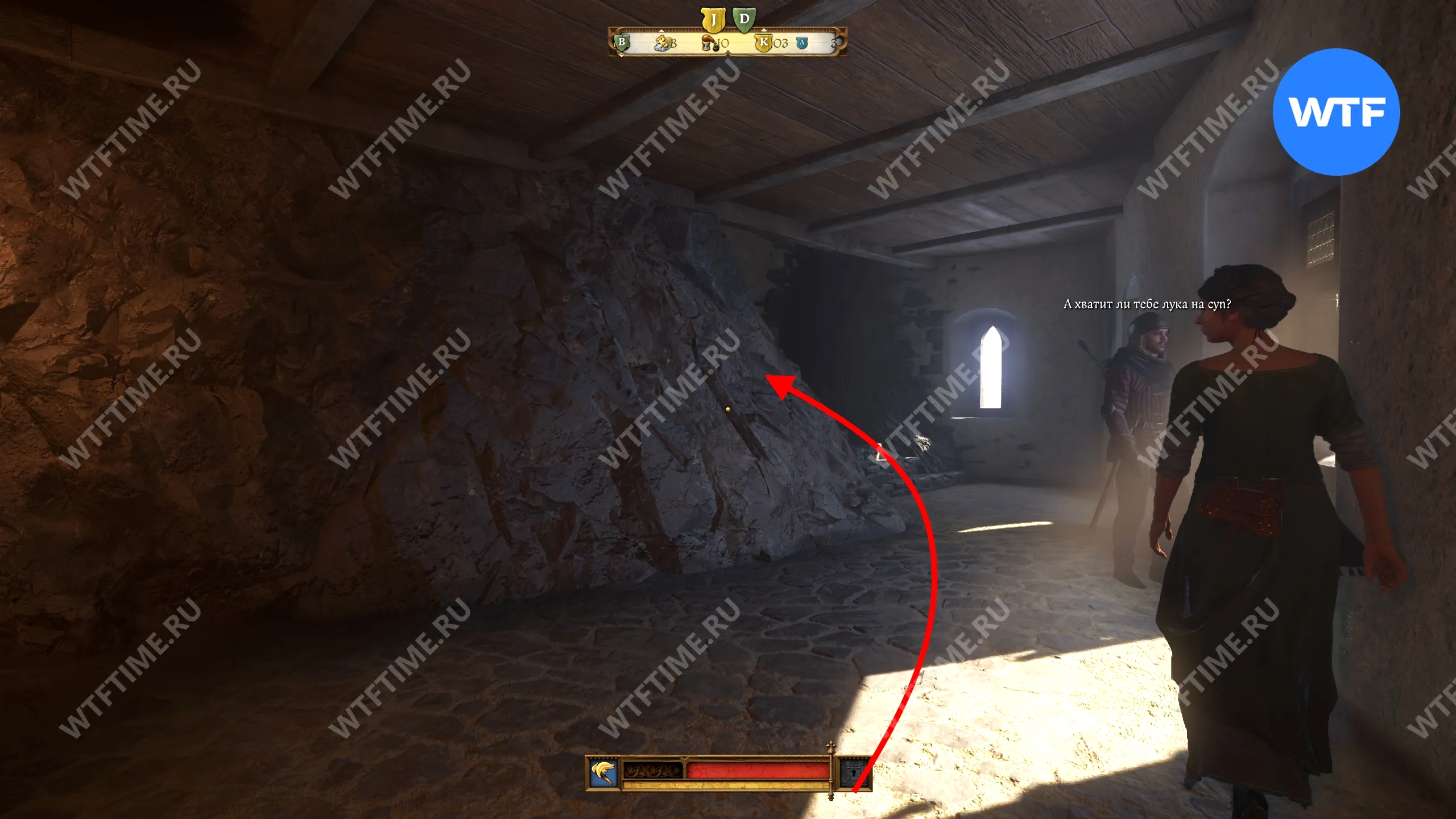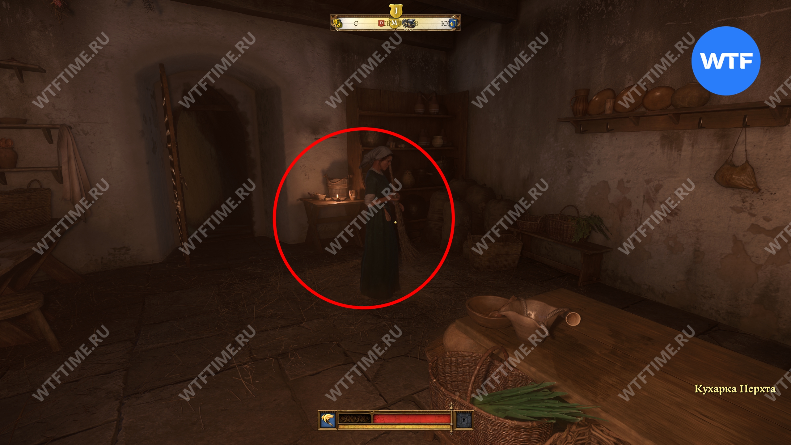 Отправляйтесь на кухню в башне Старицы и поговорите с кухаркой Перхтой. Вы можете подкупить её или пройти одну из проверок. Проще всего здесь использовать одежду со свадьбы и сказать, что вы панский наперстник.