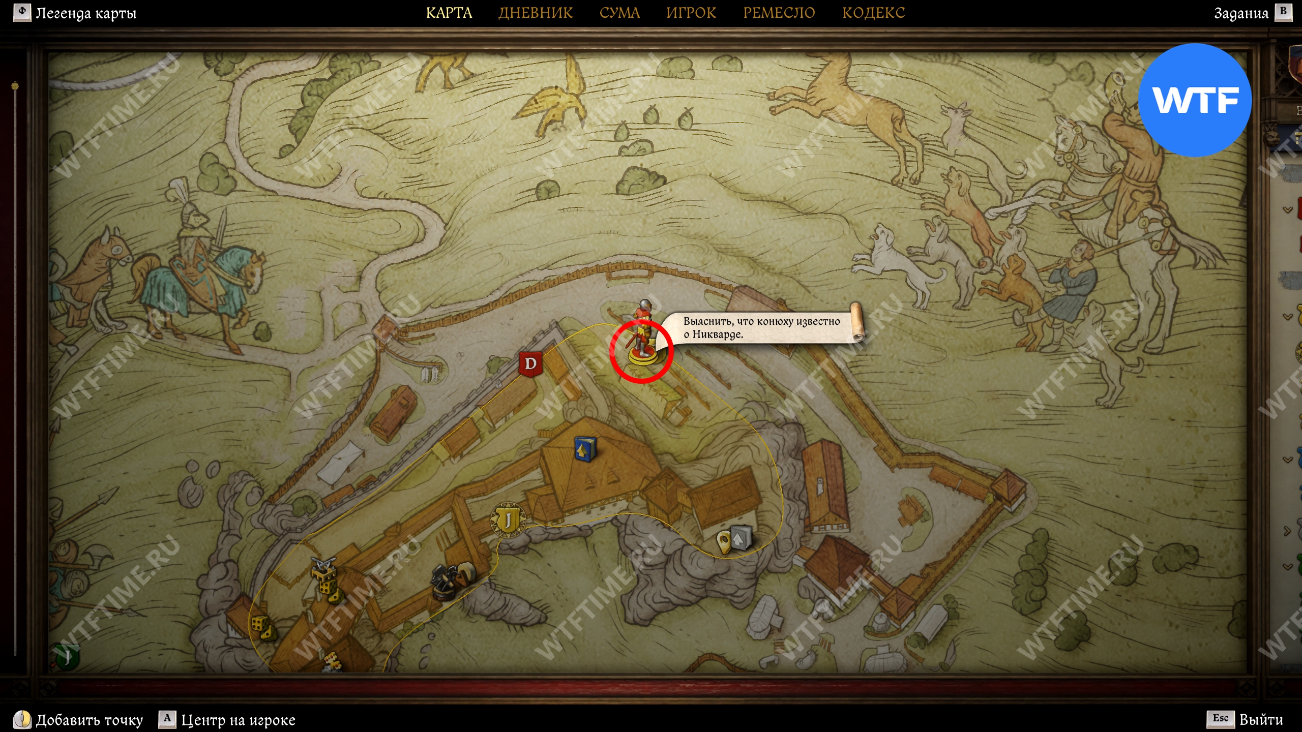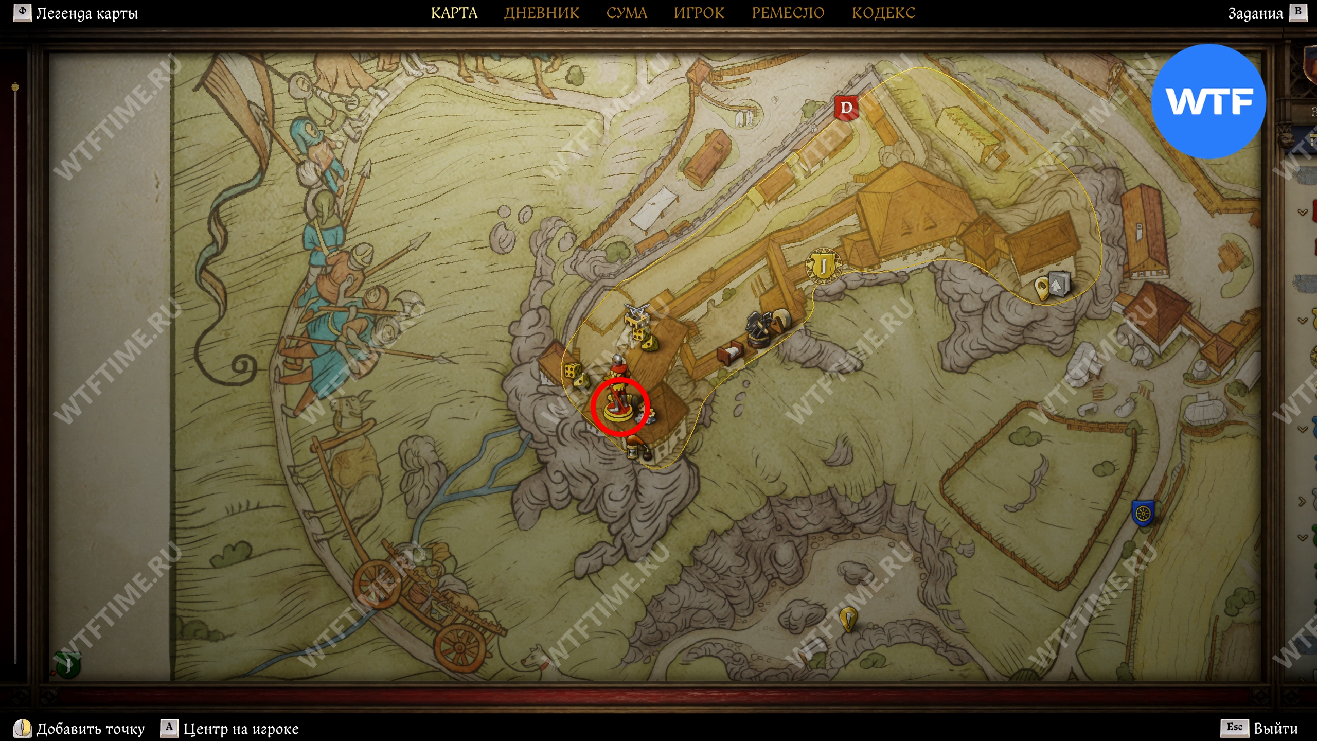 Поговорите с писарем и обсудите найденную вами информацию, после чего Индржих сделает вывод, что книга упала в нужник. Это добавит на вашу карту квестовую отметку за стенами замка.