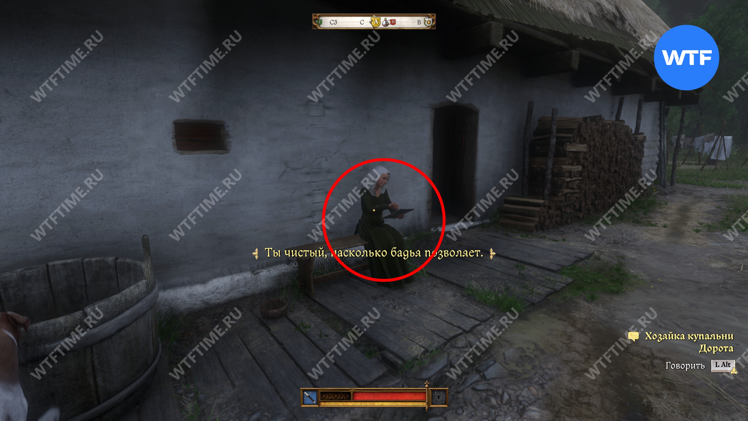 Первым делом отправляйтесь на Желеевский постоялый двор и поговорите с хозяйкой купальни Доротой. Обычно она сидит на лавочке у входа в зеленом платье и белом платке.