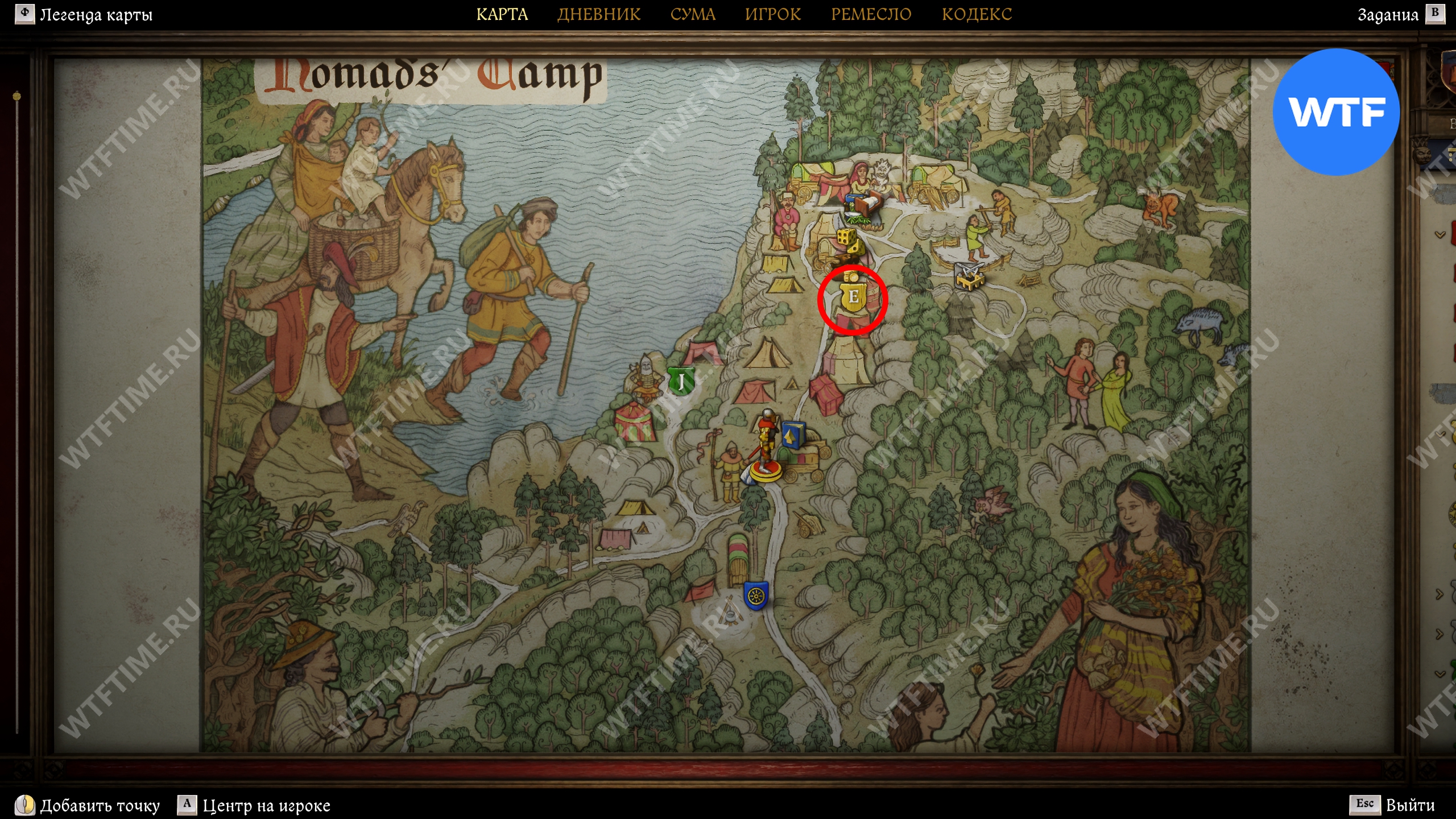 Это даст вам точную отметку на карте. У нас девушка сидела у костра, однако также Эннелина может перемещаться по лагерю. Польстите ей, а затем расскажите, что вам от неё нужно.