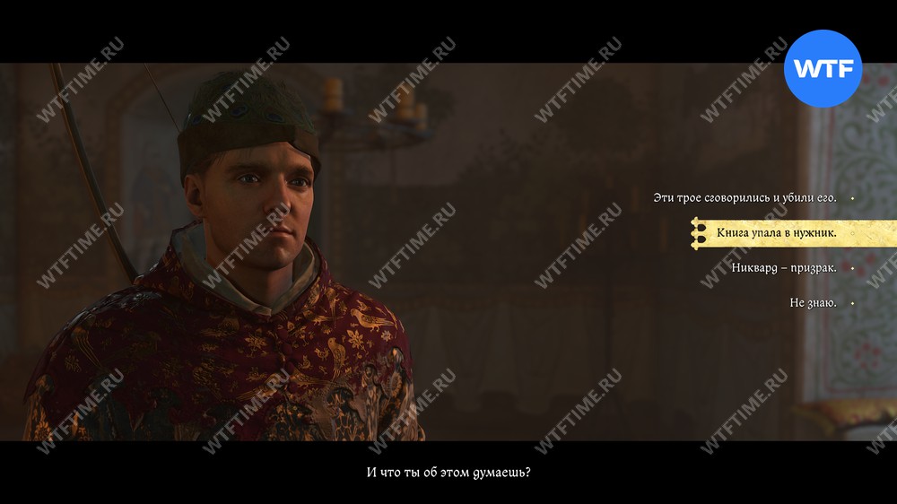 Спросите его про книгу и он скажет, что одолжил ее Никварду, который похоже её куда-то задевал и теперь скрывается от писца. Он также назовет вам имена трех людей, с которыми следует поговорить.