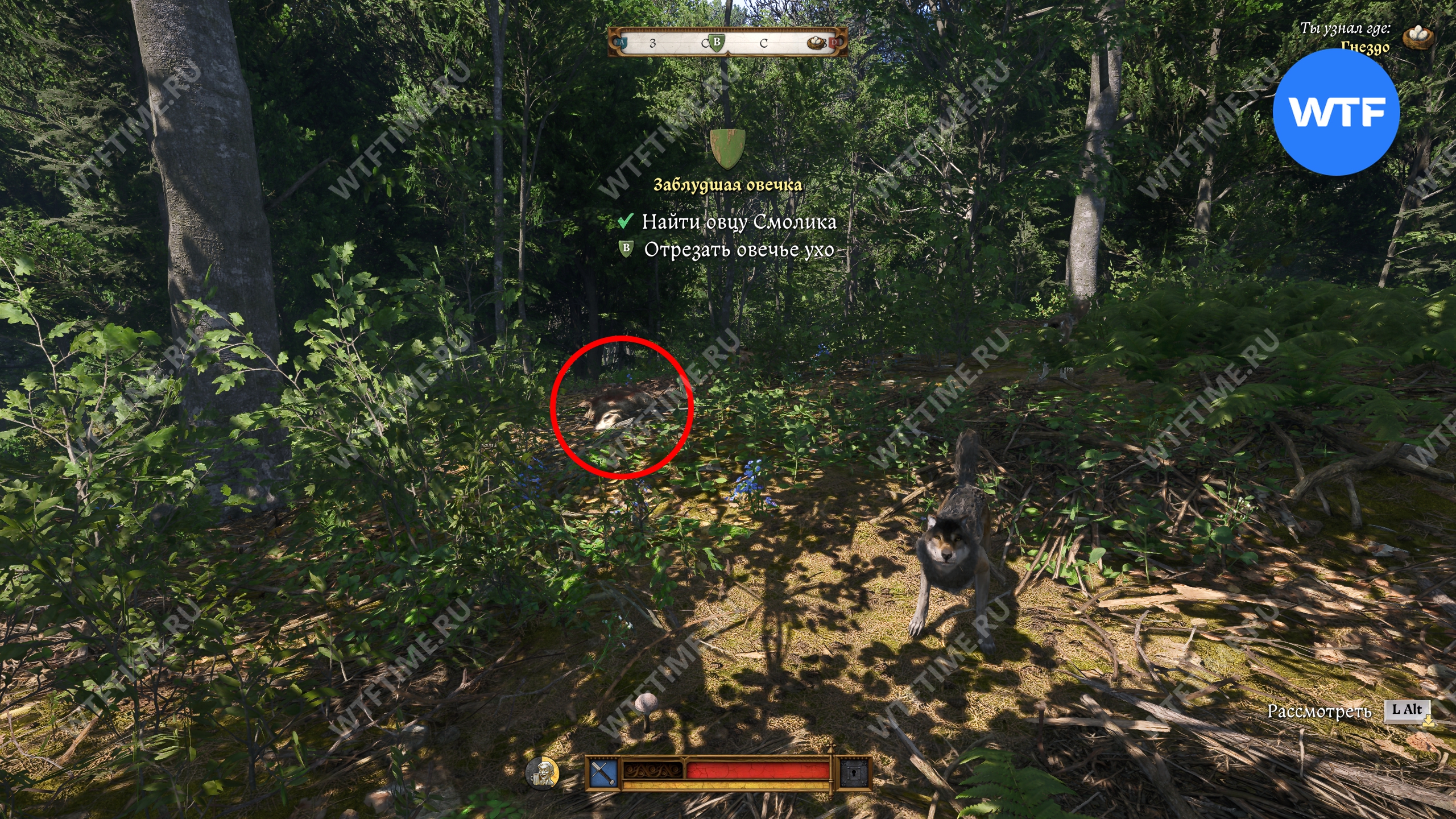 На карте будет отмечена широкая зона поиска, включающая значительную часть леса. Нужное вам место находится прямо по центру. Там вы найдете убитую овцу, а также стаю волков.