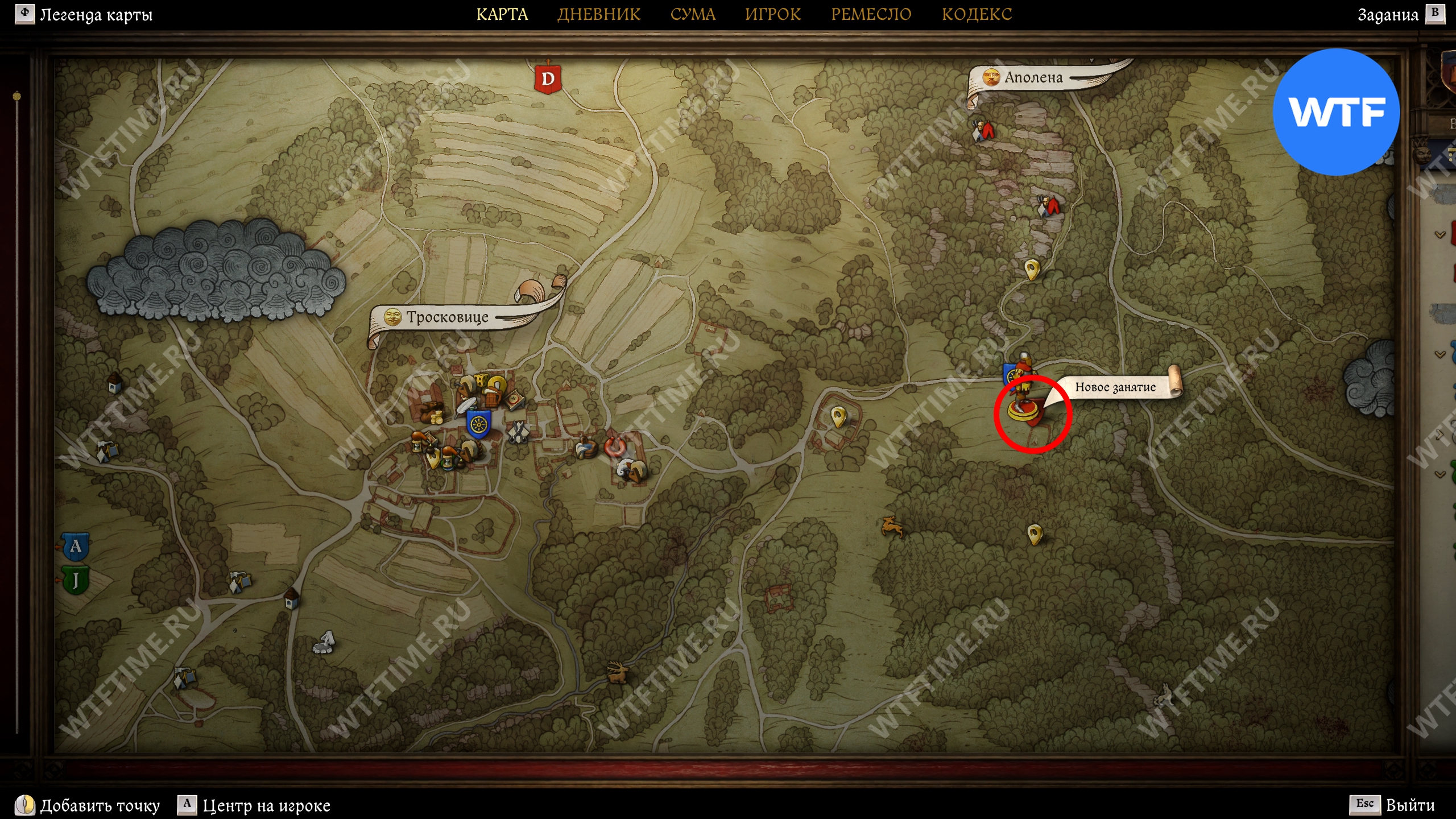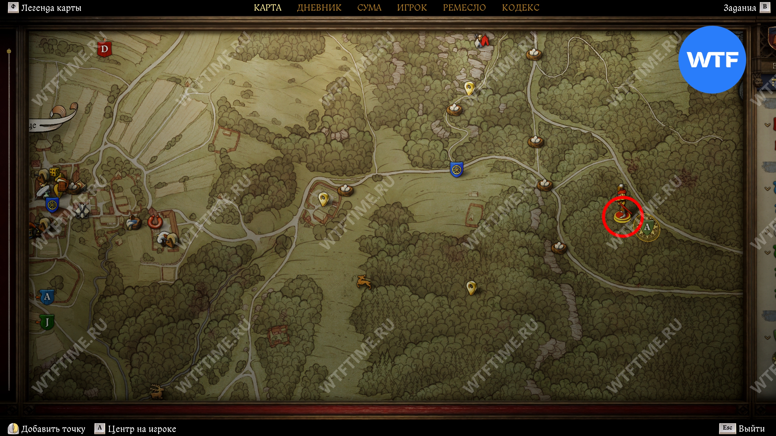 Барана вы найдете ровно там, куда указывает квестовая метка. Недалеко от него (см. метку персонажа на карте ниже) есть волчья стая, с которой будет удобнее разобраться заранее.