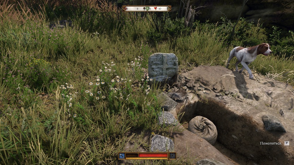 Прибыв в указанную точку, вы должны подойти к кресту, нажать на кнопку «Помолиться» и подождать, пока Индржих закончит. Обычно это занимает минуту или около того.