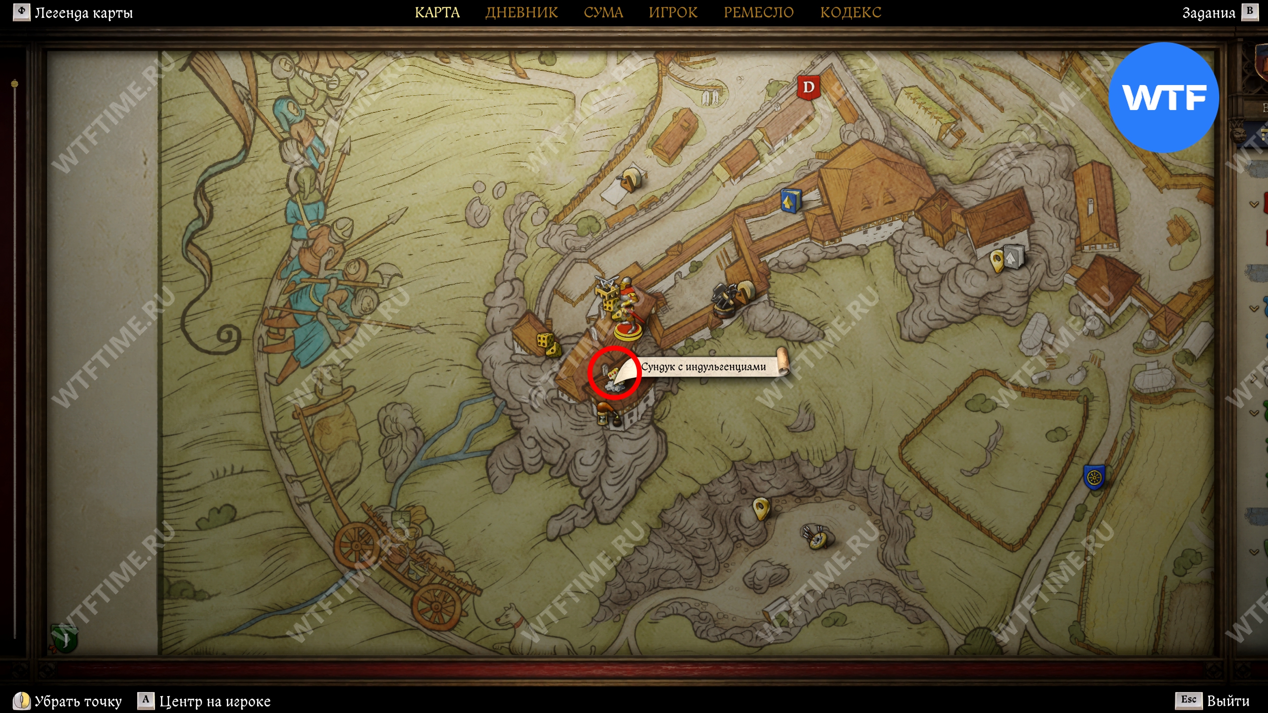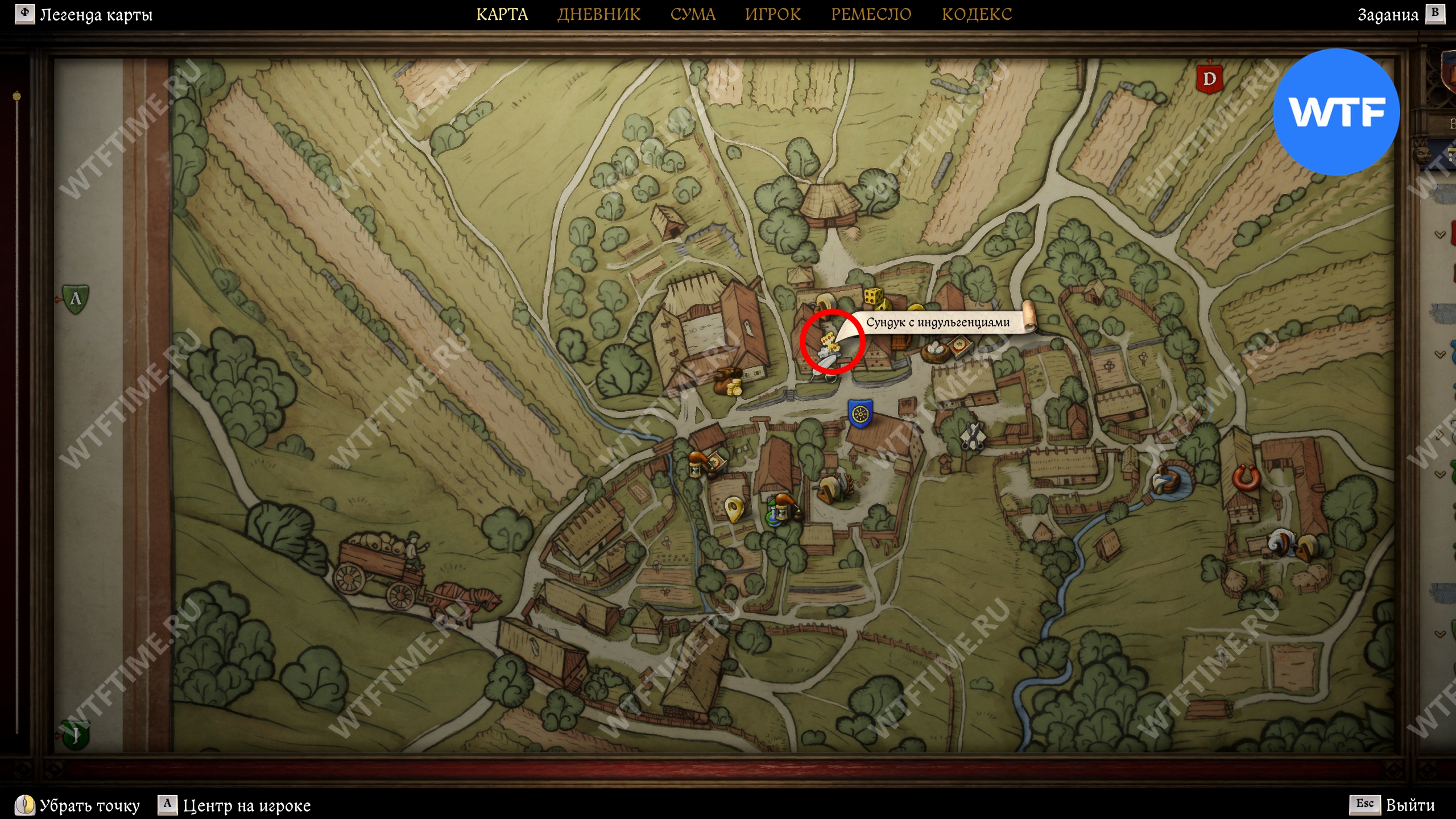 Сундуки с индульгенциями можно найти к примеру, в местной ратуше Тросковице или в башне «Старицы» в замке Троски, рядом с писцами. Уровень своей репутации можно посмотреть в меню игрока.