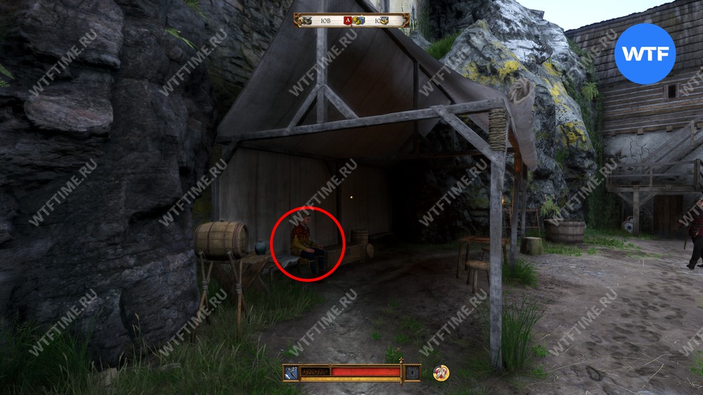 Вы можете поговорить с Птачеком сразу после выхода из кабинета Бергова, либо найти его после во внешнем дворе замка, рядом с ристалищем и столом для игры в кости.