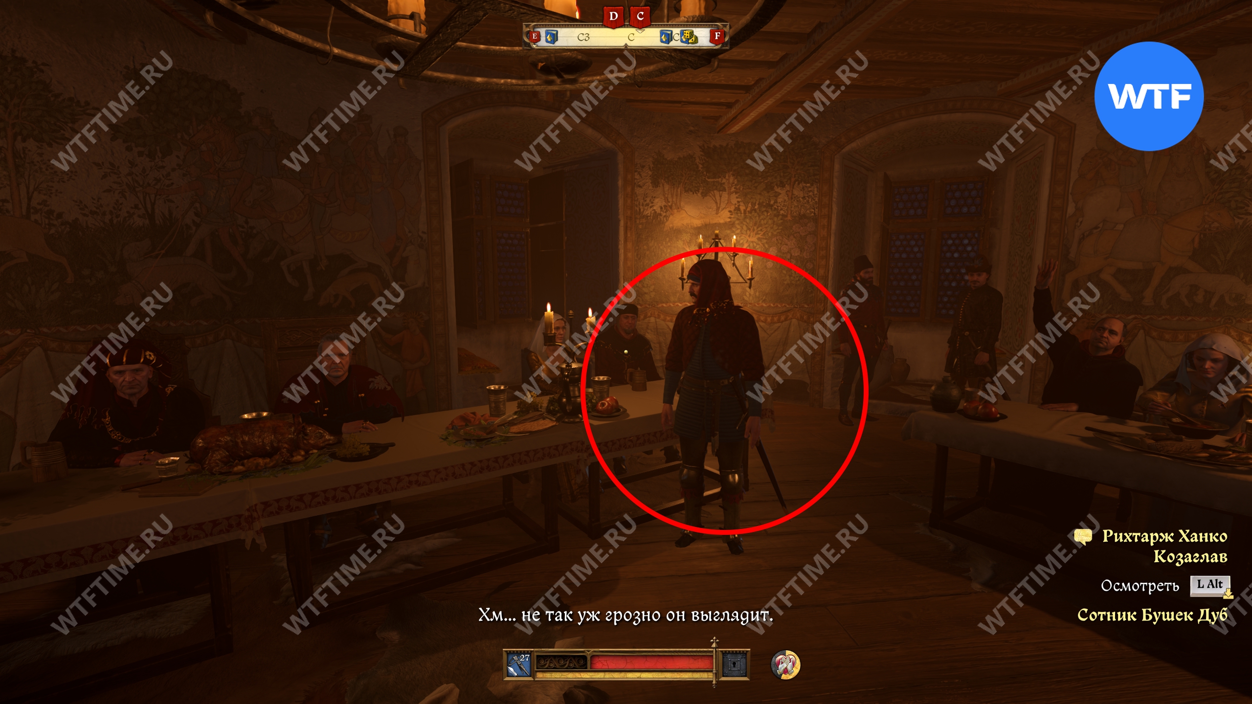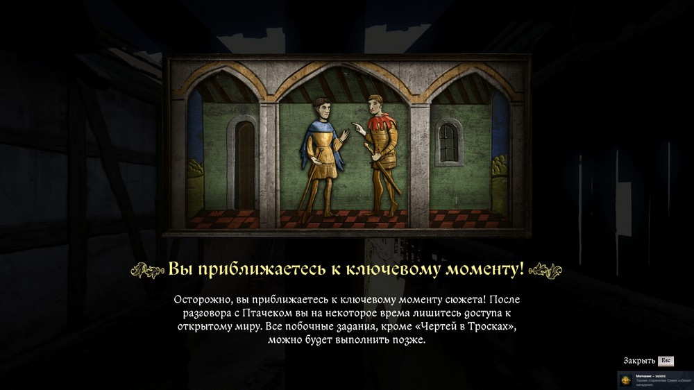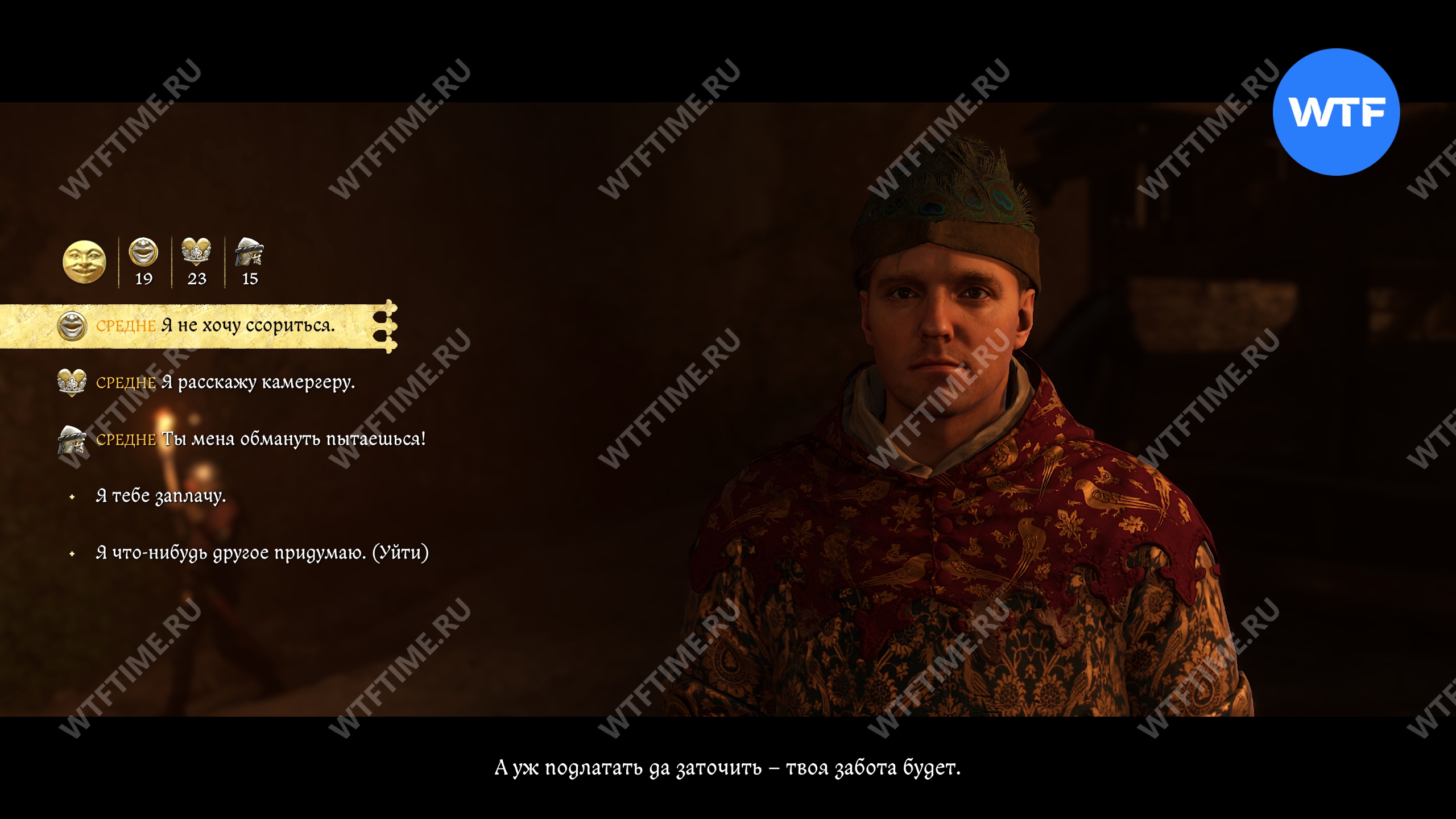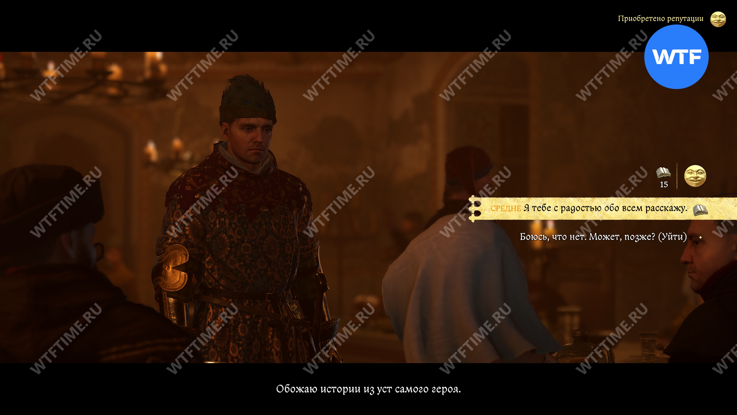 После этого вы отправитесь на пир, который начнется с разговора с паном Отто и его камергером. Чтобы получить лучшую репутацию, нужно будет пройти среднюю проверку убеждения, а затем заступиться за Птачека.