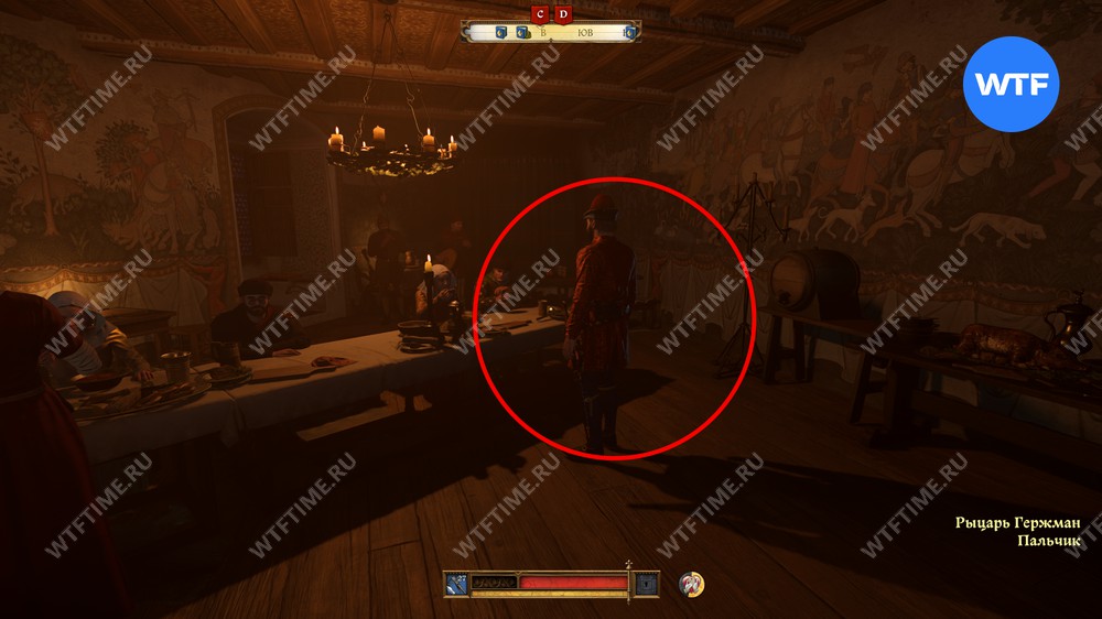 Рыцарь Гержман Пальчик — единственный из гостей, который откроет здесь необязательную задачу. Он попросит вас украсть и принести кольцо, чтобы подшутить над рыцарем Флорианом.