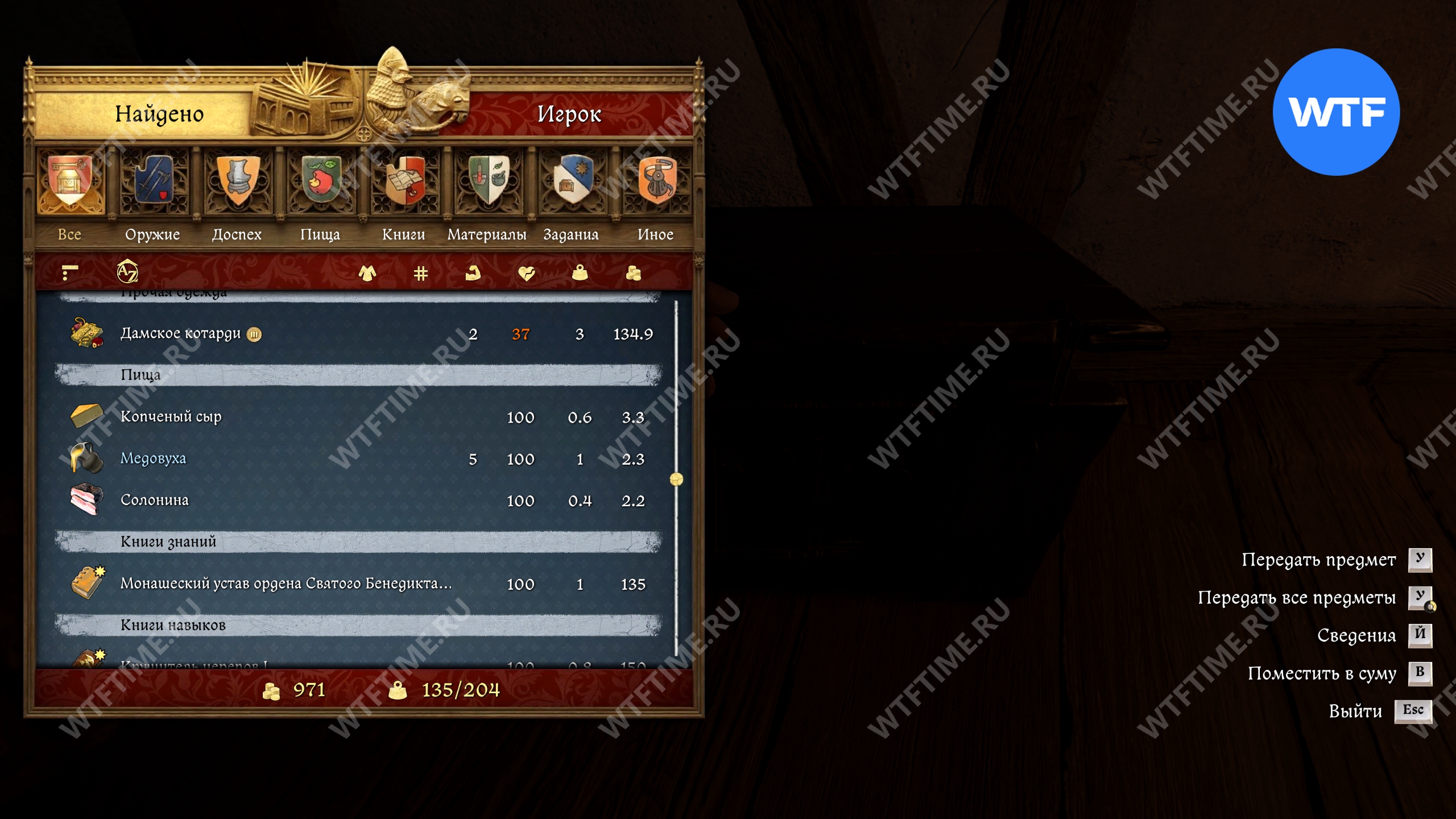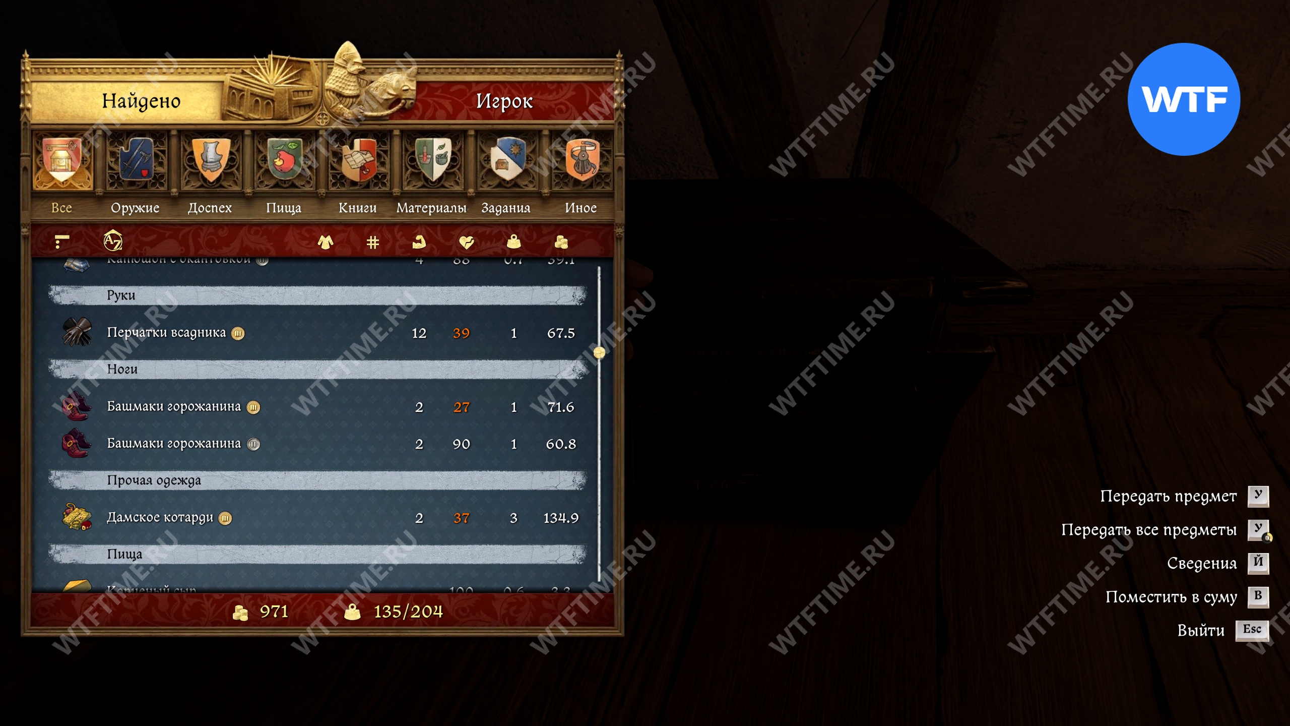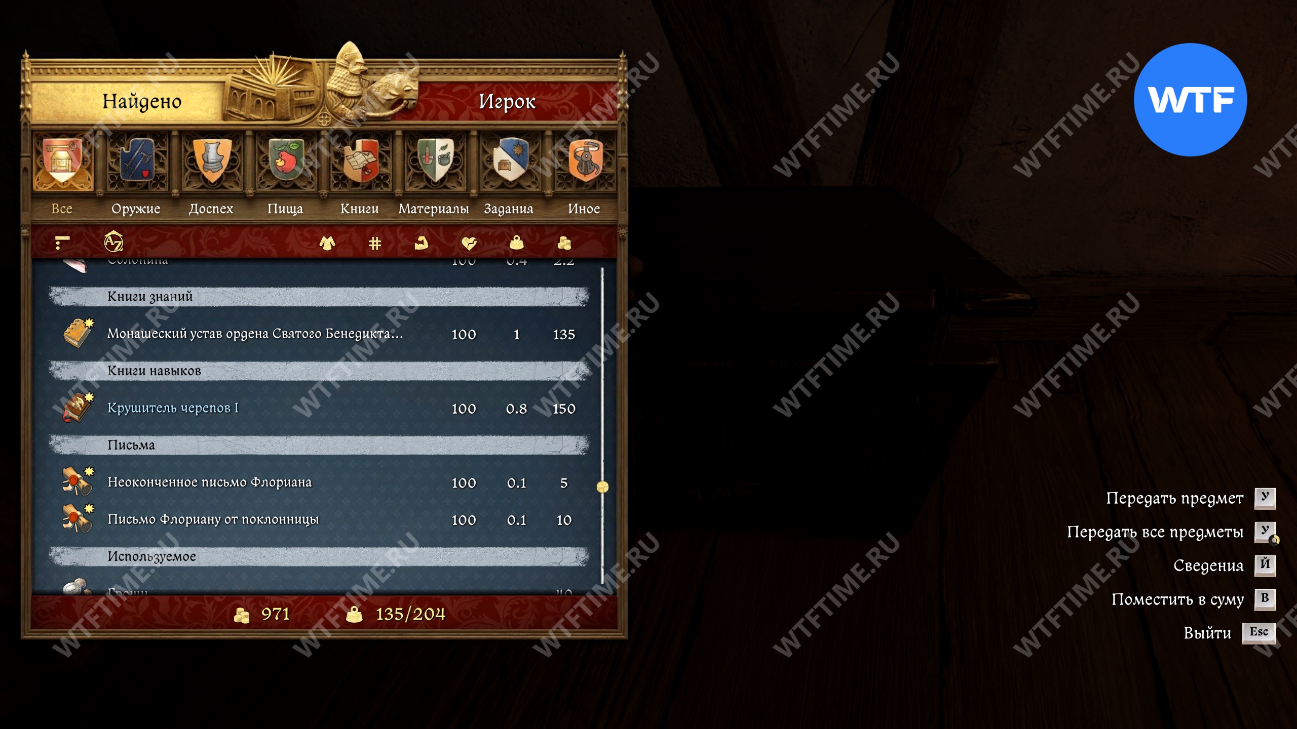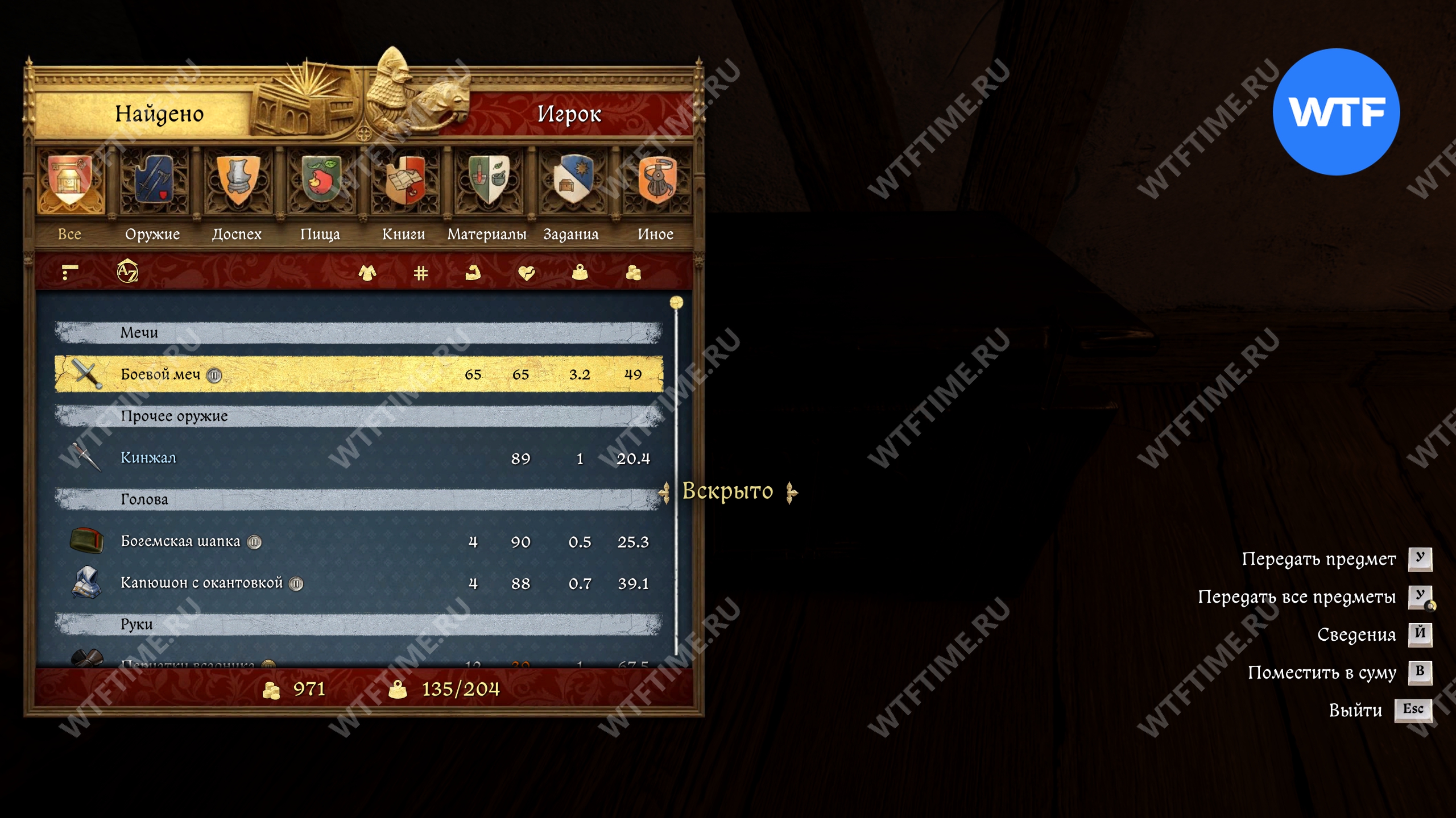 Помимо кольца Флориана в сундуке лежат меч, кинжал, куча одежды, две книги знаний и навыков, 40 грошей и еще немного всего по мелочи (см. скриншоты в галерее ниже).
