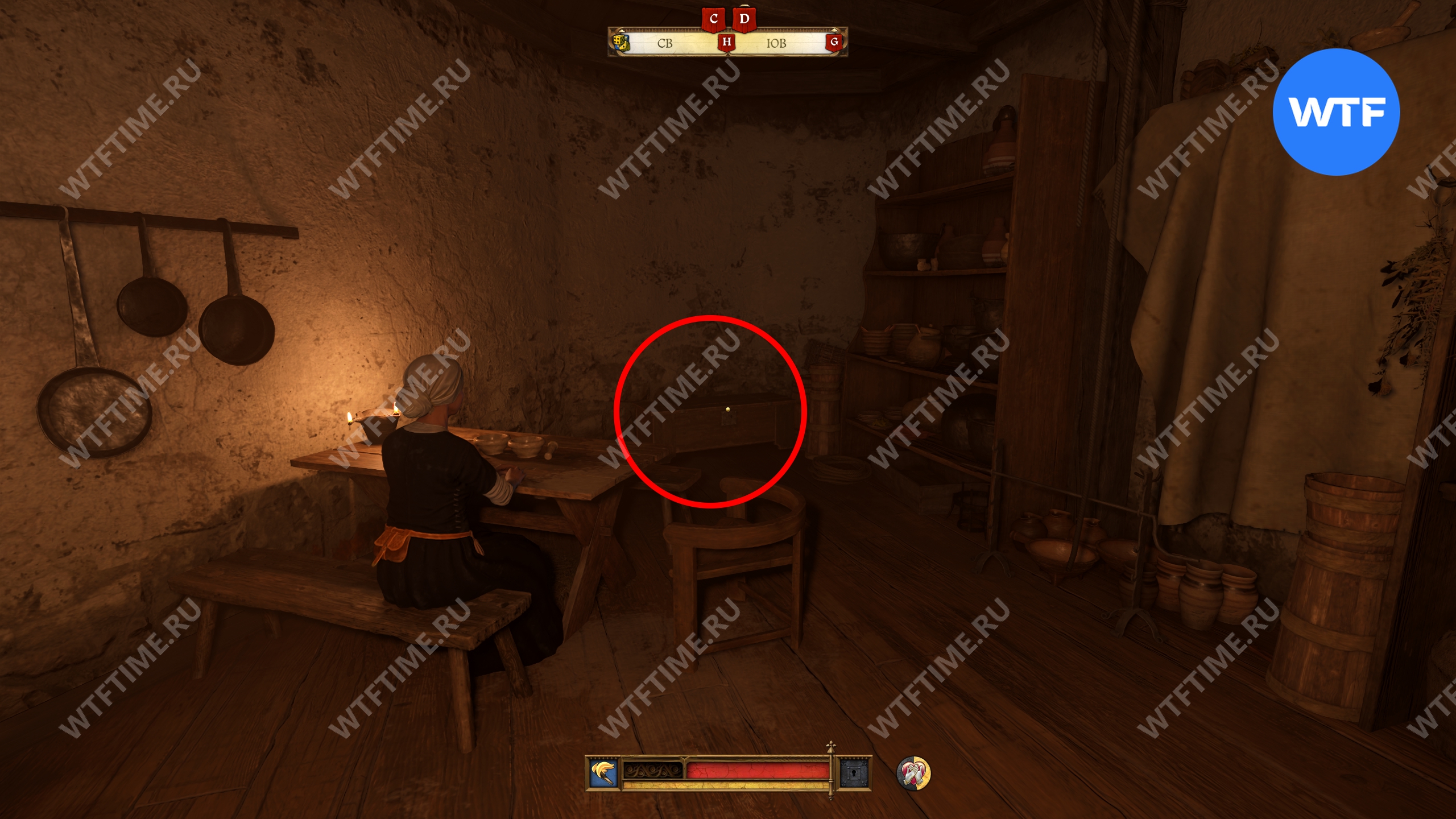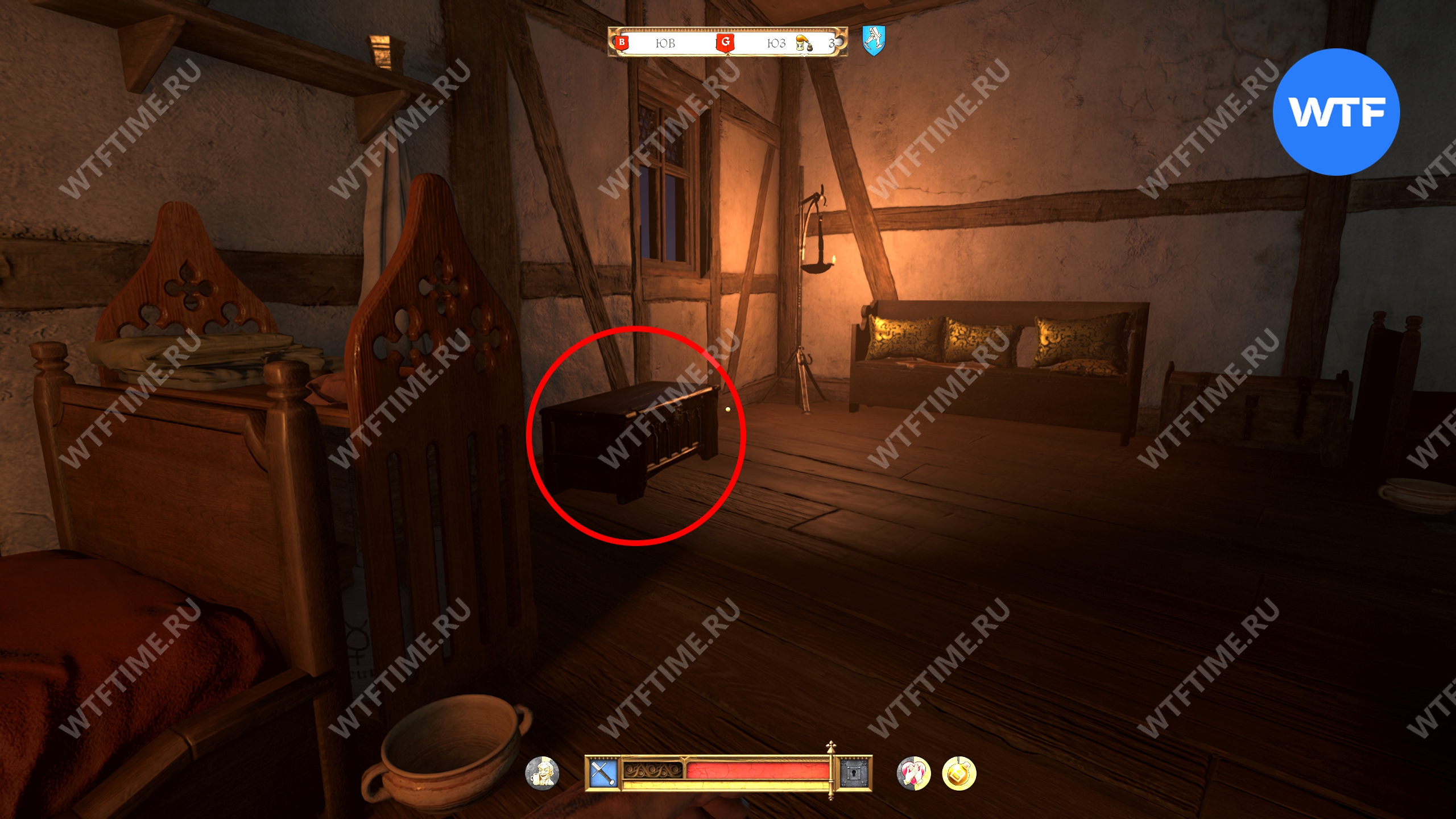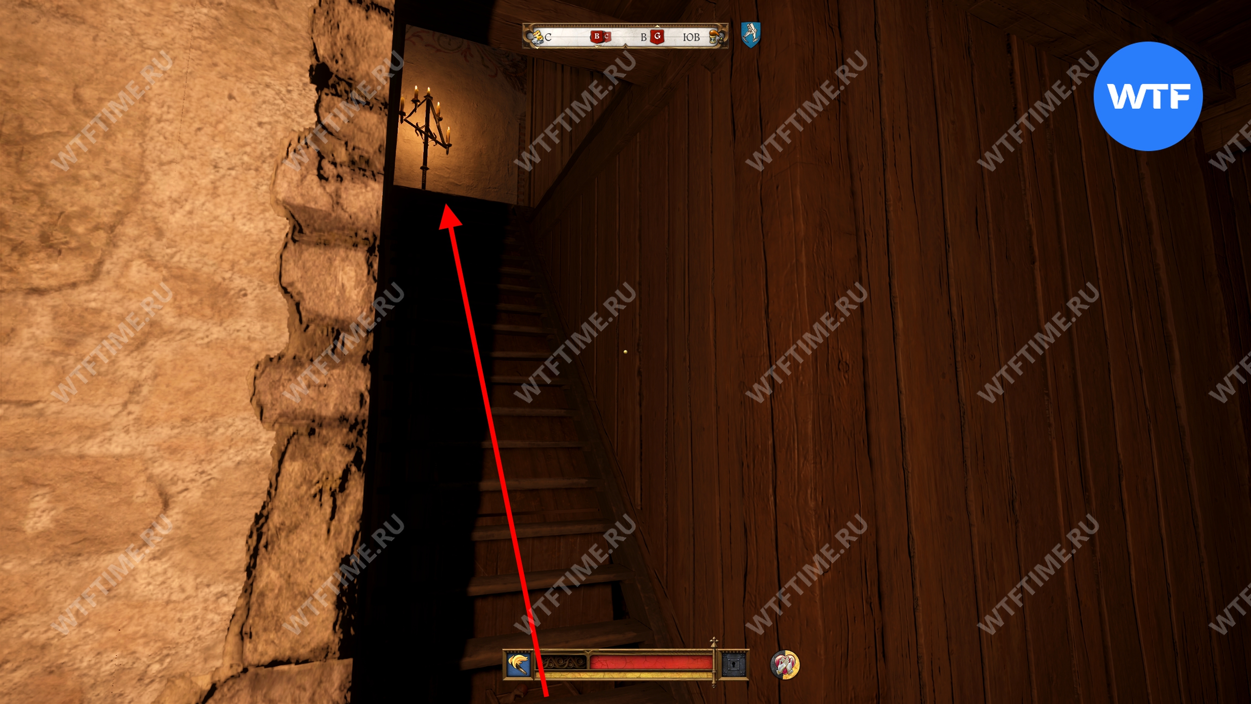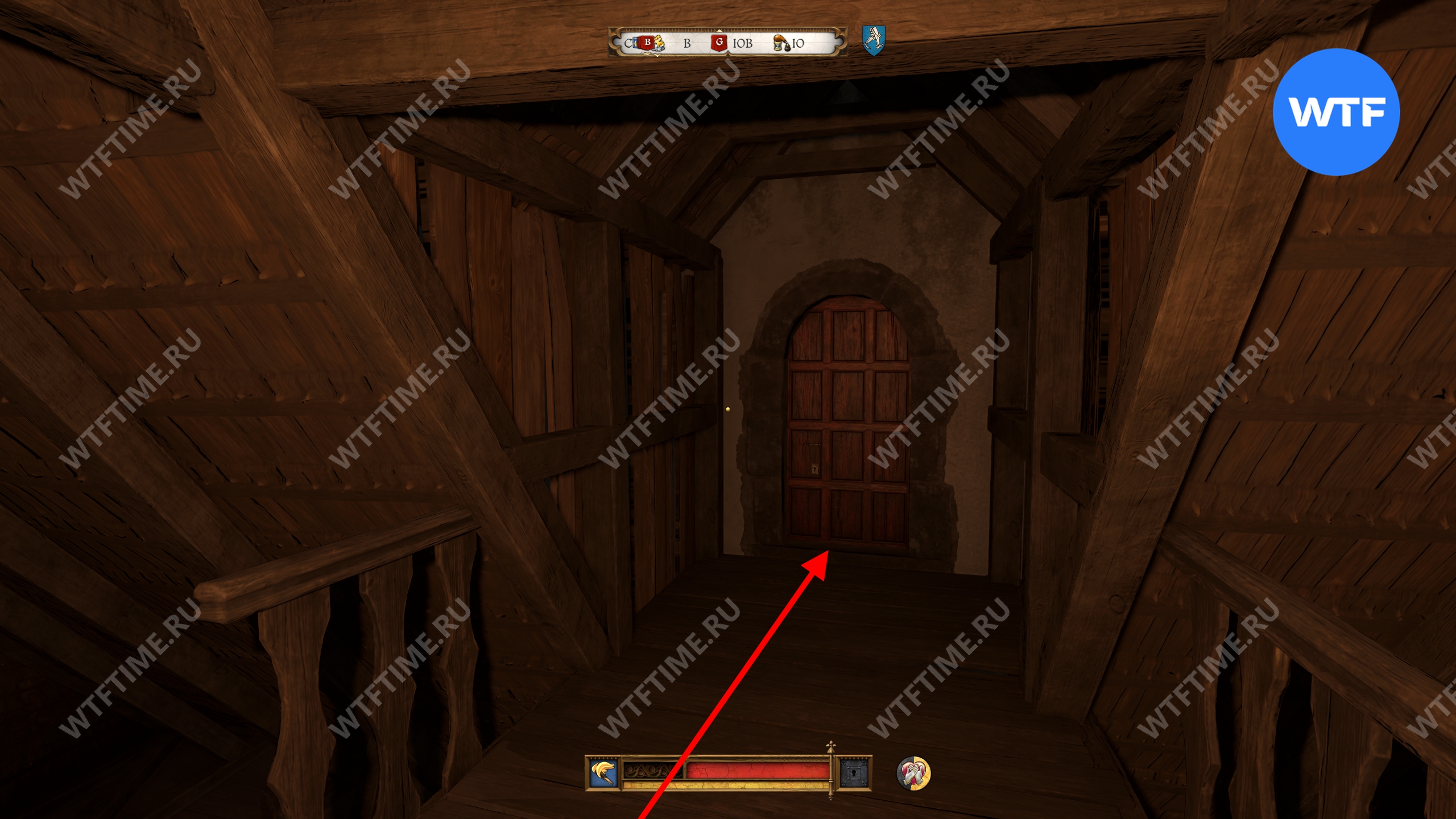 Покои наверху патрулируют два стражника, так что рекомендуем надеть тихую одежду и потушить факел. Они периодически спускаются вниз к кабинету писаря и это хороший момент, чтобы проскочить мимо.