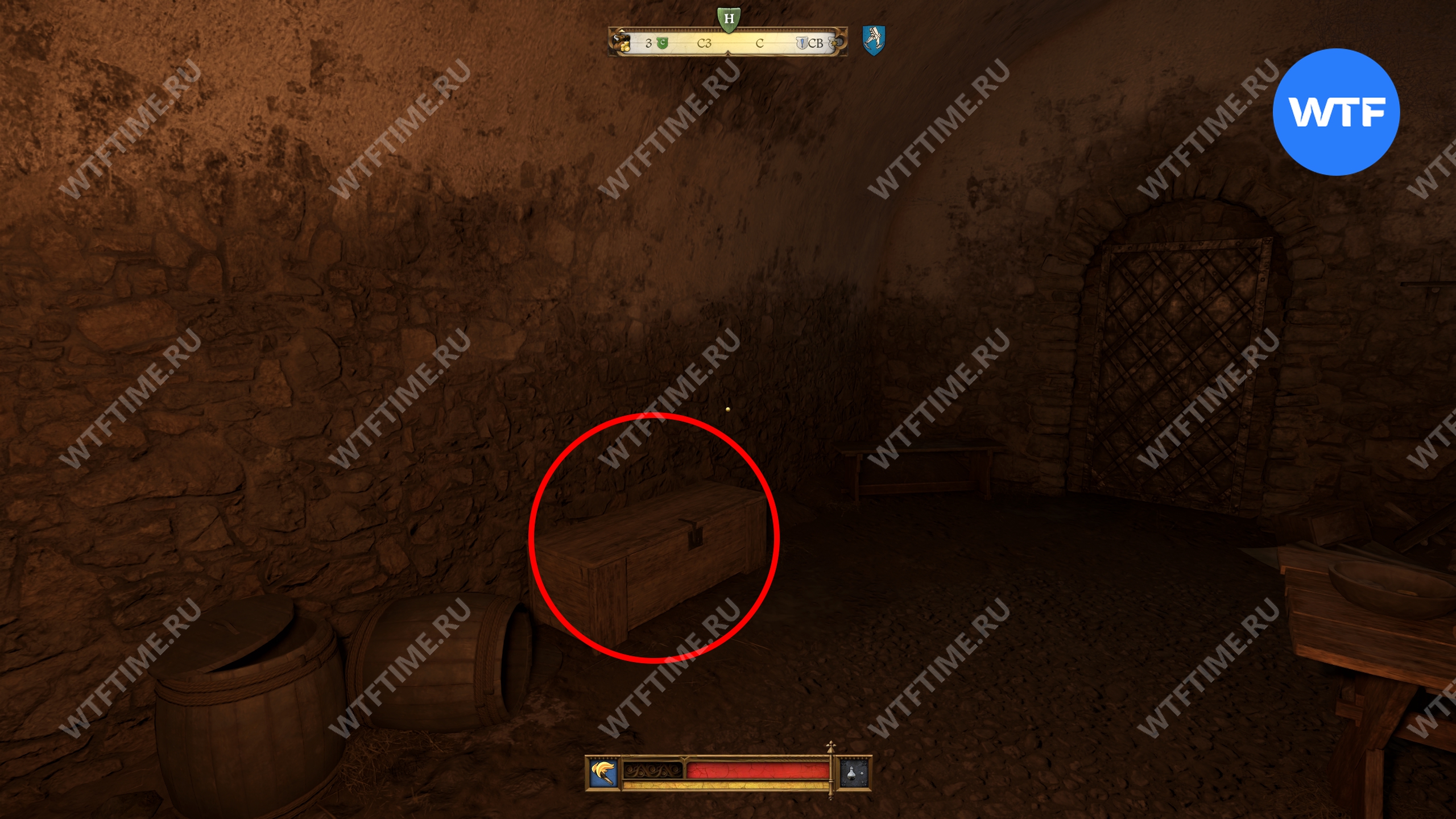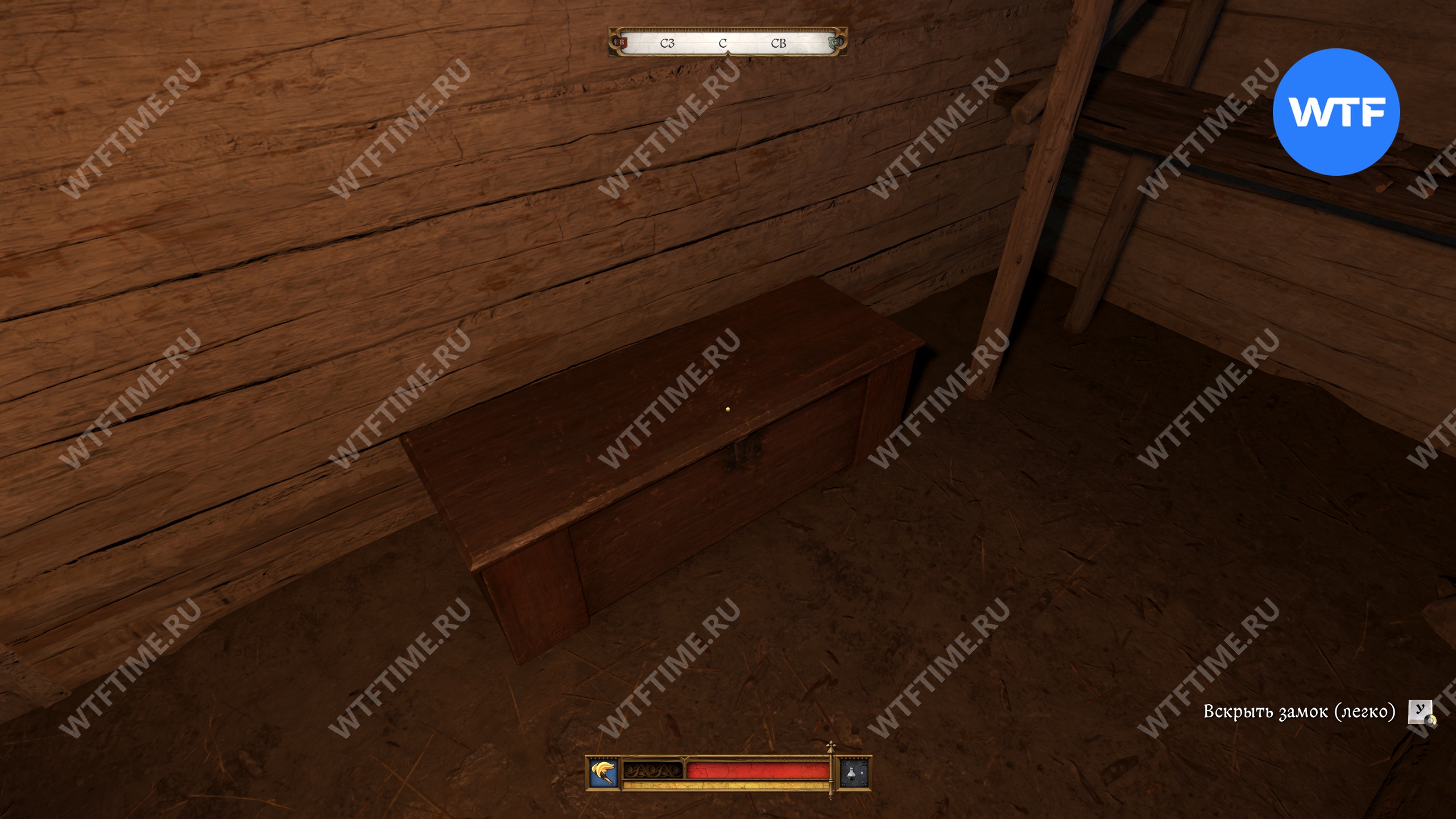 Прежде чем уходить из дома Гинека, идите в другую комнату в доме и отоприте дверь с очень легким замком. В спальне за ней будет стоять сундук, запертый на легкий замок. Внутри него лежит Ключ от погреба, который очень скоро вам пригодится.