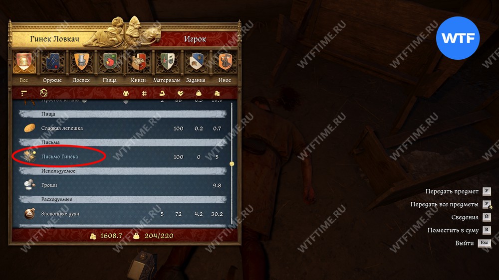 Теперь откройте инвентарь, перейдите в раздел «Книги» и прочитайте Письмо Гинека. В нем вы увидите следующую загадку: