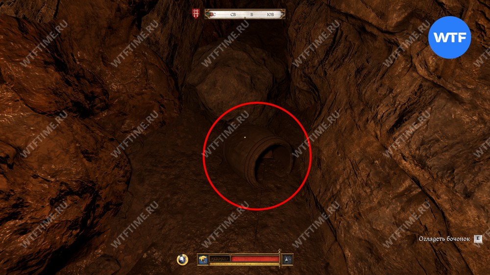 Вы окажетесь в небольшом тупичке, в конце которого на земле лежит неприметный бочонок. Это и есть тайник Козятина, который вам нужно обыскать для квеста. Внутри вы найдете астролябию и книгу Шинделя.
