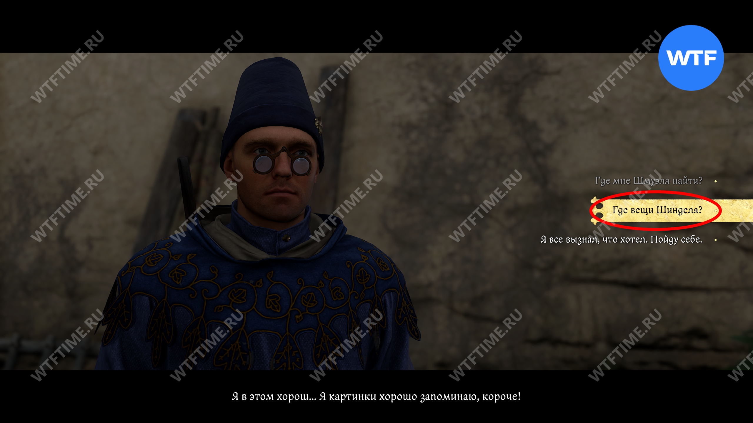 Вы сможете вскрыть очень легкий замок на двери и в итоге попасть в дом, где сидит местный писец, через подвальные помещения. Мастер Шиндель поблагодарит вас за возвращенные вещи и даст 225 грошей в награду.