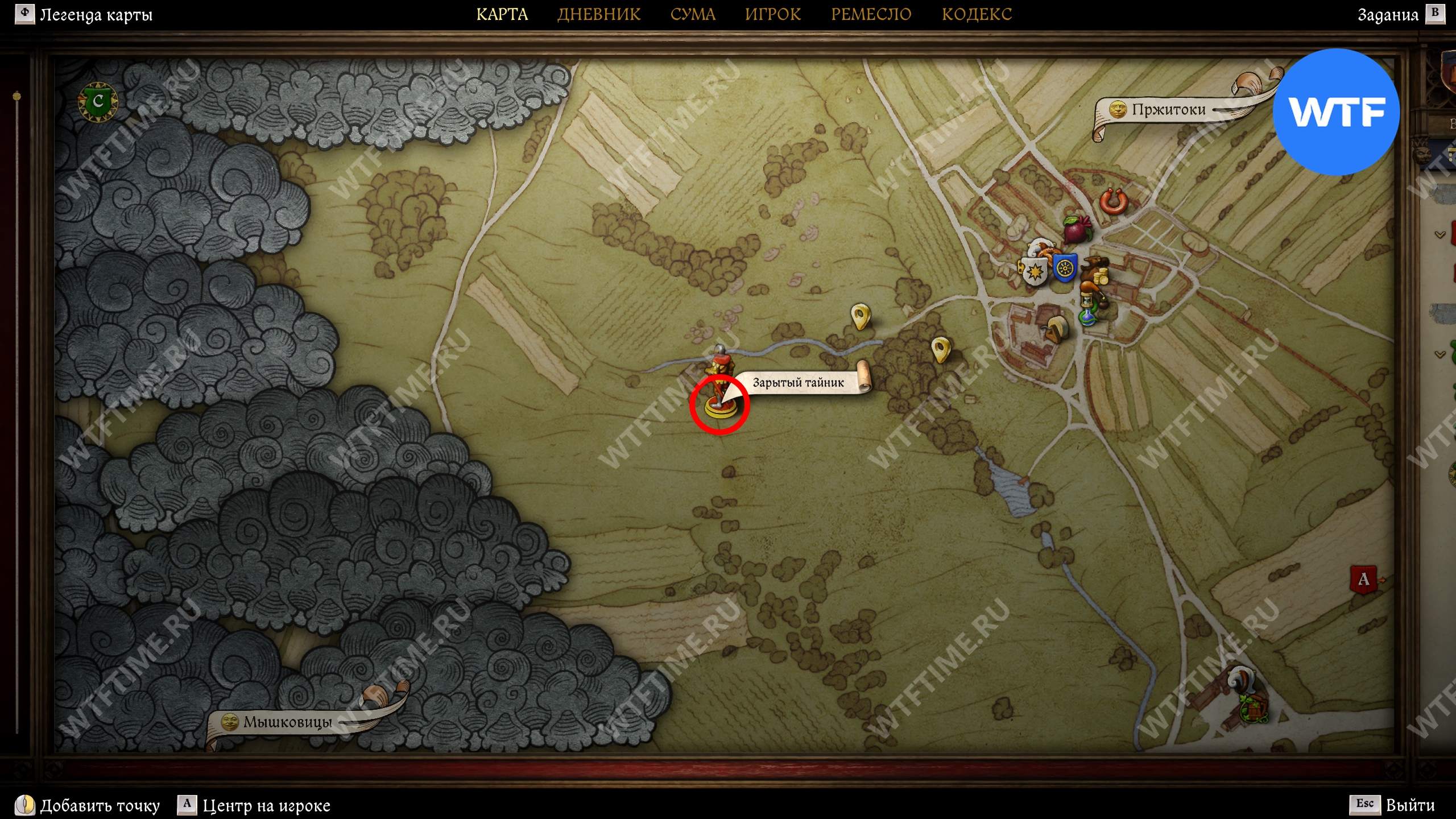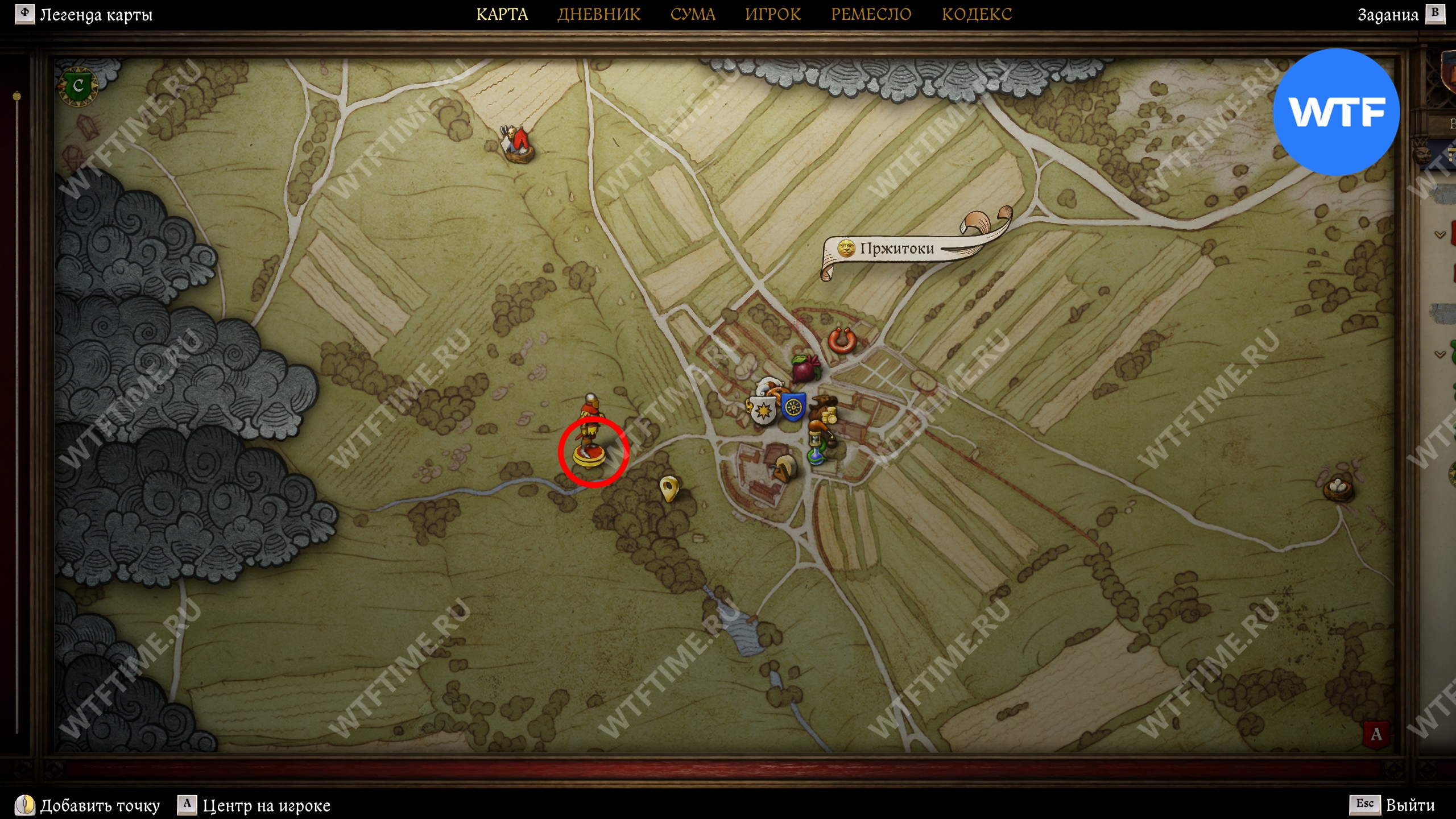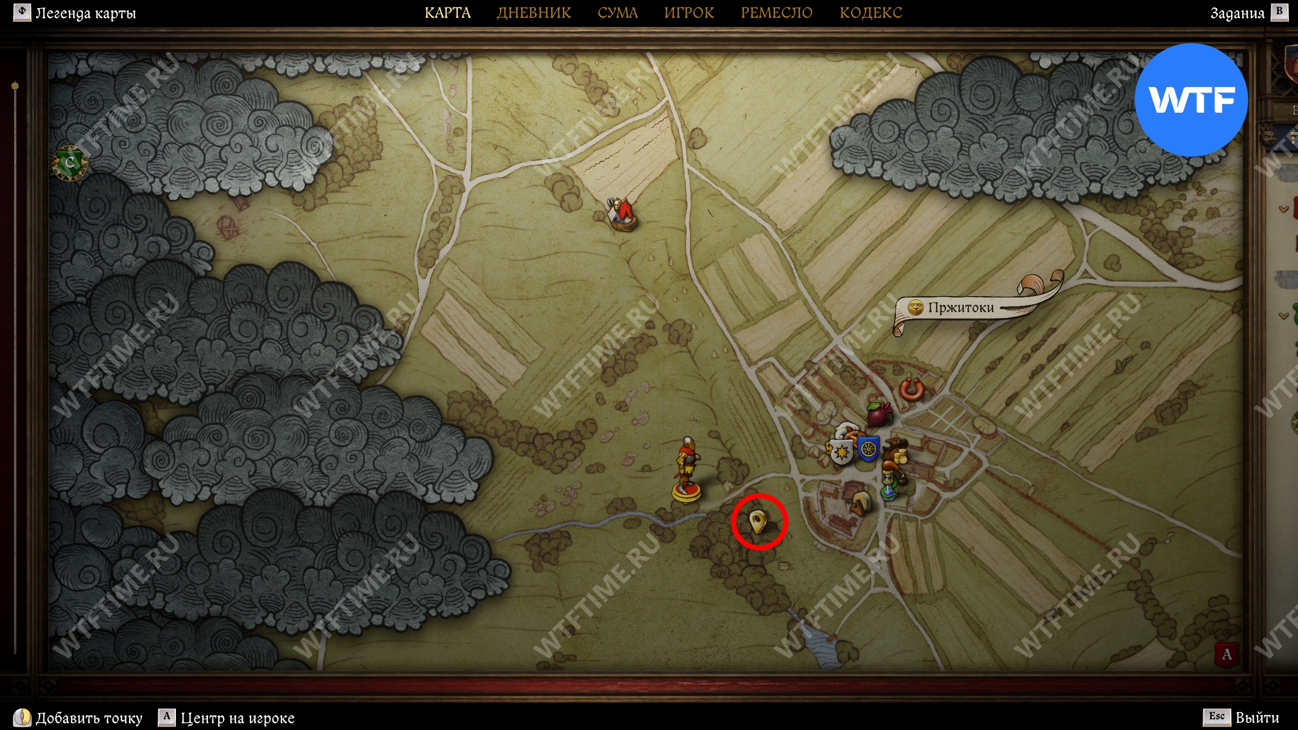 Карта Боржика весьма схематична и не содержит каких-то сходу понятных ориентиров. Тем не менее она ведет вас к лугам, расположенным к западу от Пржитоков. Рядом есть еще парочка интересных мест, куда также стоит заглянуть по пути.