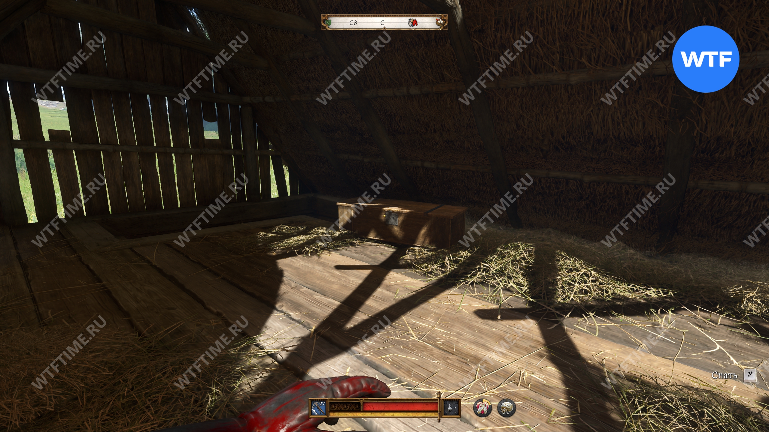 Похоже, что именно домик этого пастушка и указан в качестве ориентира на карте. Сама точка интереса не особо примечательна — внутри дома есть сундук со сложным замком, в котором лежат скромные пожитки пастуха.
