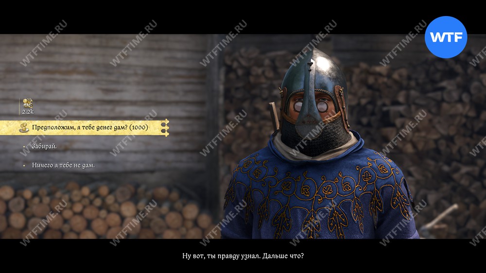 На этом этапе у вас появится выбор: вы можете дать ему 1000 грошей или отдать украденные вещи. В этом случае он будет благодарен и обучит вас умению живучести.