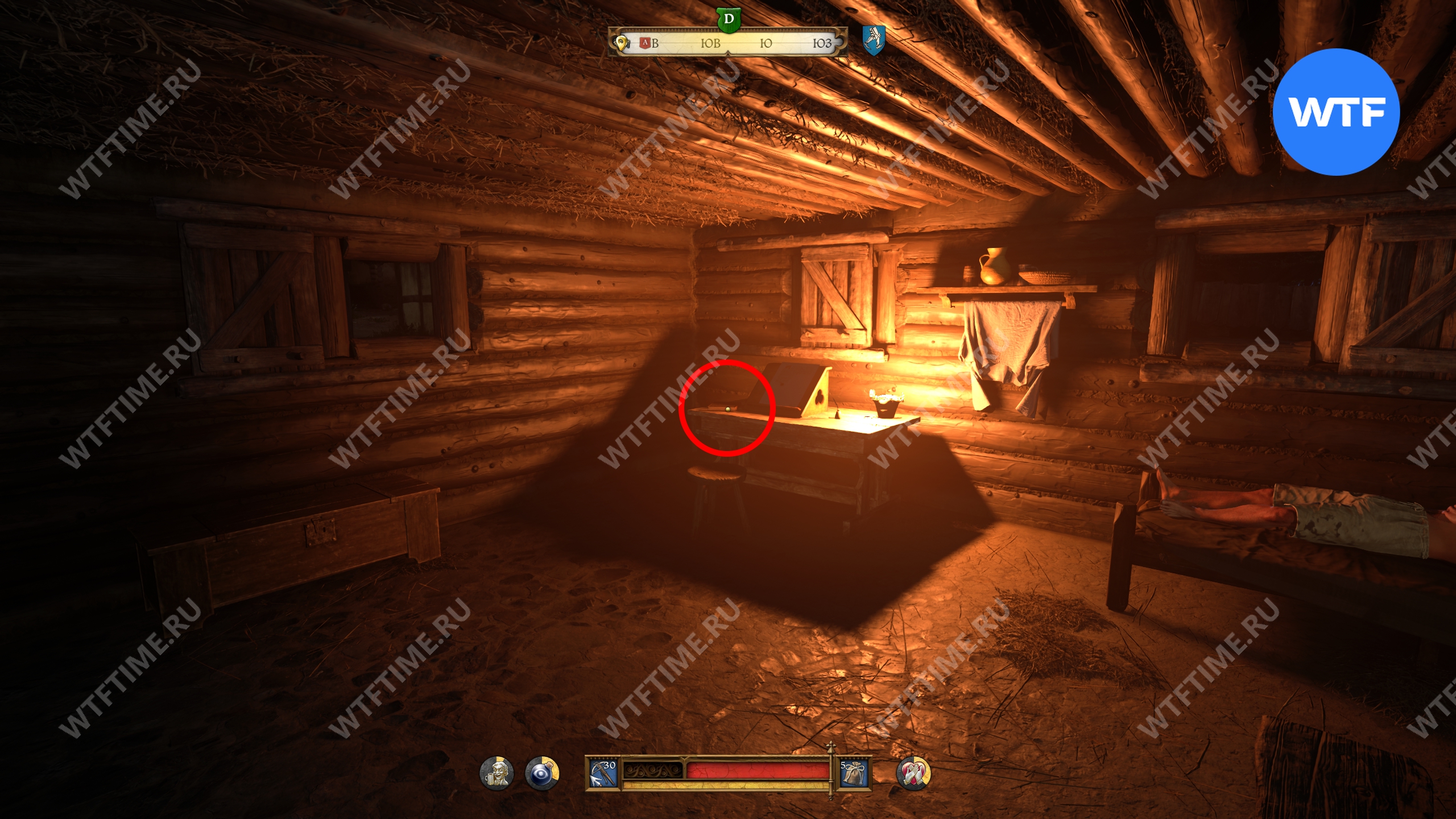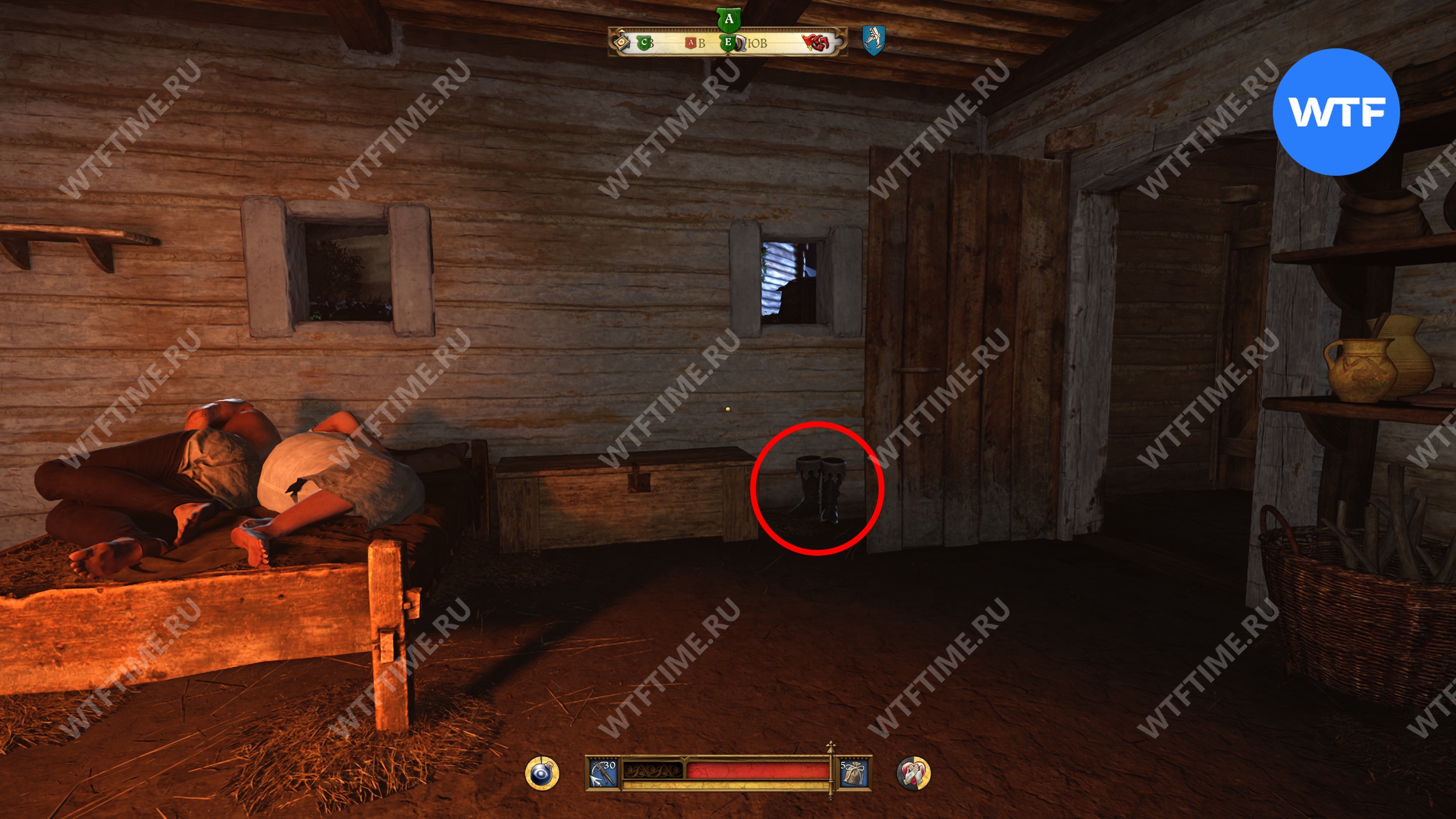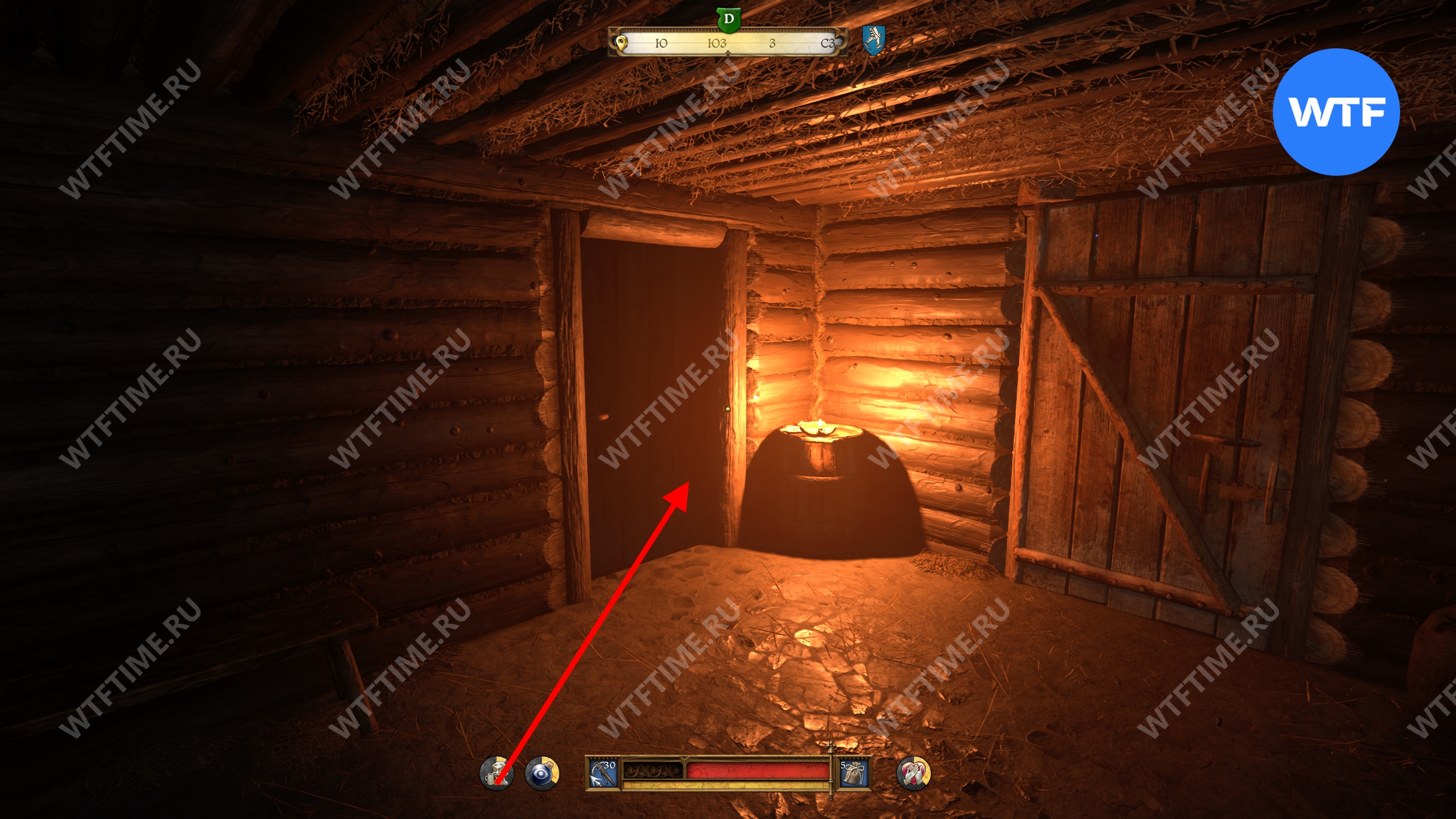 Дом Воршилки находится прямо по центру деревни. Дверь заперта на очень легкий замок, так что приготовьте свои отмычки. Внутри вам нужно зайти в первую дверь справа.