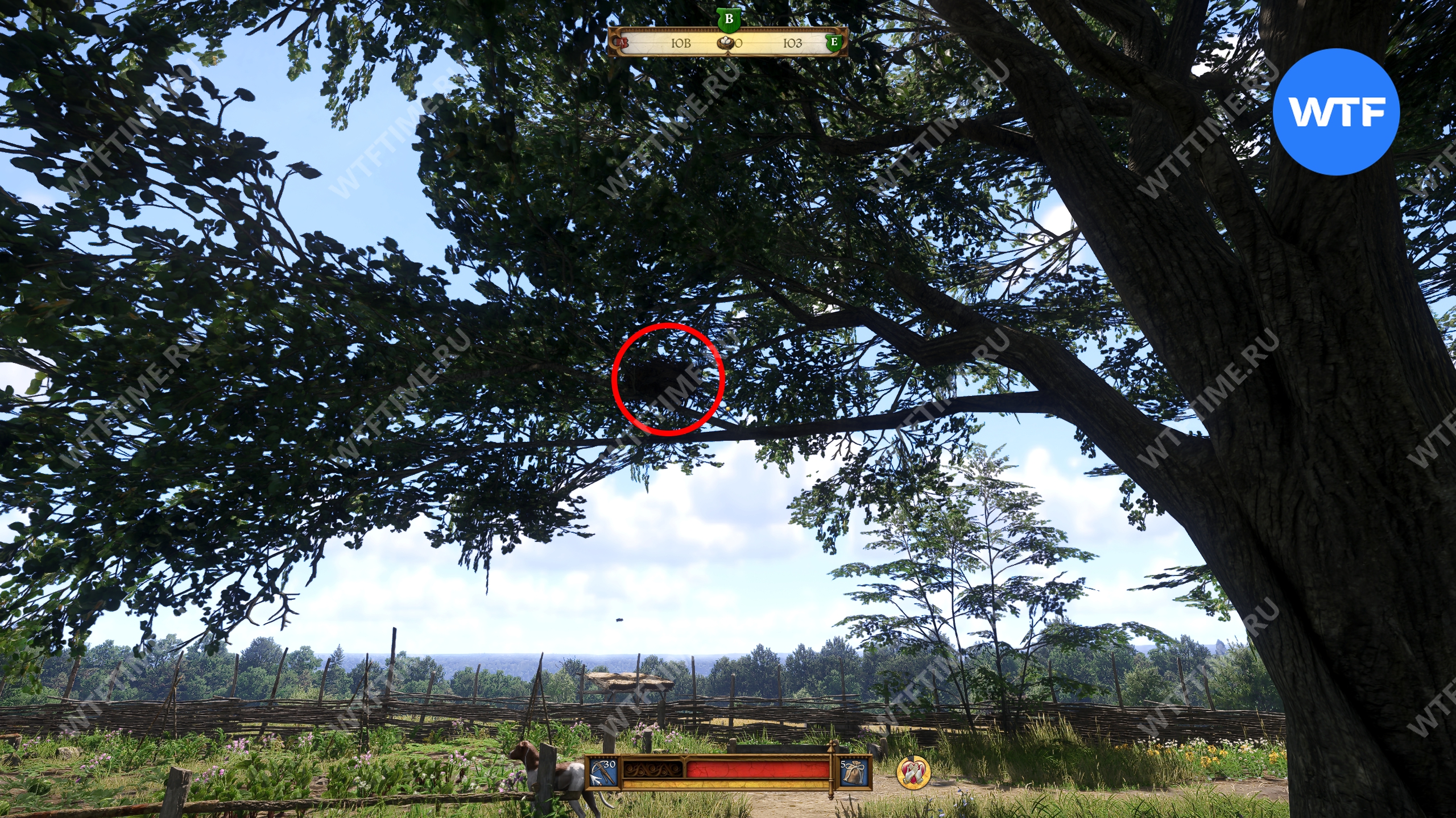 Кражами лучше заниматься ночью, но прежде чем перематывать время, давайте разберемся с вороньим гнездом. В деревне их несколько, и вам нужно то, которое висит на дереве во дворе дома Богушки.