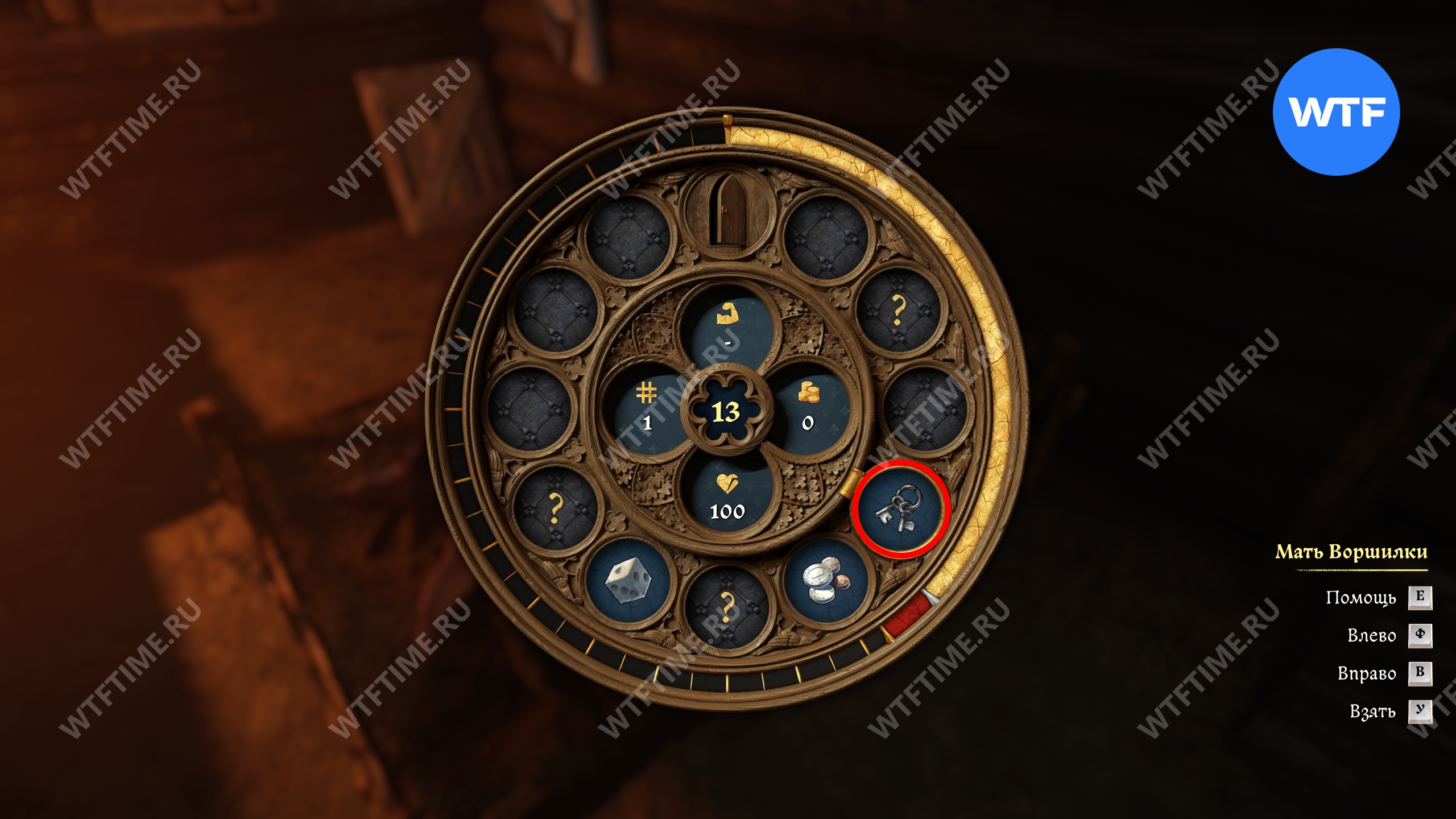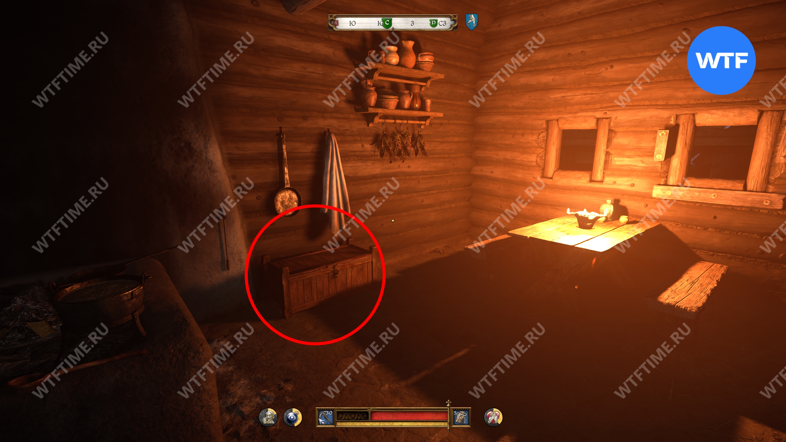 Украдите связку ключей у матери Воршилки, спящей на кровати, а затем отоприте сундук со сложным замком, стоящий в этой же комнате. Внутри вы найдете Четки с самоцветом, а также другие пожитки семьи.