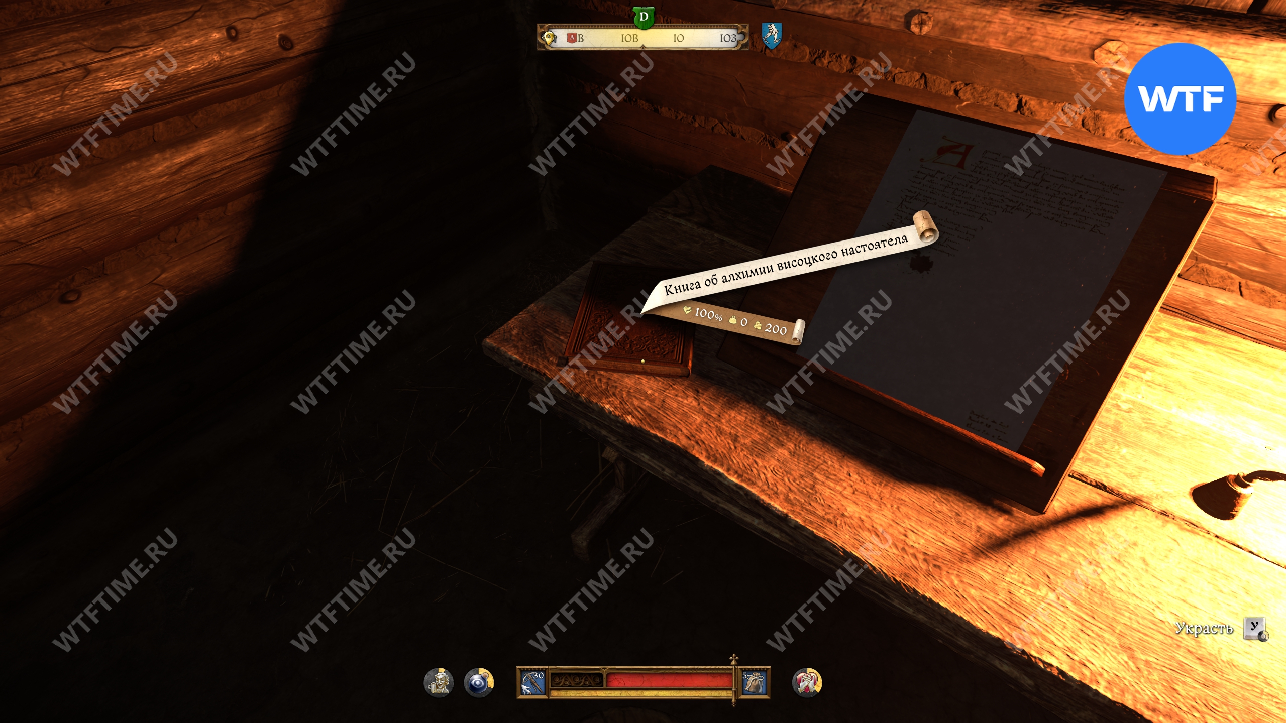 Последнее, что нам нужно украсть — это книга отца Антонина. Отправляйтесь к нему домой и вскройте очень легкий замок на двери в дальнем левом углу. Книгу об алхимии висоцкого настоятеля можно найти на столе слева от кровати.
