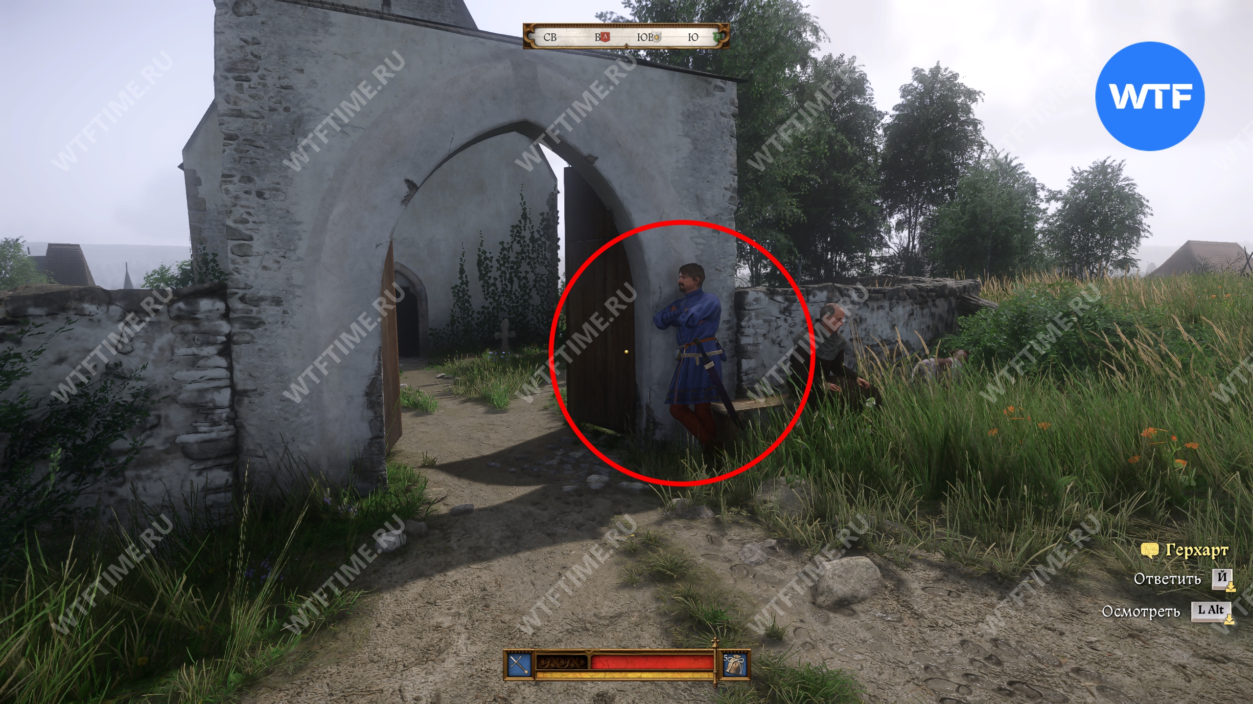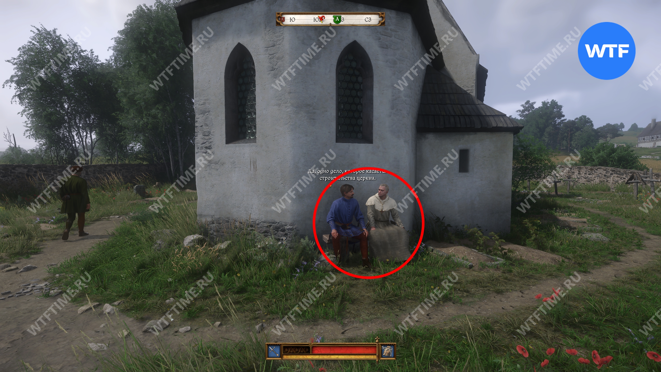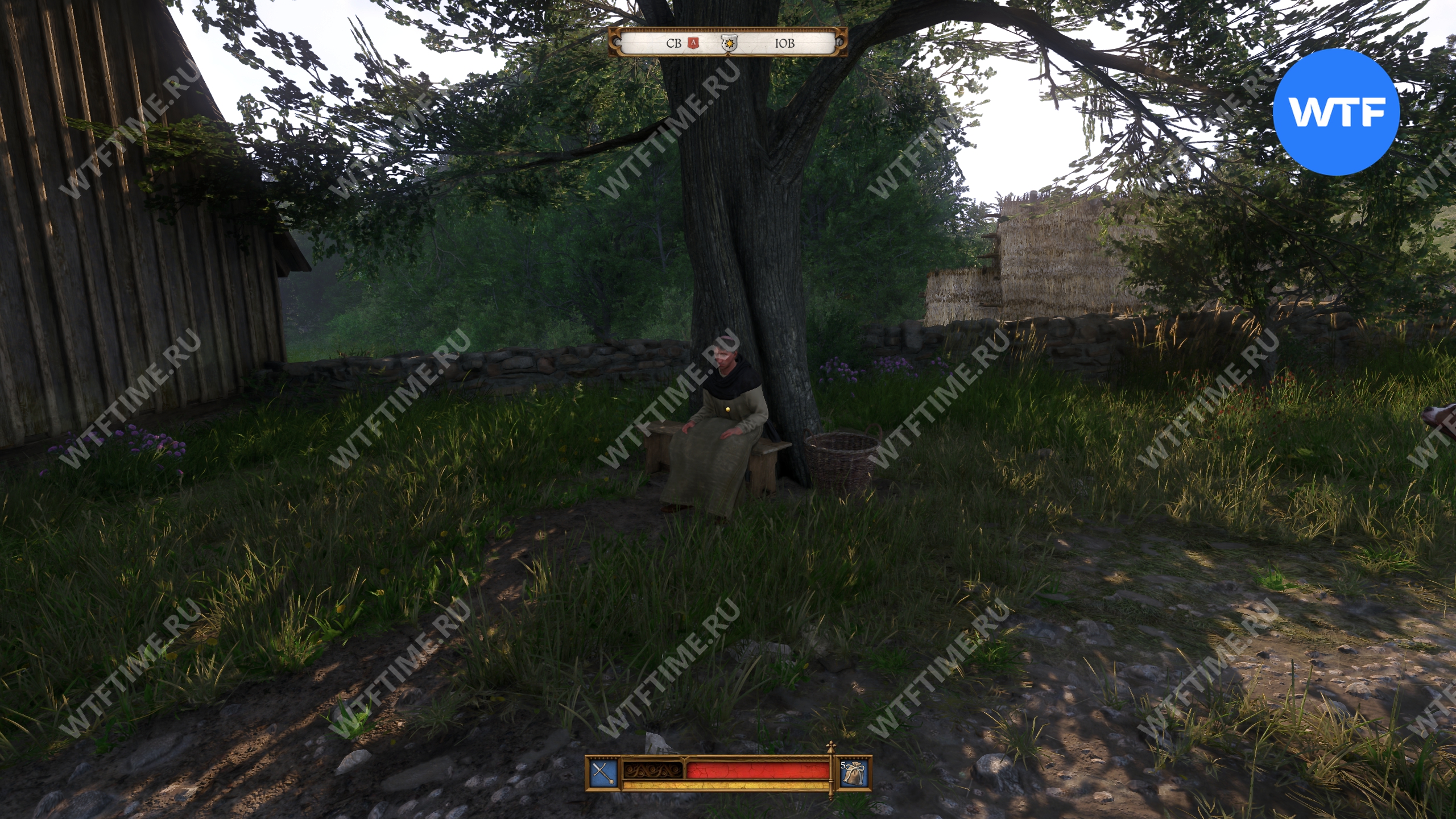 Чтобы начать прохождение квеста «Логово дракона» в Кингдом Кам 2, отыщите монаха Славу, сидящего на лавочке под деревом в месте, показанном на скриншоте ниже.