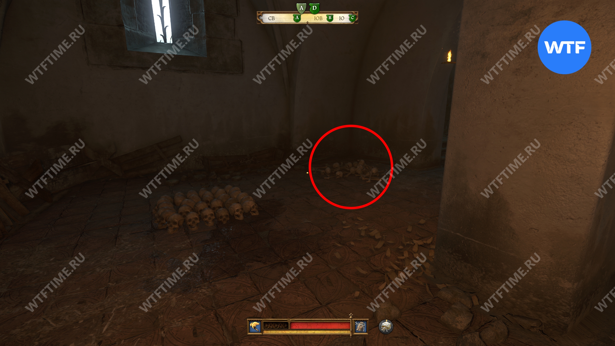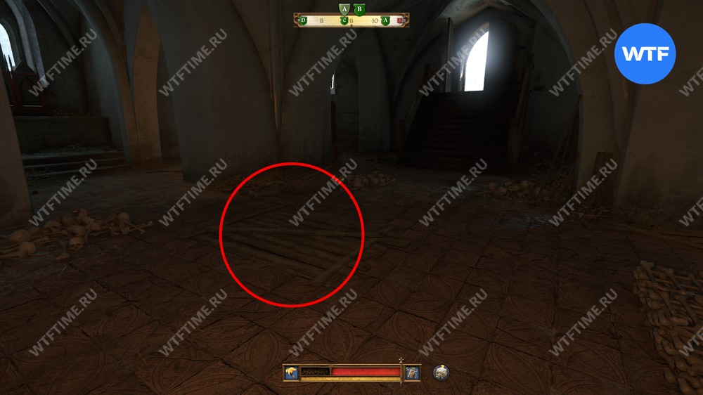 Когда с костями на первом этаже будет покончено, подойдите к люку в центральной части комнаты. После небольшой кат сцены вы провалитесь вниз. Подземный склеп на самом деле небольшой.