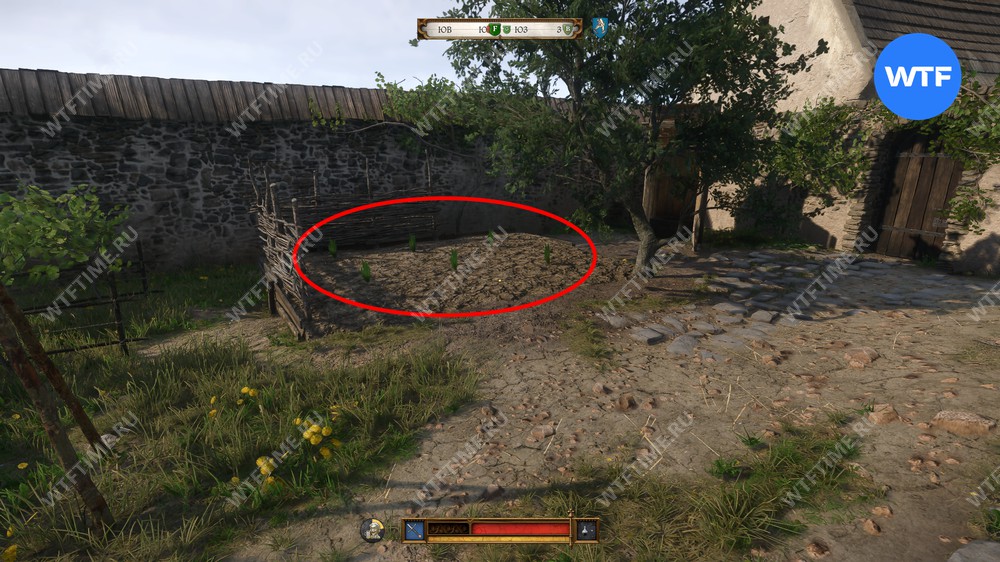 Чтобы найти саженцы, пройдите через здание винодельни насквозь (дверь прямо напротив входа). Это приведет вас на маленький задний дворик. Идите направо и отыщите небольшой разрыхленный кусочек земли с торчащими из него саженцами. Украдите 5 штучек и уходите.