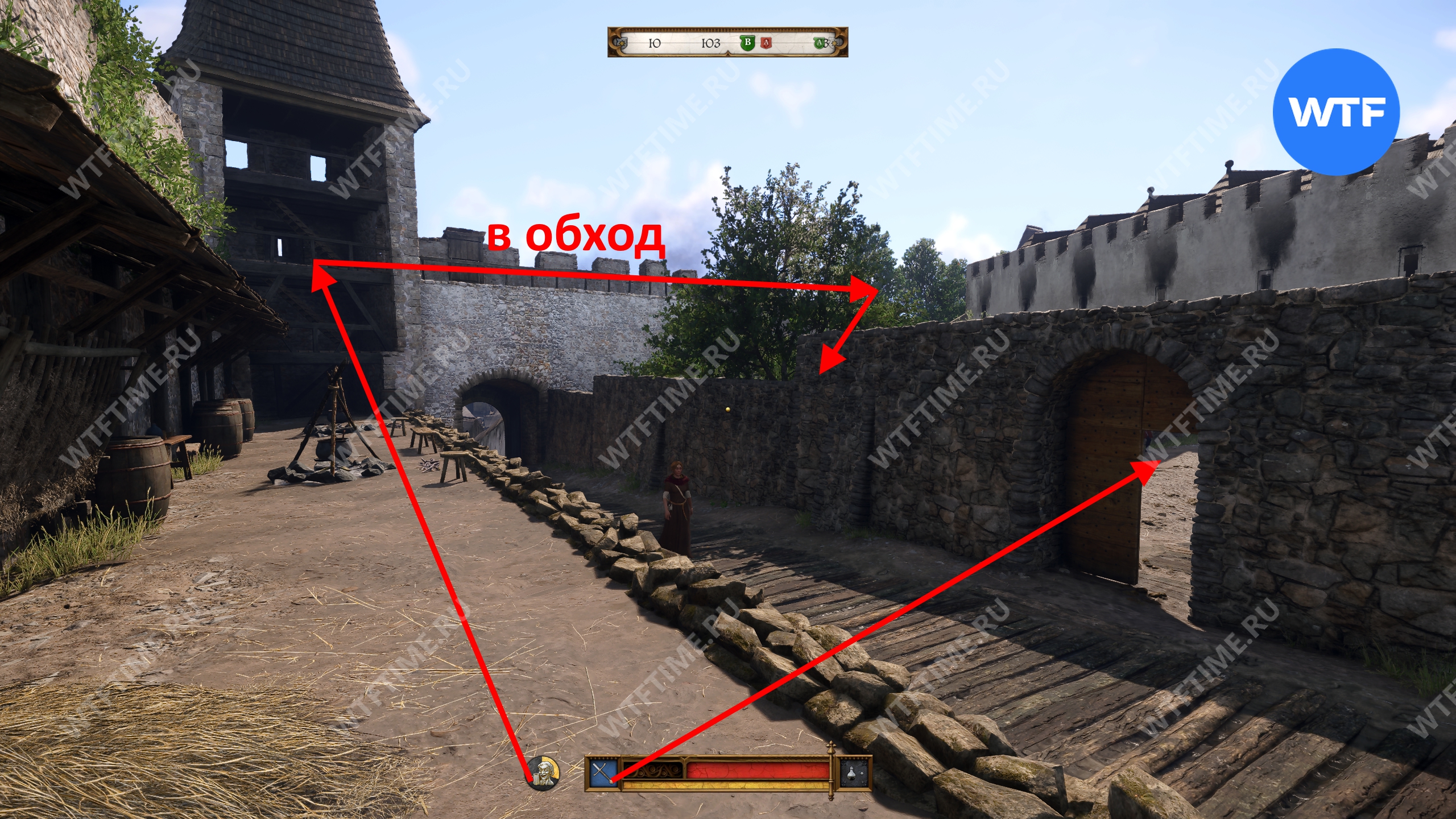Если проверки пройти не удастся, то есть обходной путь. Поднимитесь на башню перед вами, затем пройдите по крепостной стене до соседней башни и спуститесь вниз. Так вы сможете зайти к Адлете с другой стороны и её брат вас не увидит.