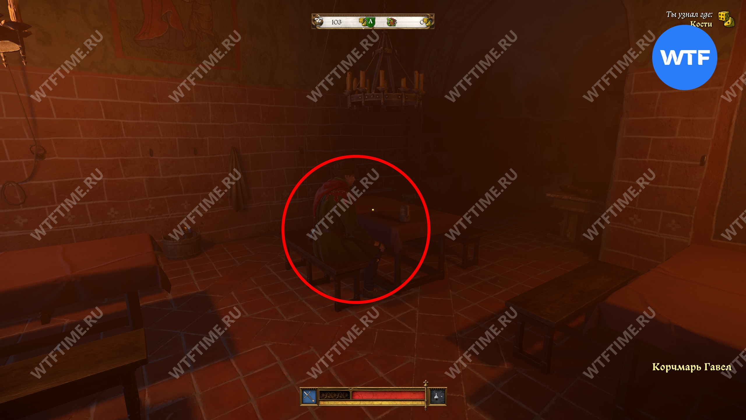 Теперь отправляйтесь в корчму «Император Карл» и отыщите там корчмаря Гавела. Спросите его про вино и он предложит вам поучаствовать в дегустации. Во время неё вы сможете блеснуть своими познаниями в алкоголе.