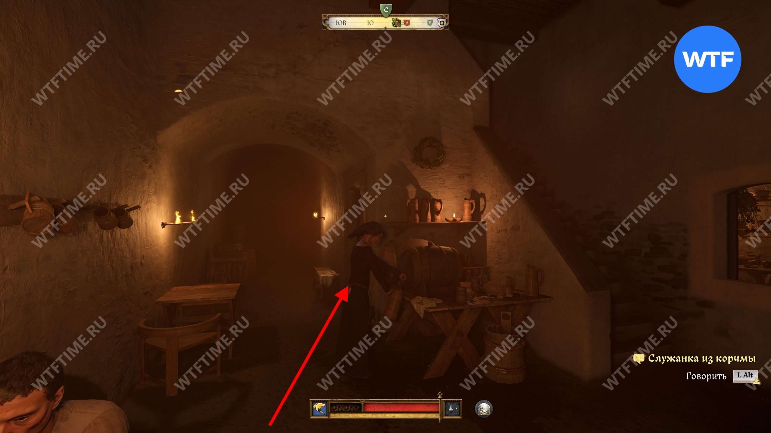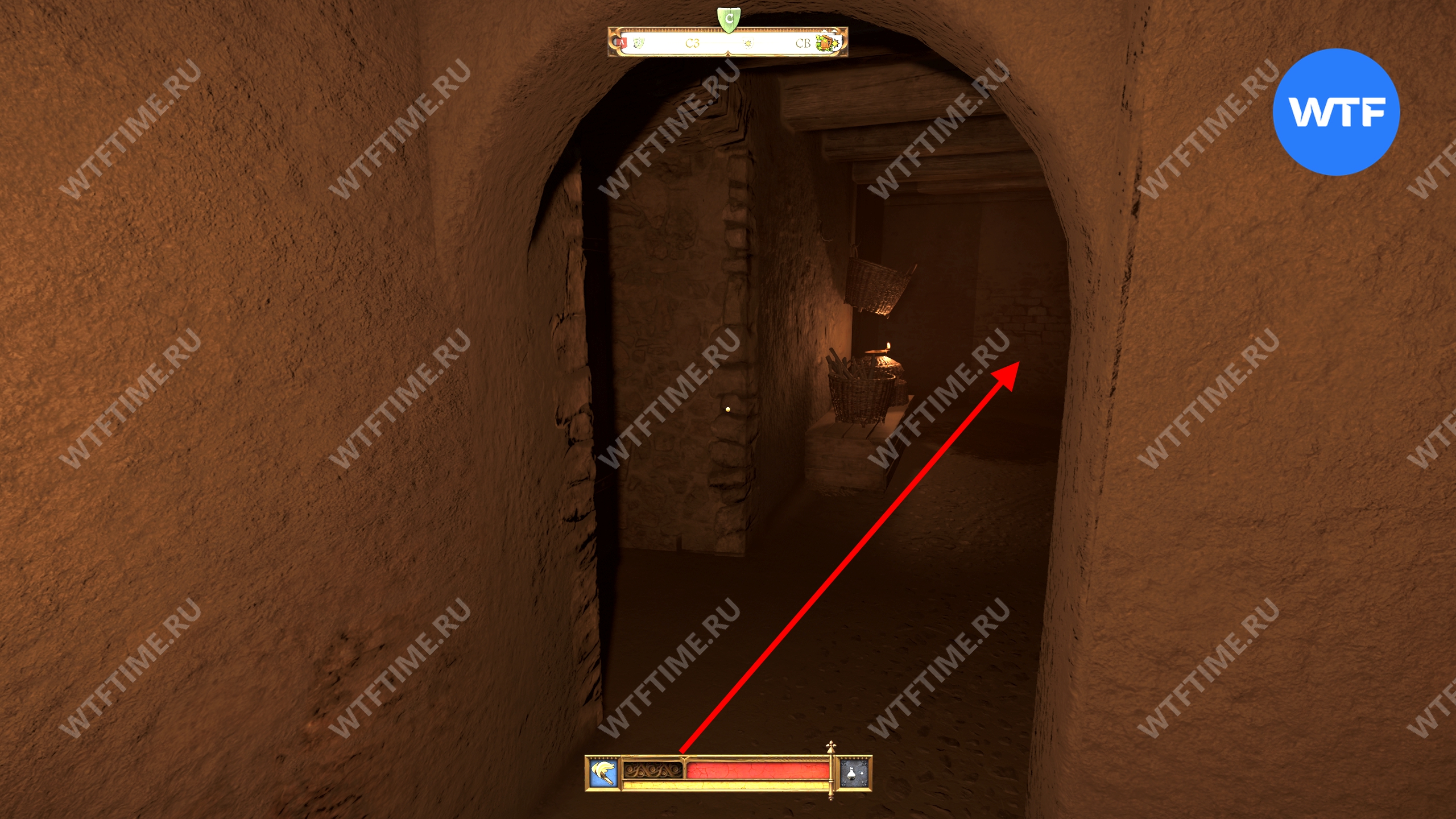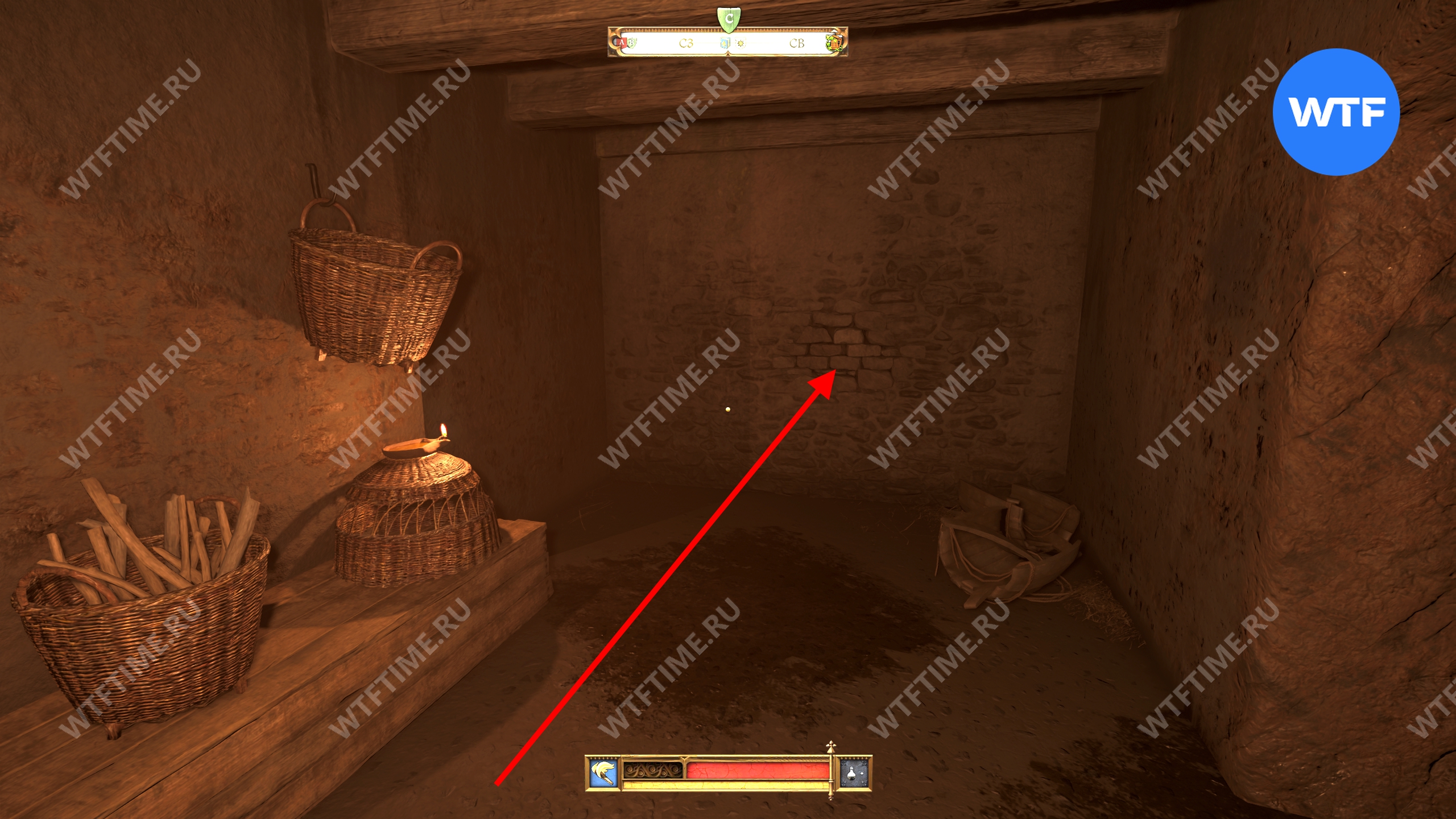 Чтобы попасть в подвал, войдите в корчму, а затем пройдите через дверь, расположенную под лестницей. После спуска вниз сразу же поверните направо и идите вперед до упора.