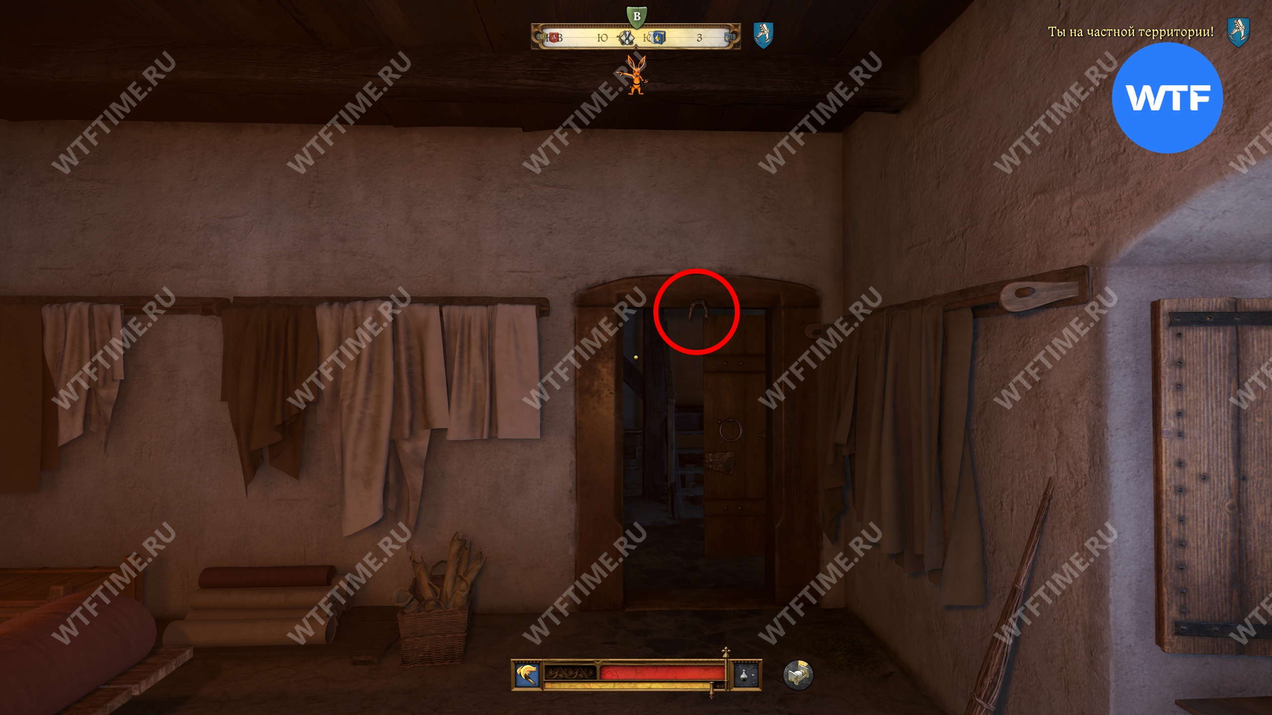 Войдя внутрь, идите в комнату слева, а затем сразу же развернитесь, чтобы увидеть найденную подкову, висящую прямо над дверным проемом. Украдите её, а затем быстро уходите, пока вас никто не заметил.