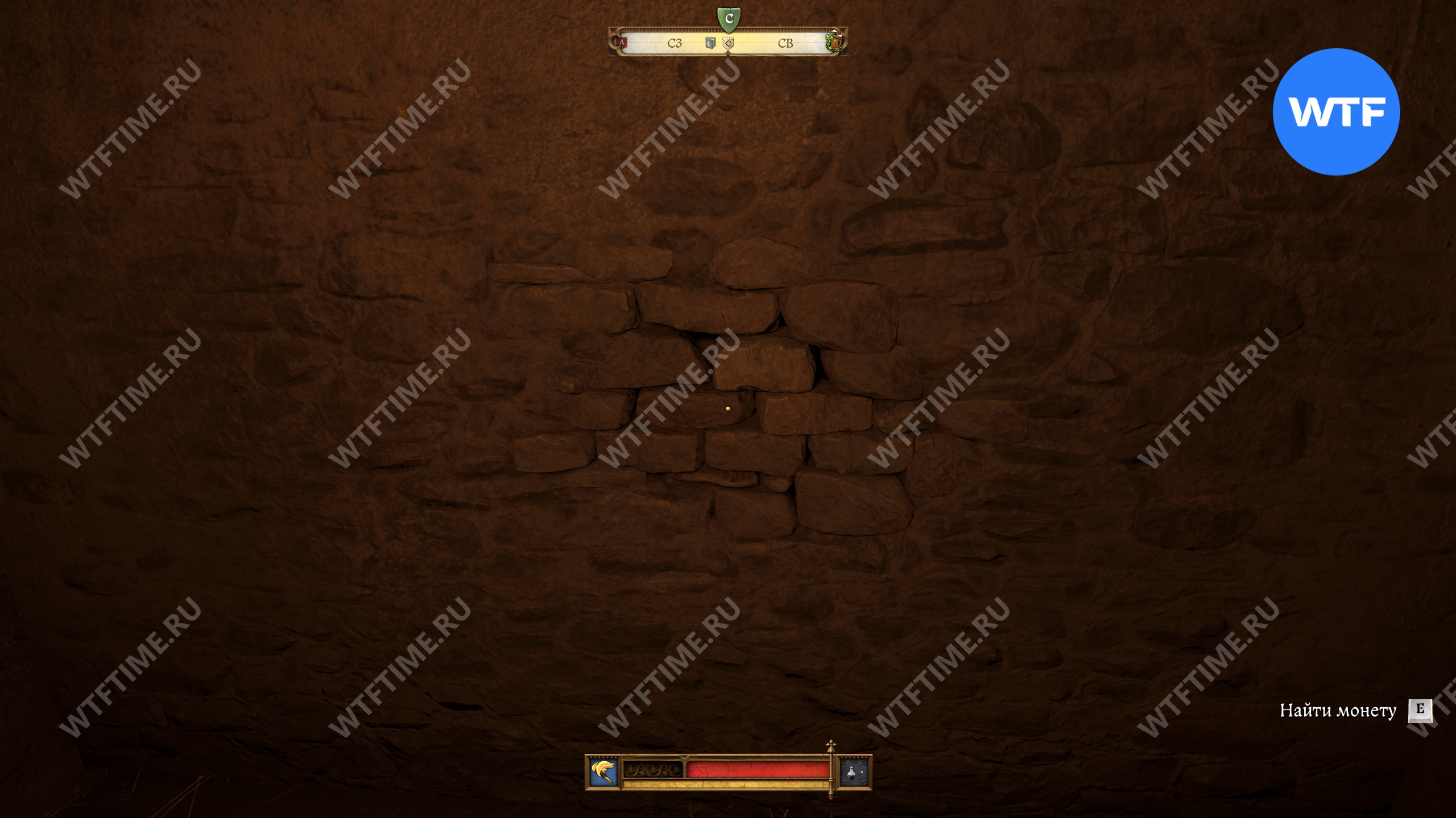 Вы упретесь в стену, в которой заметно выделяется кусок каменной кладки. Вы должны сначала нажать на кнопку «Найти монету», а затем на кнопку «Ограбить», чтобы забрать памятную монету.