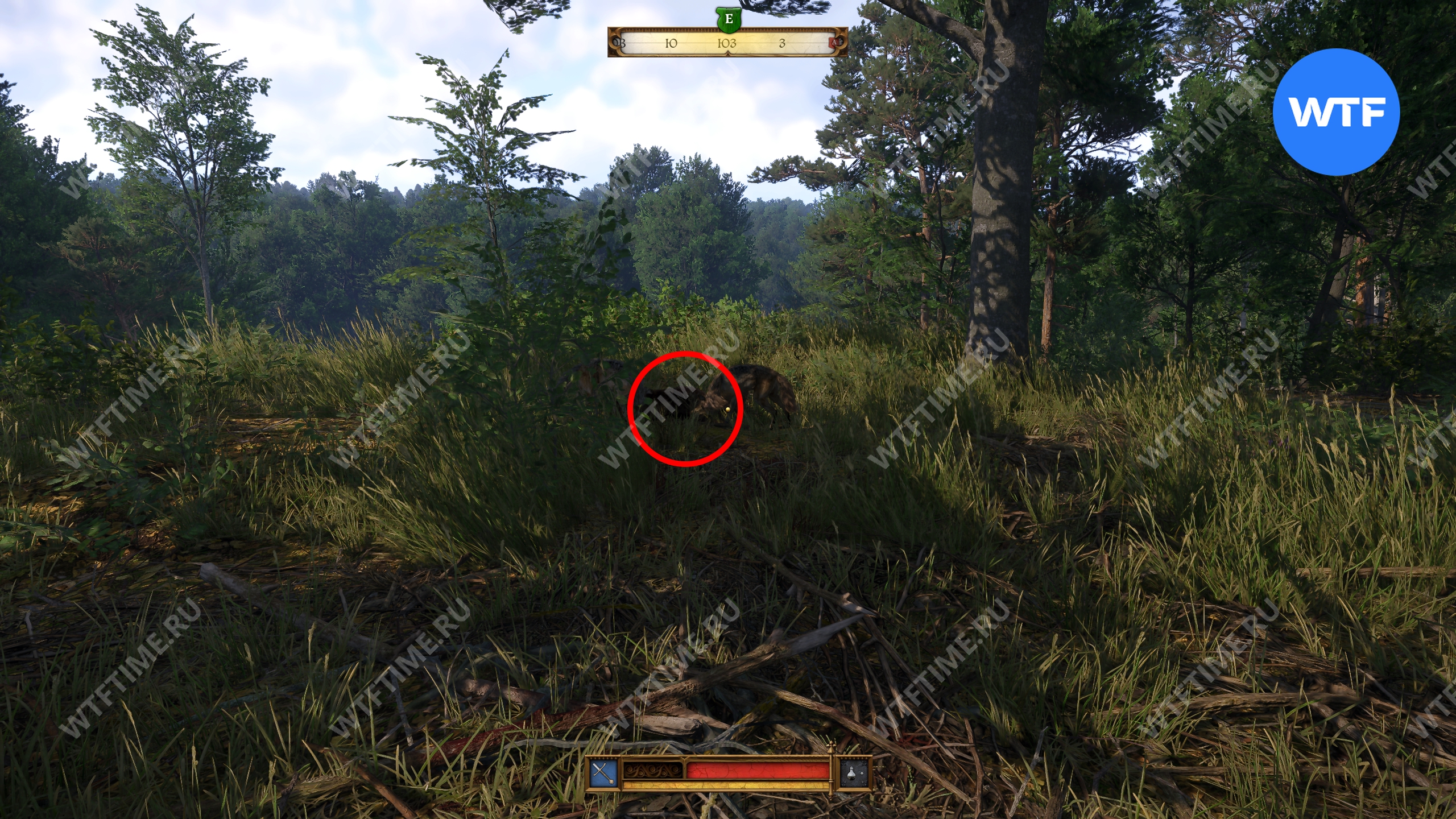 Идите по этим следам и очень скоро увидите вдалеке брошенную повозку. Осмотрите её со всех сторон, чтобы заметить следы крови вокруг. По этим следам вы должны немного углубиться в лес в юго-западном направлении, чтобы увидеть волков, раздирающих мертвое тело.
