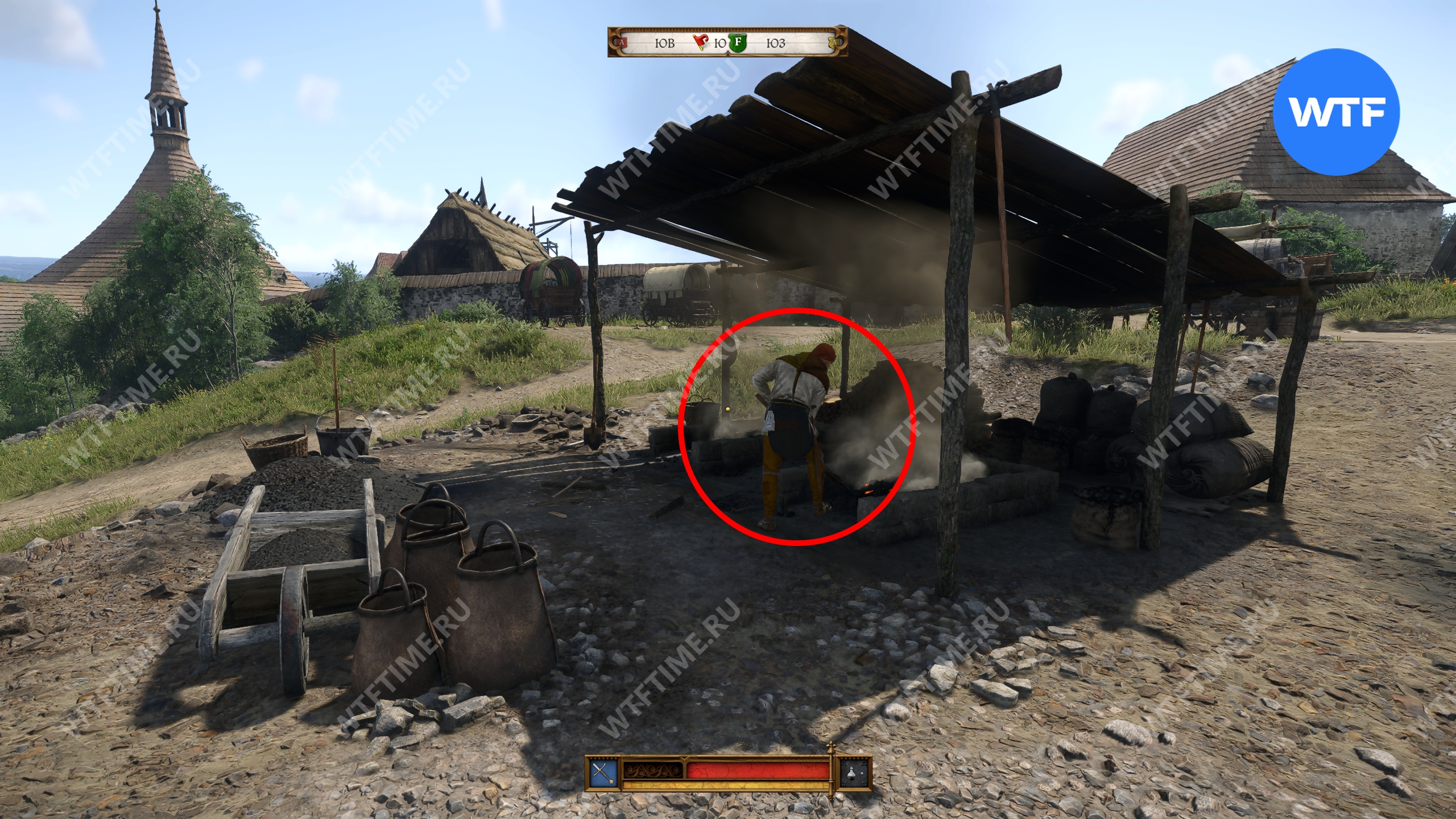 На мельнице вас будут ждать восемь разбойников, большая часть которых сидит у костра в центральной части. Еще парочка патрулируют территорию вокруг. Вояки из них так себе и на поздних этапах игры вы должны справиться с ними, даже не переходя в стелс.