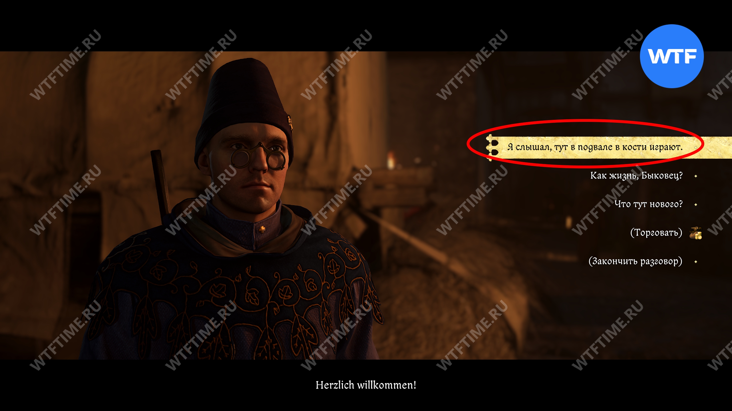 Первый, пожалуй, самый простой. Отправляйтесь в корчму и поговорите с корчмарем Быковцом. Скажите, что слышали о том, что в подвале играют в кости и будьте настойчивы в своем желании присоединиться.