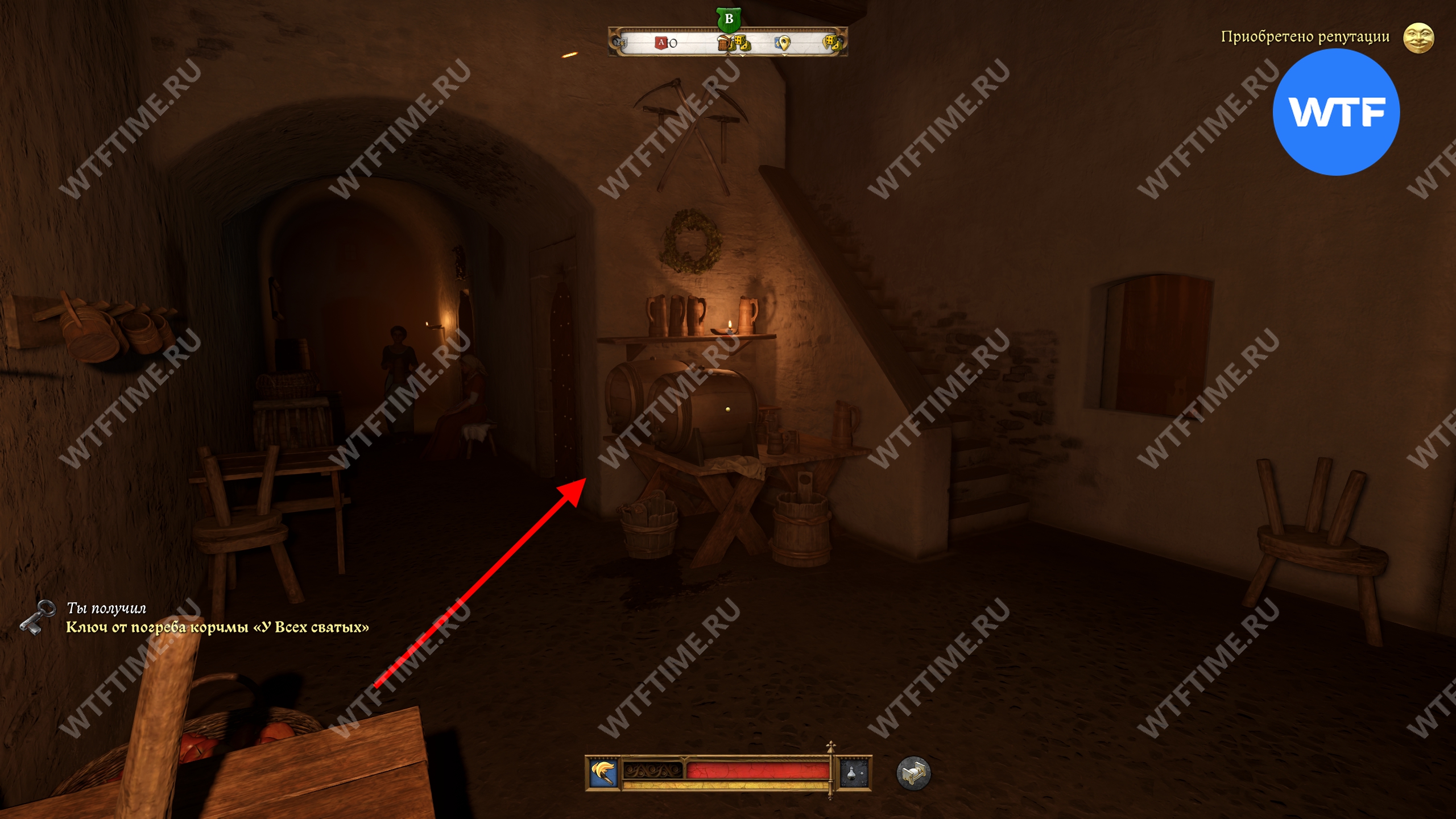Чтобы найти украденную хоругвь, нужно пробраться в тайник Святош, который находится в подвале корчмы «У Всех Святых». Есть два пути, которыми можно это сделать.