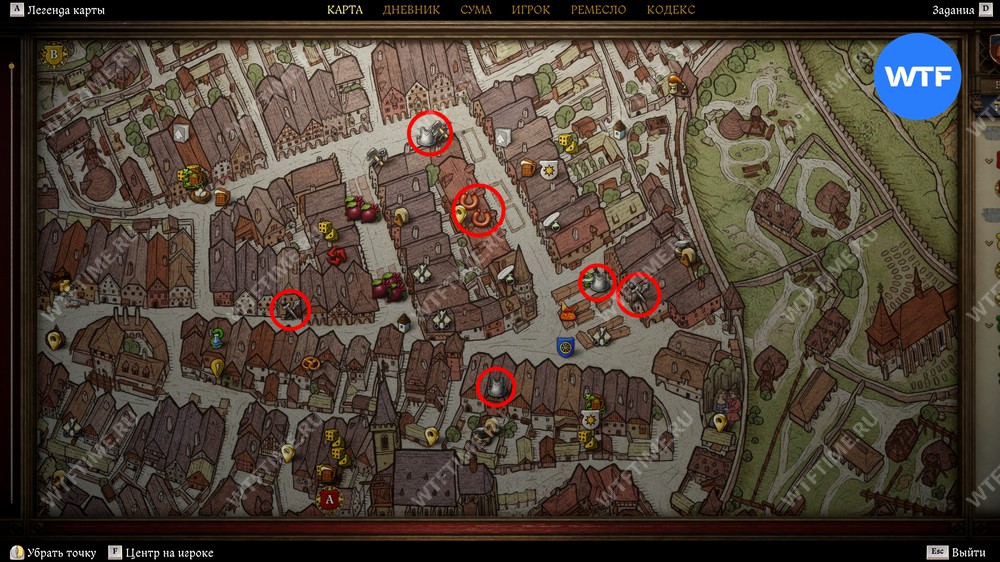 Проще всего воспользоваться точкой быстрого перемещения «Кутнагорская ратуша», так как рядом есть все необходимое. Кузнечные материалы можно прикупить у бронников и кузнецов, а коровья шкура также бывает у мясников.