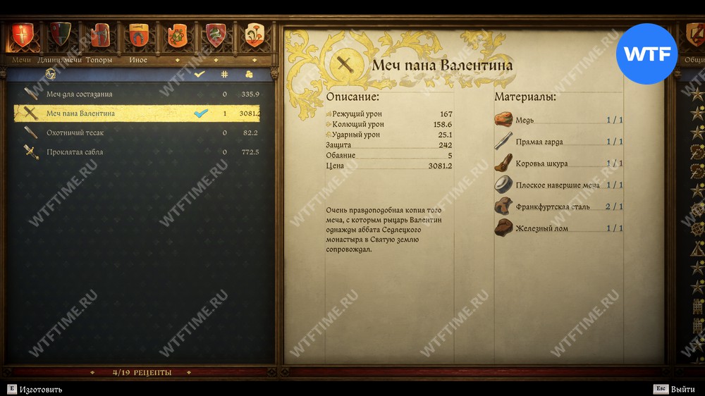 Закончив сбор необходимых ингредиентов, отправляйтесь в любую кузницу и выкуйте поддельный меч пана Валентина. Для целей квеста не важно, какого он будет качества. Но лучше как следует постараться, так как в итоге вы сможете оставить его себе.