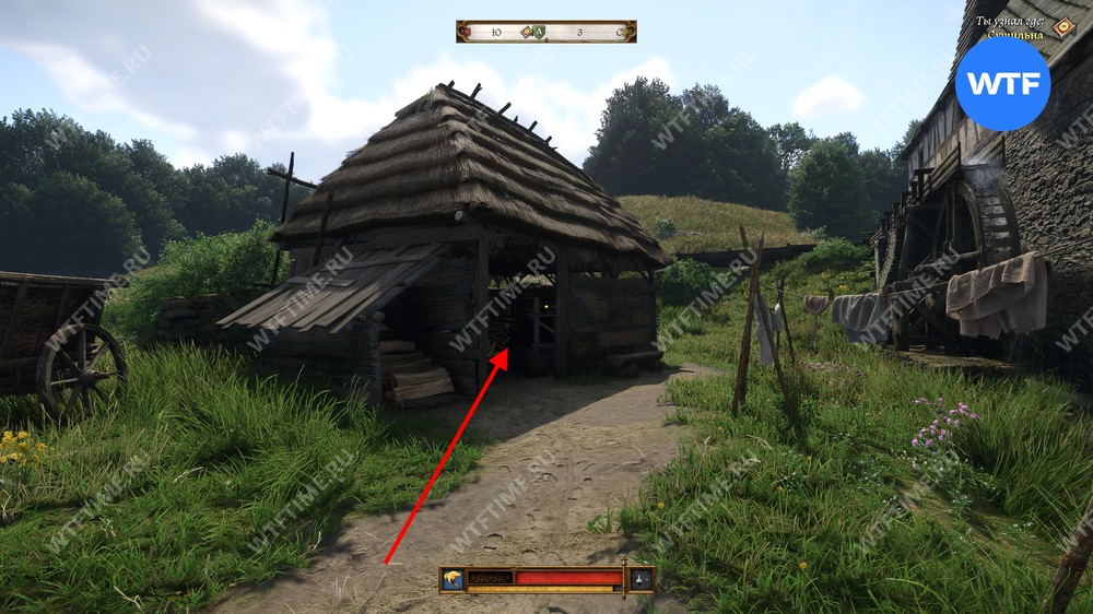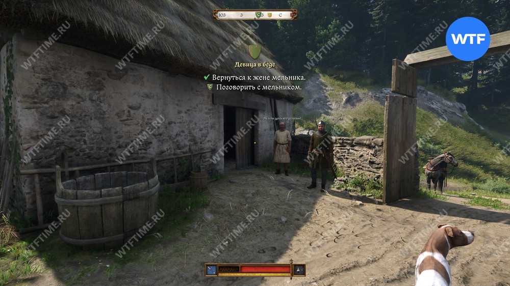 Поговорив с пекарем, отправляйтесь на мельницу, где появится отметка доступного задания. Прибыв на место, подойдите к сараю, из которого будут доноситься женские крики.