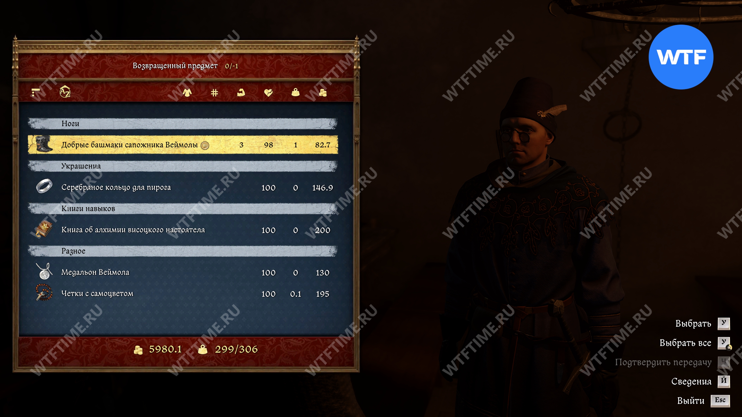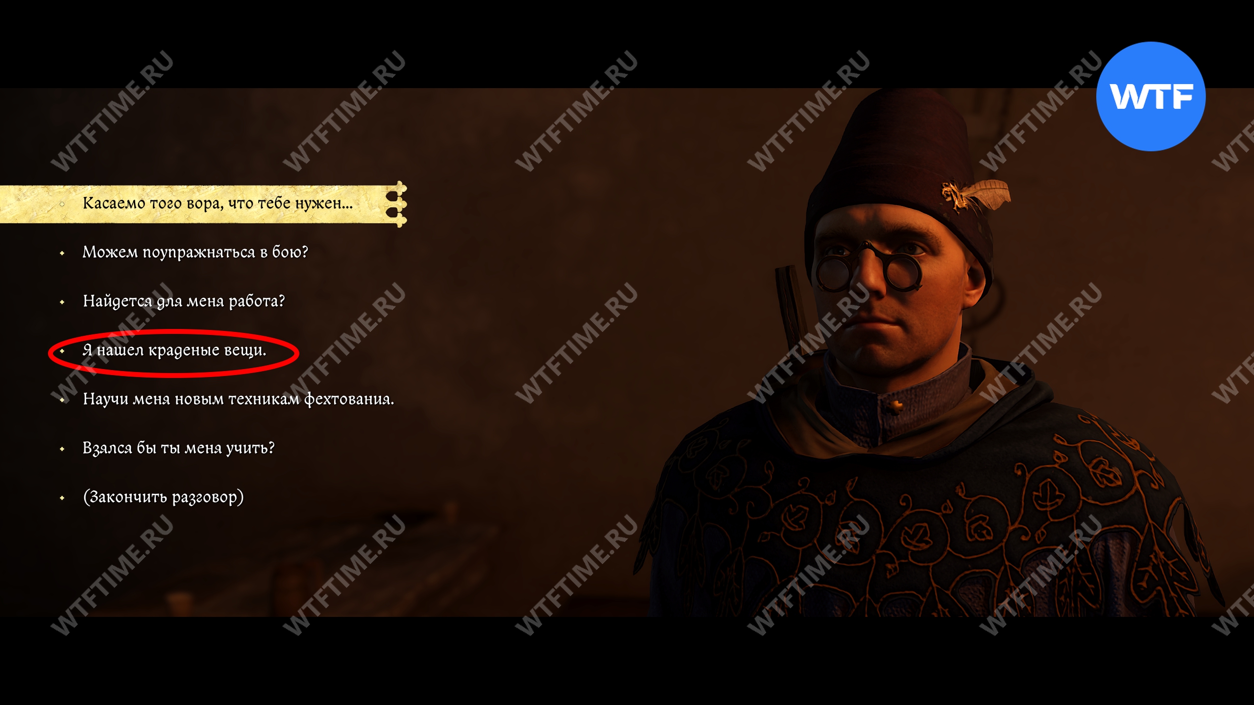 Обратите внимание. Вы также можете выкупить у него три украденные в Високе вещи: серебряное кольцо для пирога, медальон Веймола и четки с самоцветом.