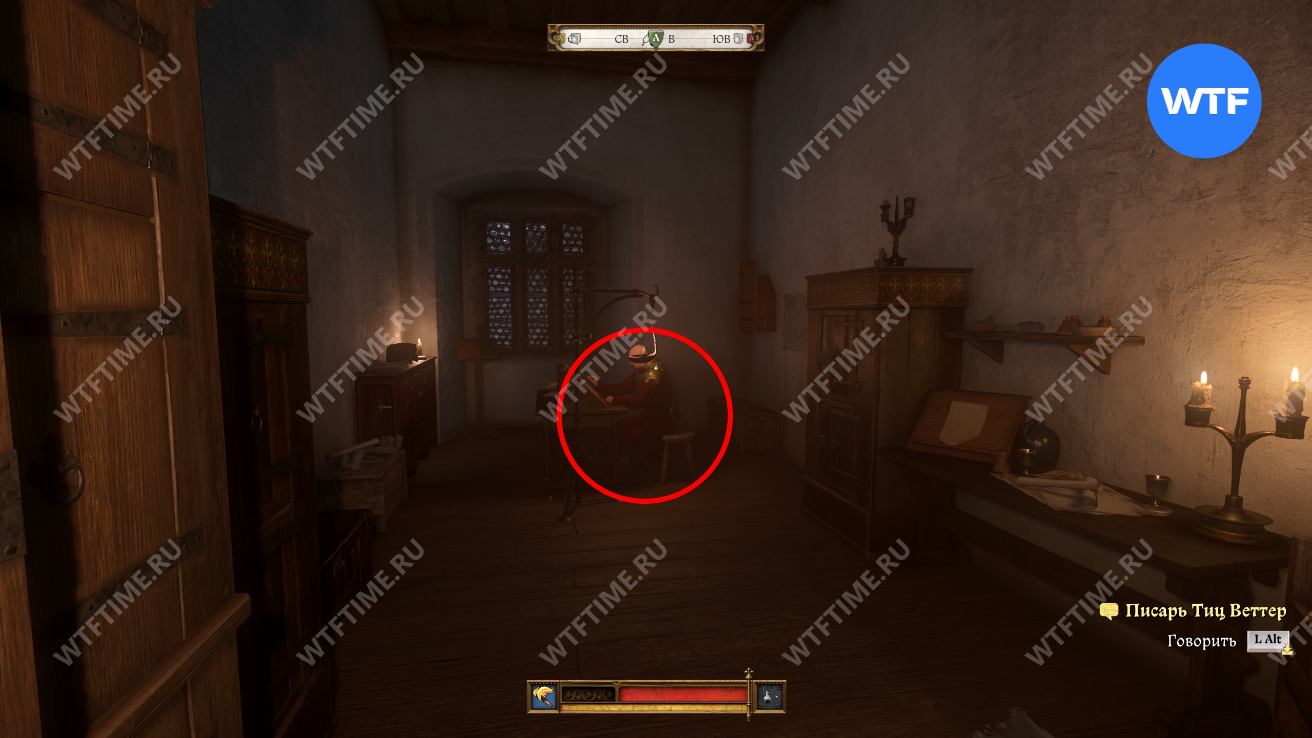 Затем отправляйтесь в кутногорскую ратушу и поговорите с писарем Тицем Веттером. Чтобы найти его кабинет, пройдите через здание ратуши на задний двор и поднимитесь по лестнице на второй этаж.