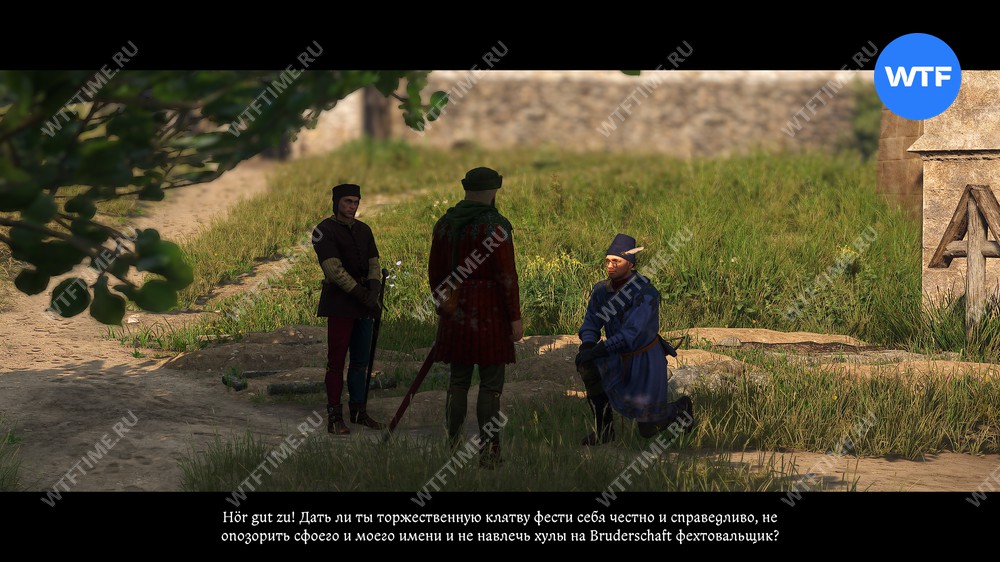 От ратуши вы вместе с немцами снова вернетесь в корчму, где должны будете вступить в фехтовальное братство. Если при первой встрече вы победили Менхарда, этого будет достаточно, чтобы подтвердить ваш уровень.