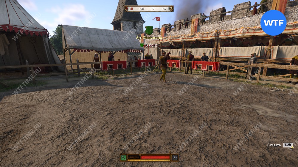 Чтобы начать прохождение квеста «Ars Dimicatoria» в Кингдом Кам 2, отправляйтесь в северную часть Кутна-Горы и поговорите с мужчиной, который предлагает всем желающим сразиться с ним в поединке на мечах.